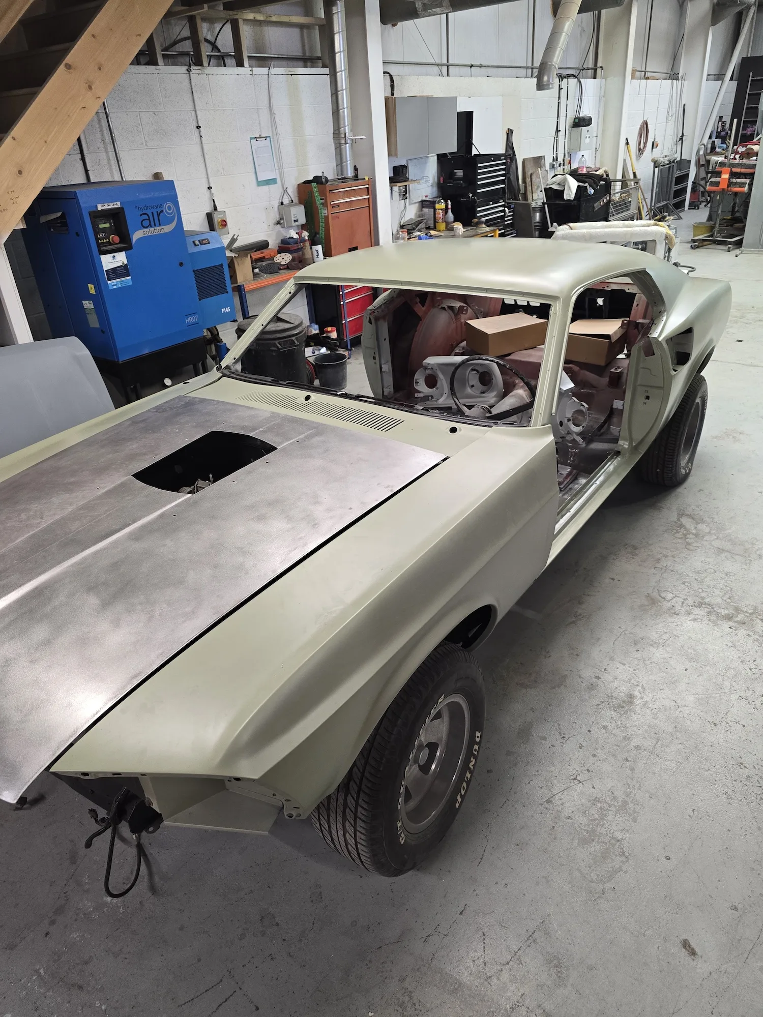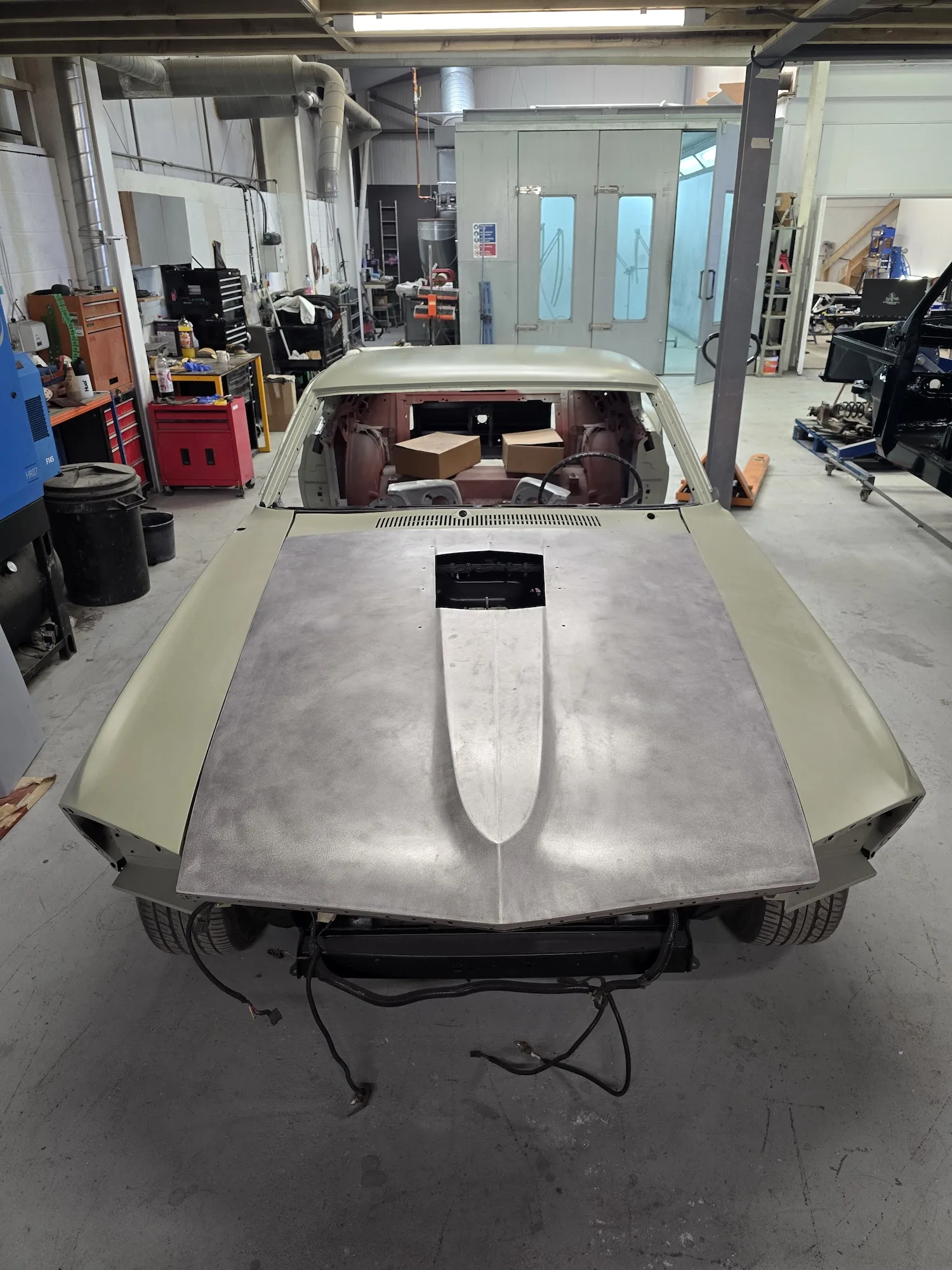 18th June 2025: Wings scrubbed with Jenolite rust remover sanded and epoxy primed and in underside of wings coated in Novol Polycoat. Bonnet cut to make scoop functional.