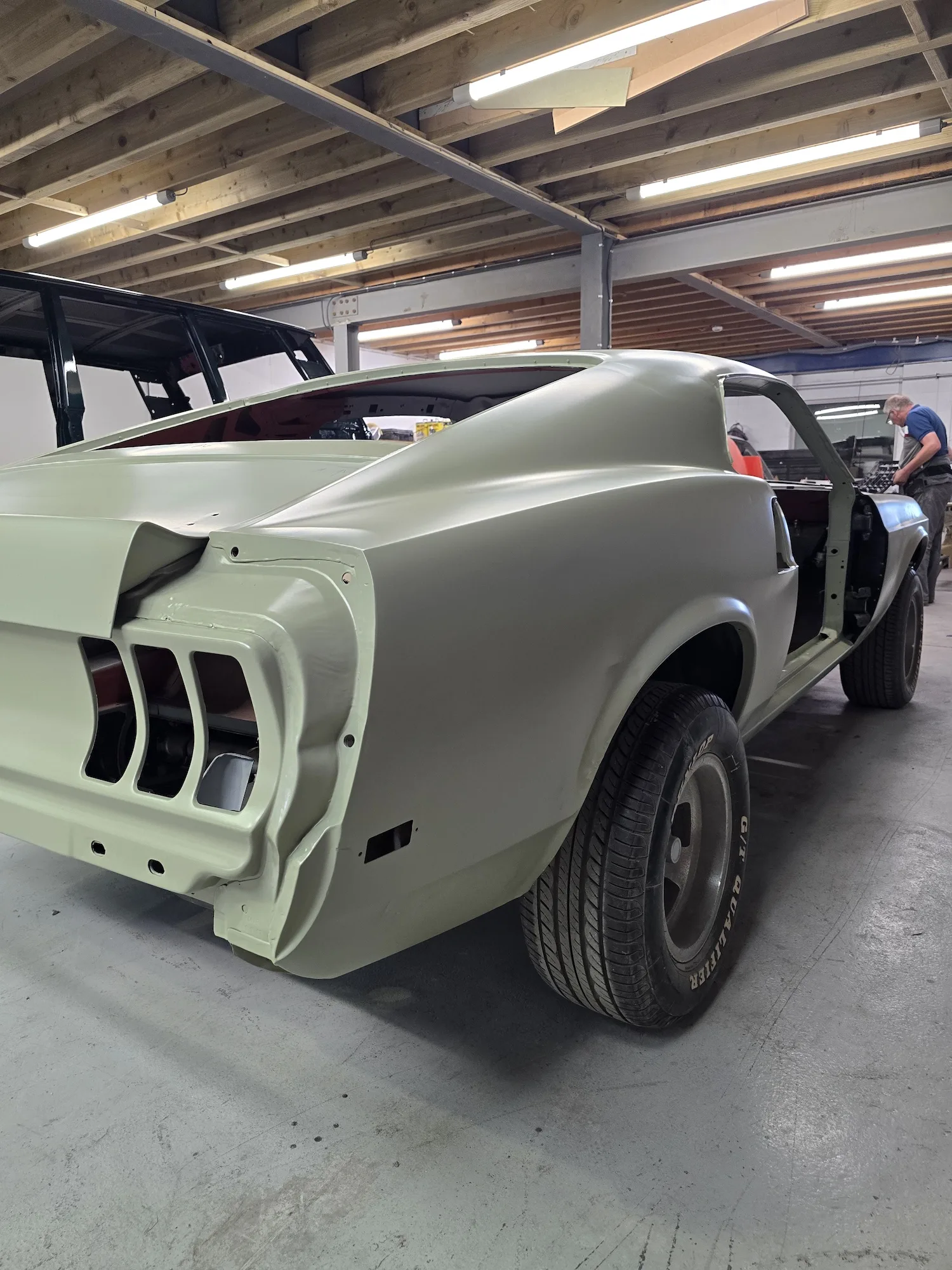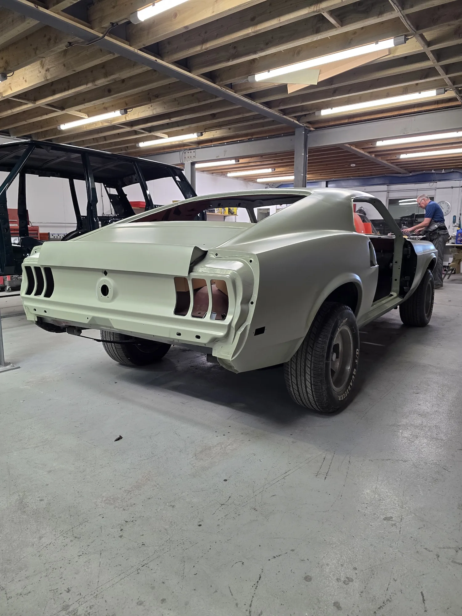 6th June 2025: Work continues with taking the body shell and panels back to bare metal. The lead loading has been finished and sanded to blend in.