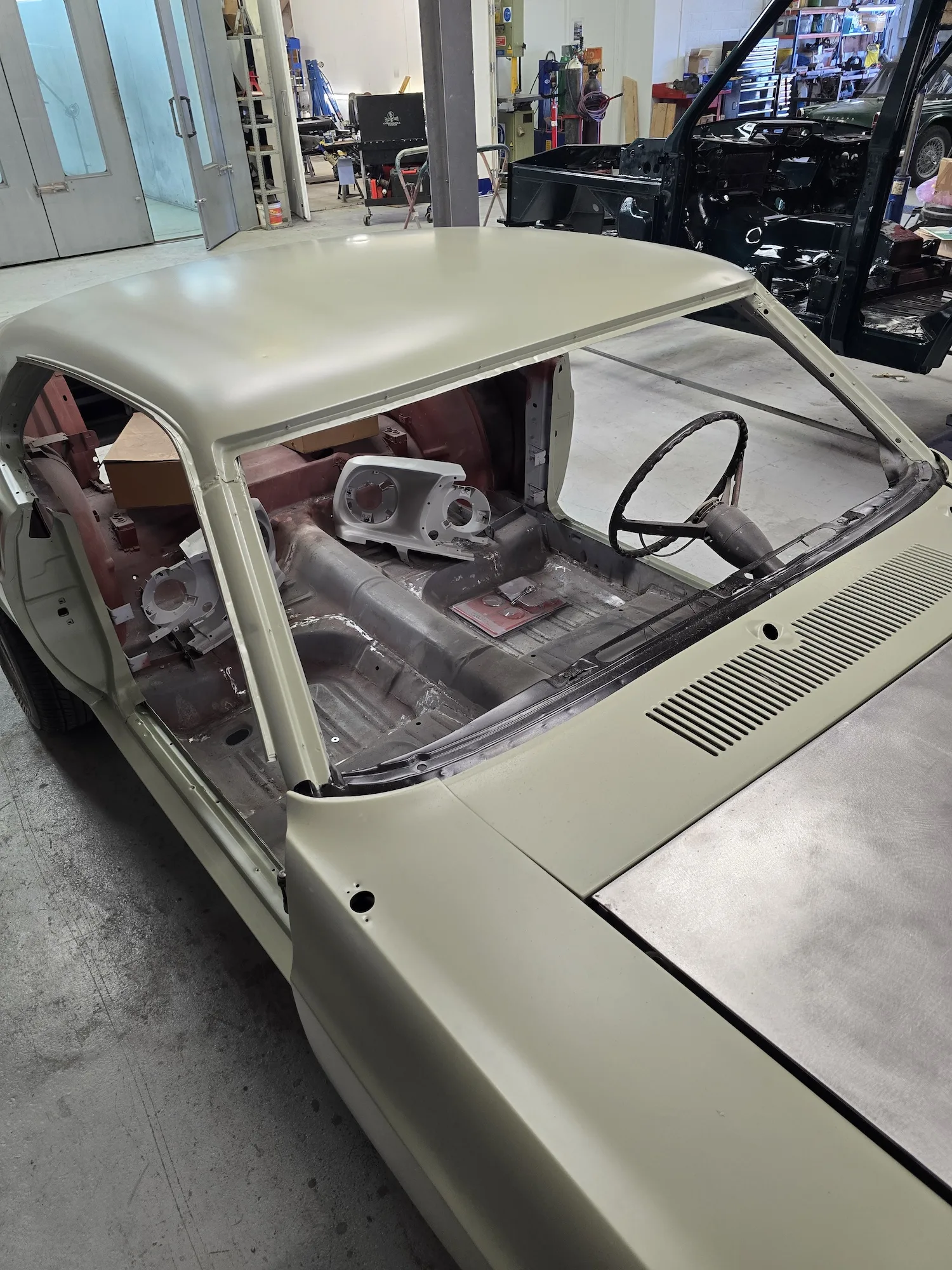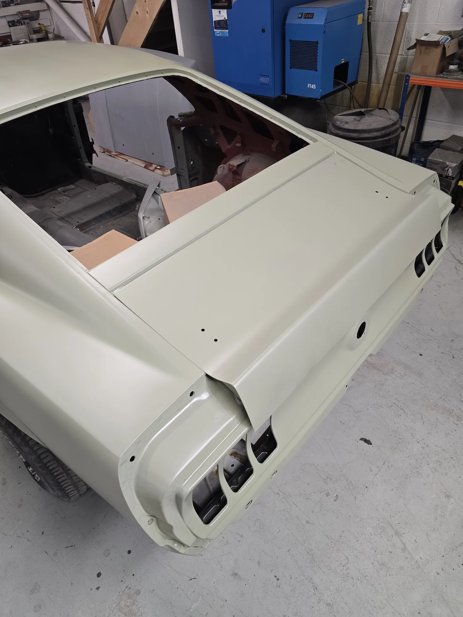 15th August 2025: Epoxy primer has been applied to the last parts of the bodywork and doors. Boot lid hinges have been painted. The doors will be test fitted and then further prep/filler work will be carried out before final paintwork can commence.