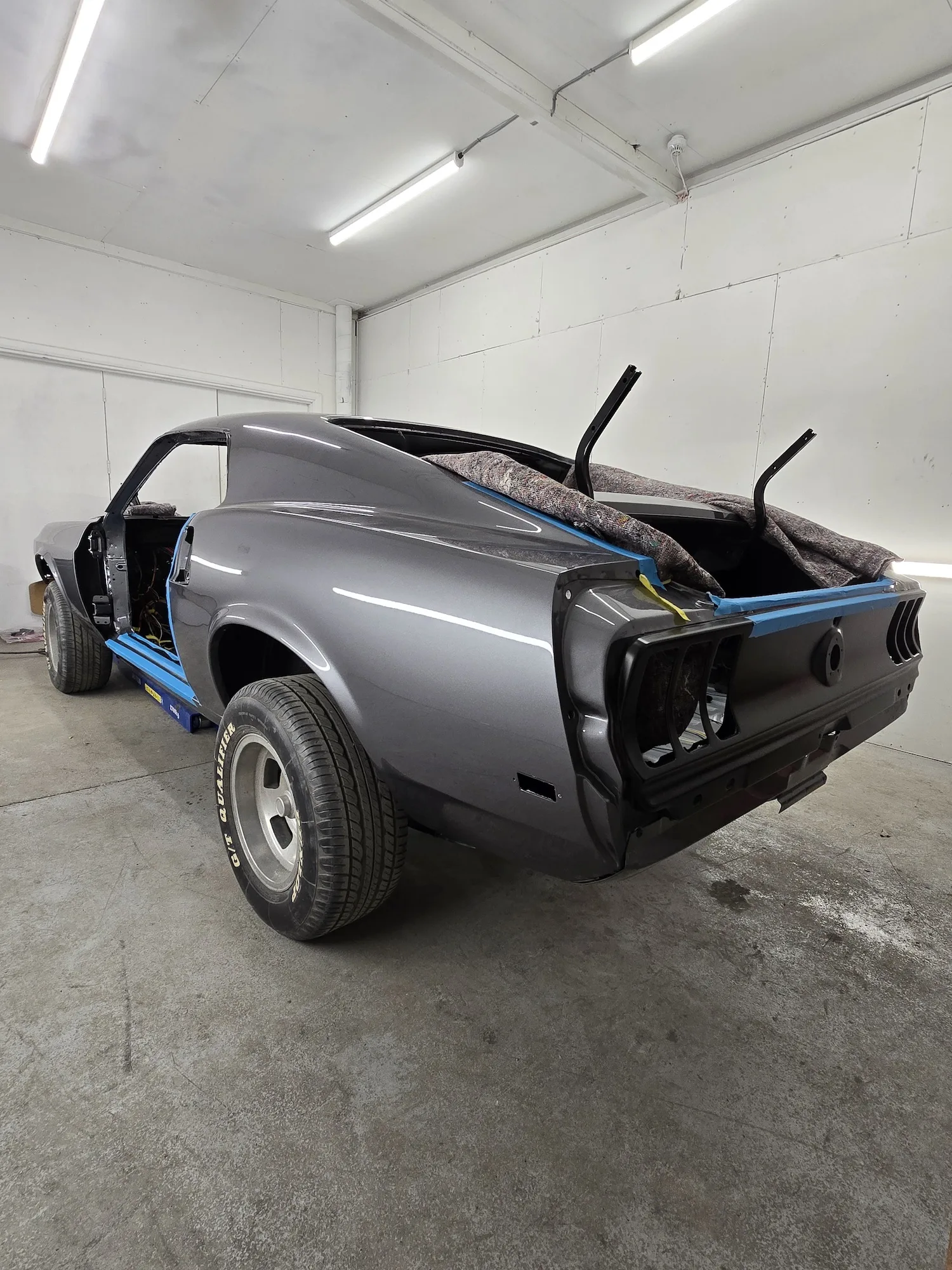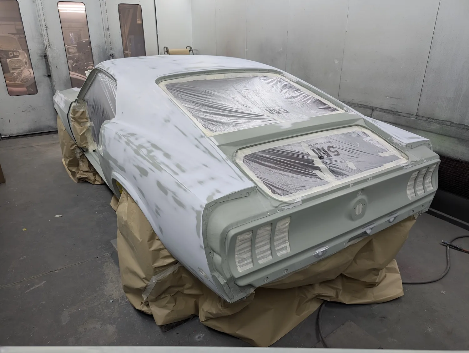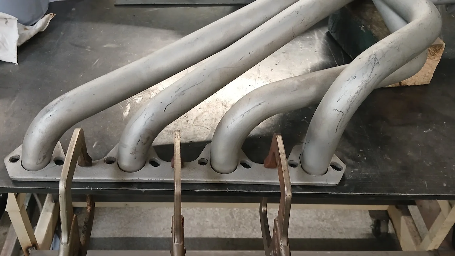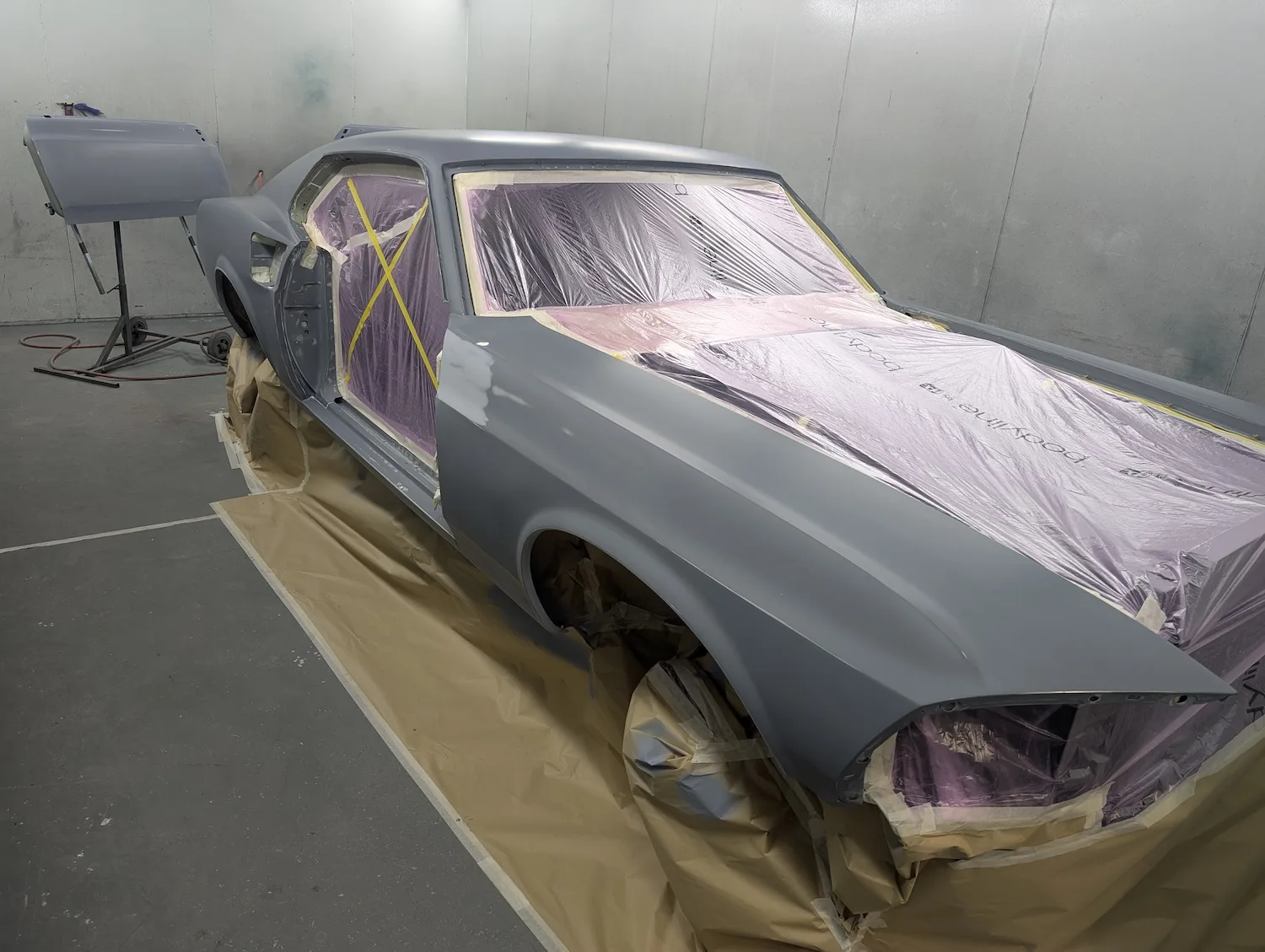 20th December 2025: All prep and prime stages have been completed and now the body is going into paint. These pictures show the paint fresh of the gun. Engine has been removed for setup and a test run. Headers needed quite a lot of tweaking and welding to make them fit and seal correctly to the block.