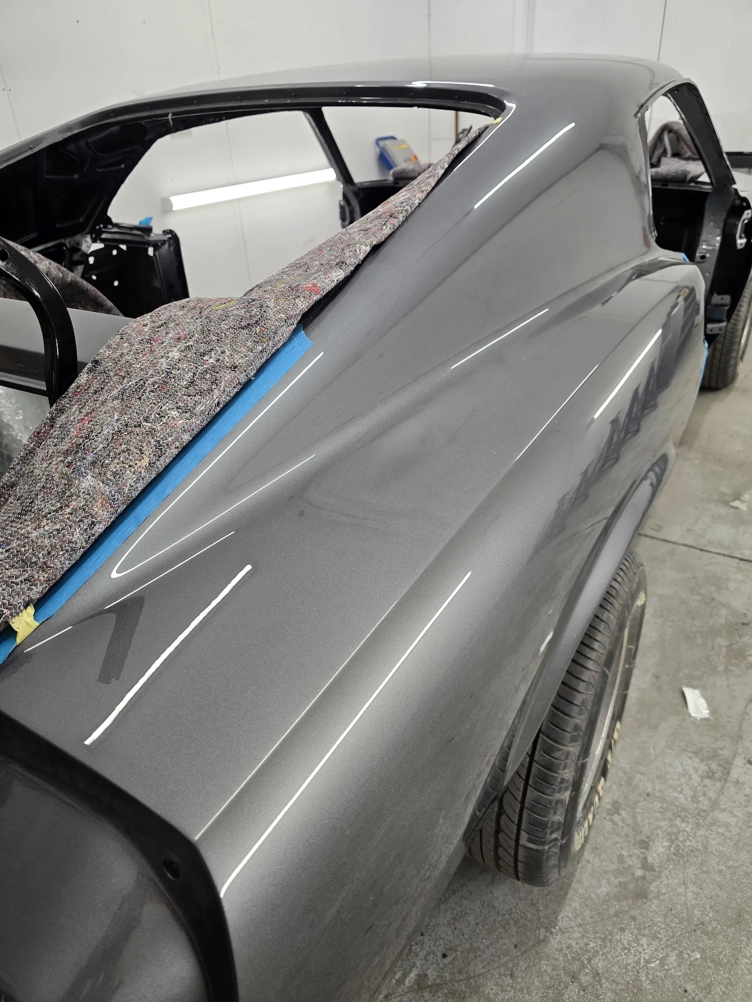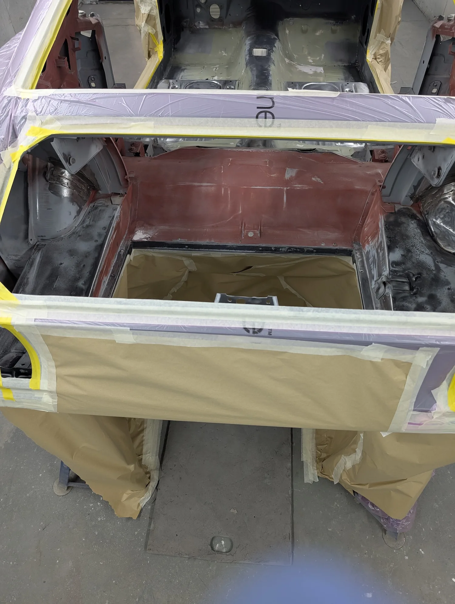6th June 2025: Work continues with taking the body shell and panels back to bare metal. The lead loading has been finished and sanded to blend in.