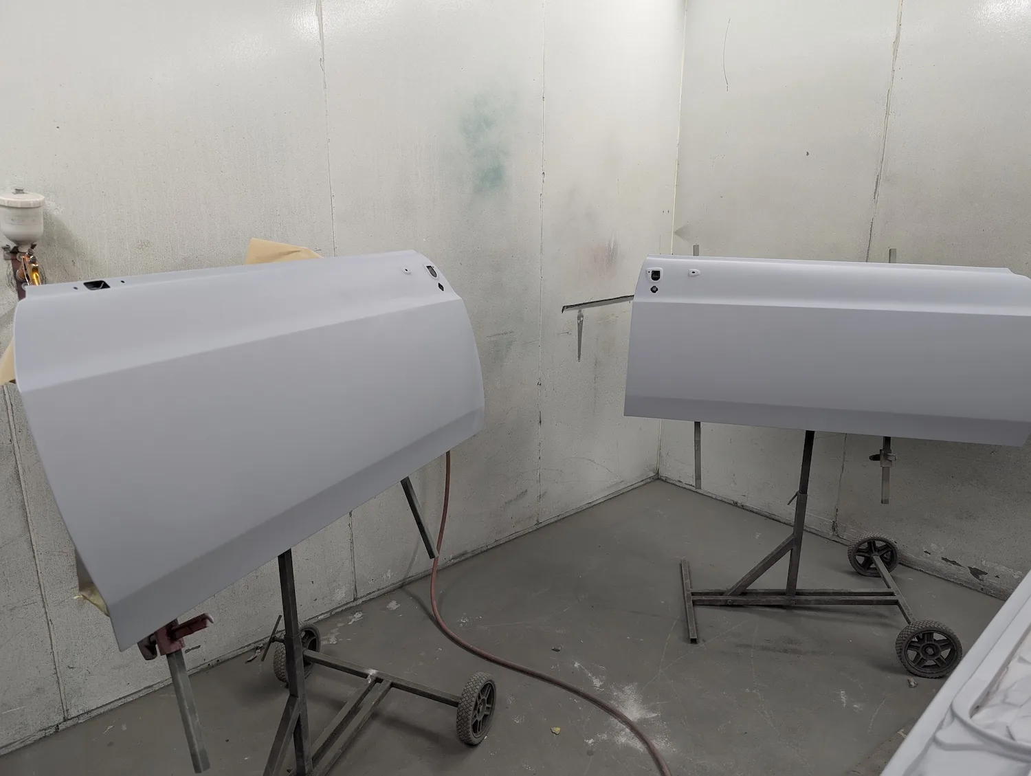 15th August 2025: Epoxy primer has been applied to the last parts of the bodywork and doors. Boot lid hinges have been painted. The doors will be test fitted and then further prep/filler work will be carried out before final paintwork can commence.
