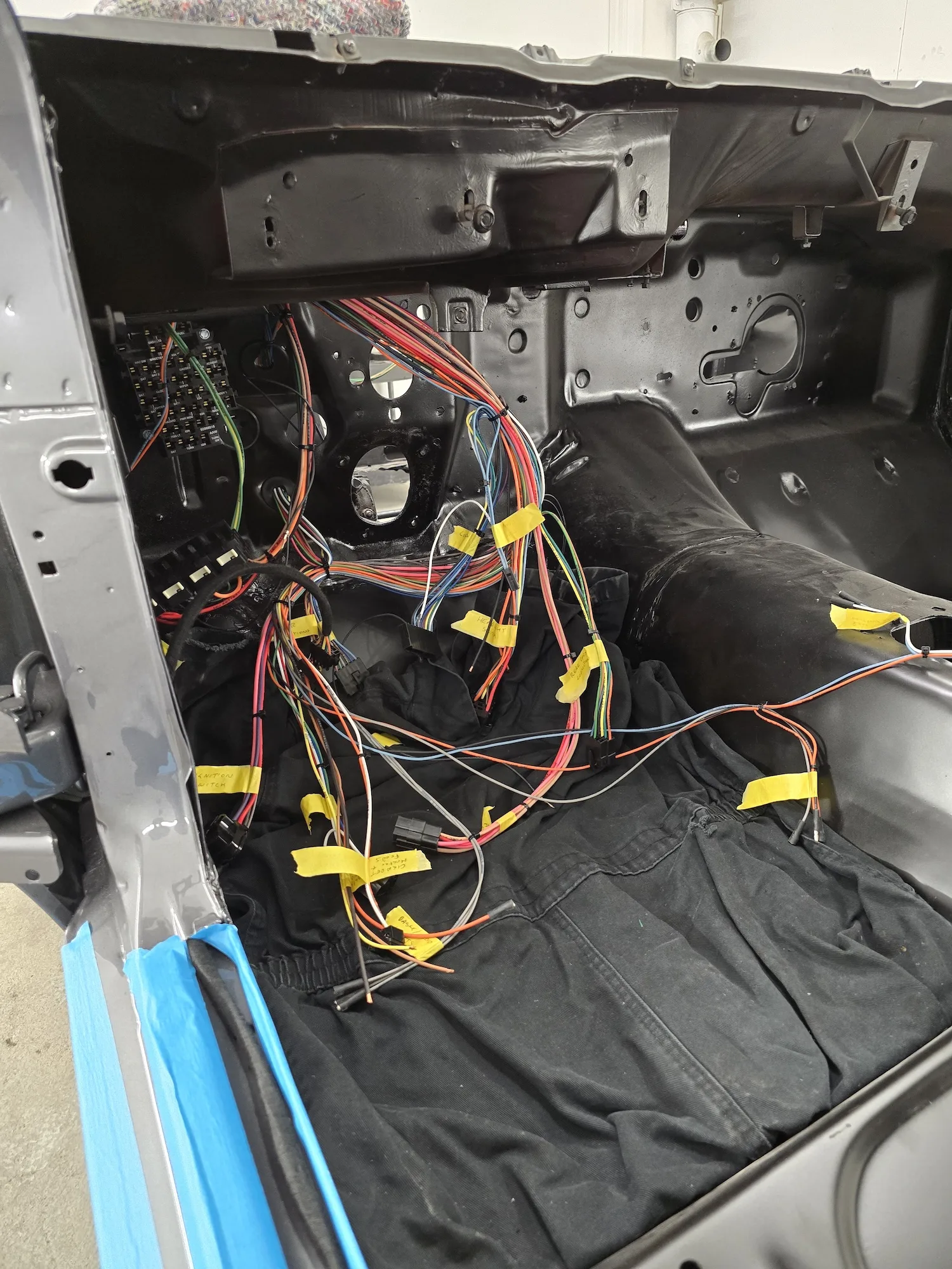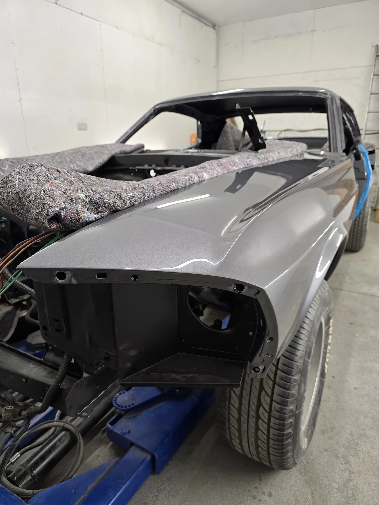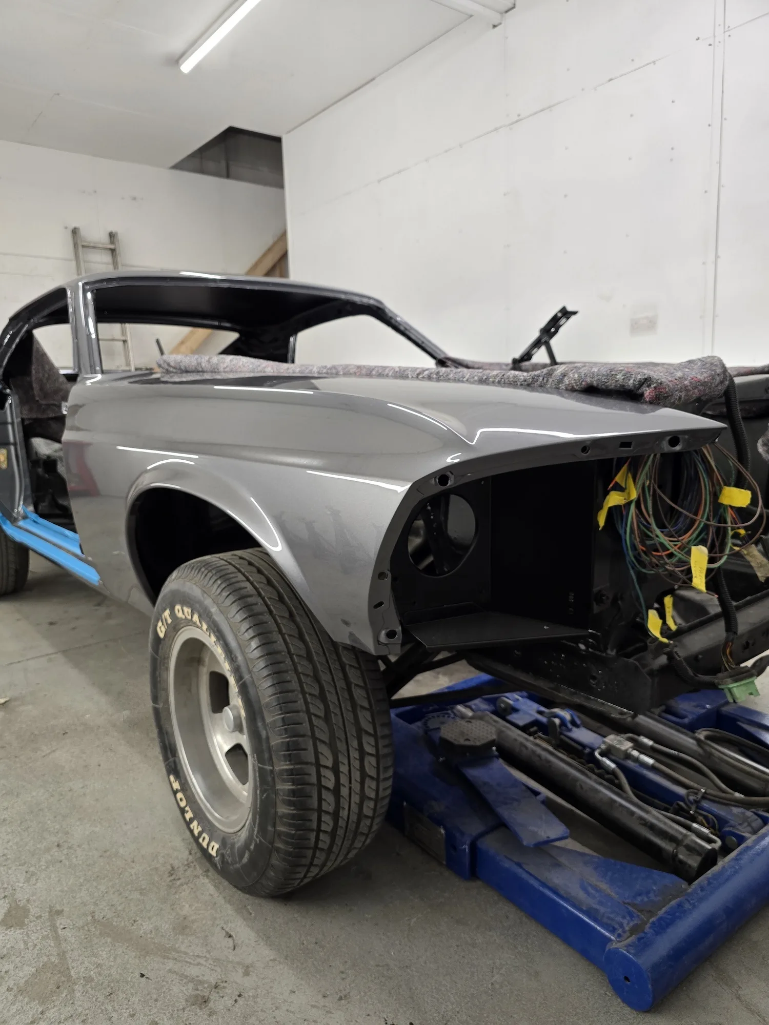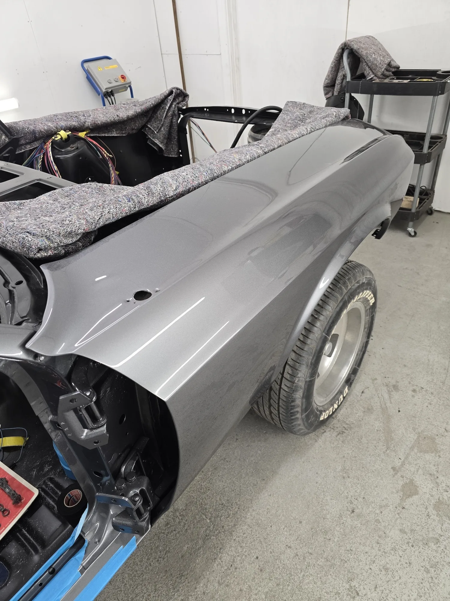 21st January 2026: The interior has been sprayed black, and the outer bodywork has been sprayed in gun metal silver. The doors and hood will be painted next. The wiring kit has started to be installed, and a new engine will be fitted soon.
