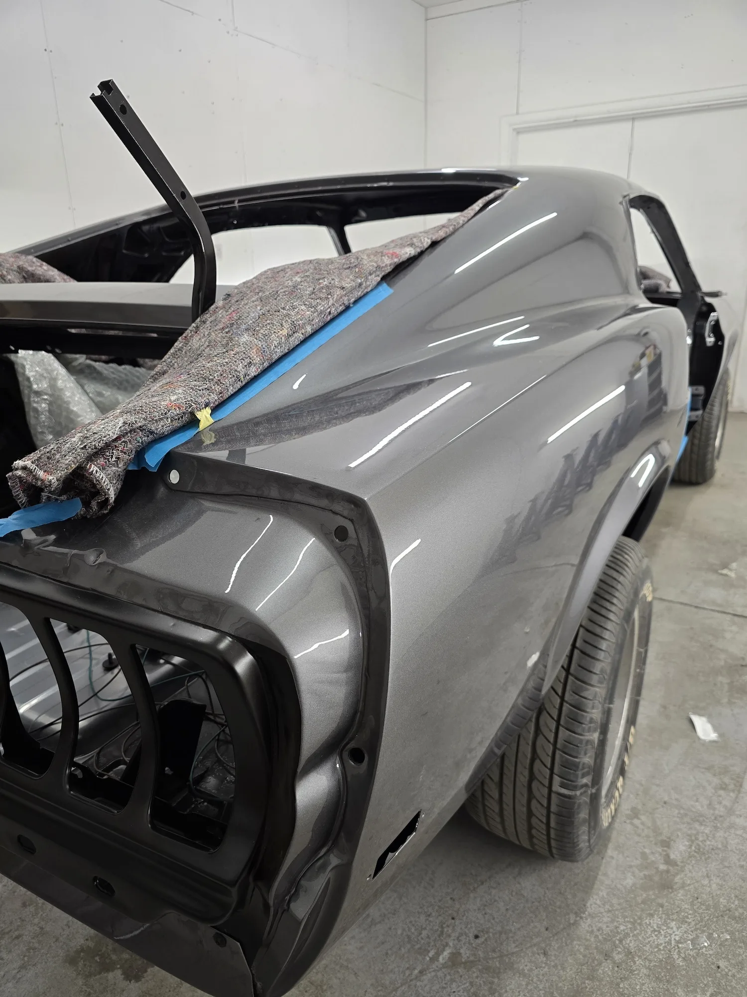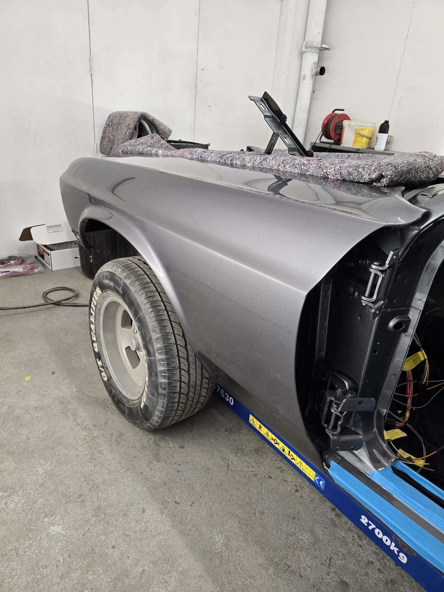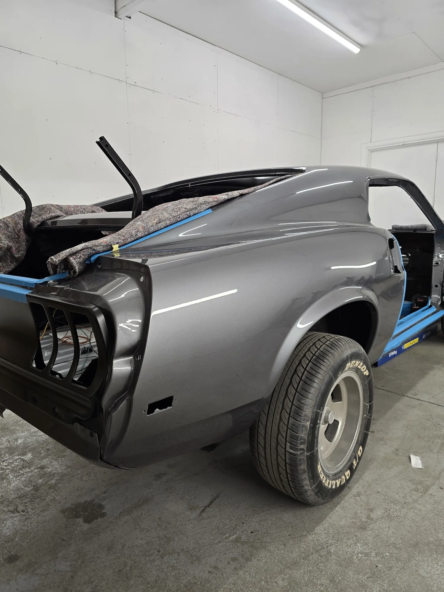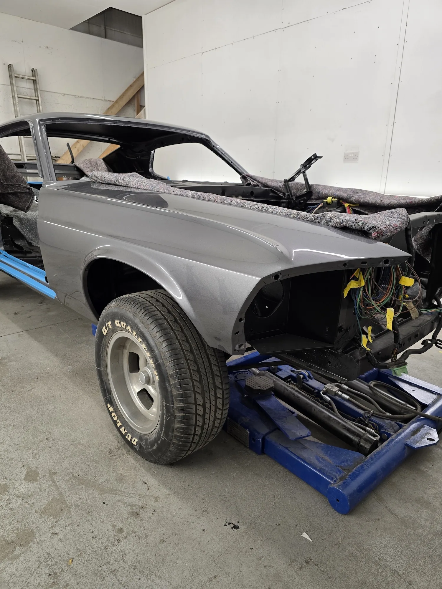 21st January 2026: The interior has been sprayed black, and the outer bodywork has been sprayed in gun metal silver. The doors and hood will be painted next. The wiring kit has started to be installed, and a new engine will be fitted soon.