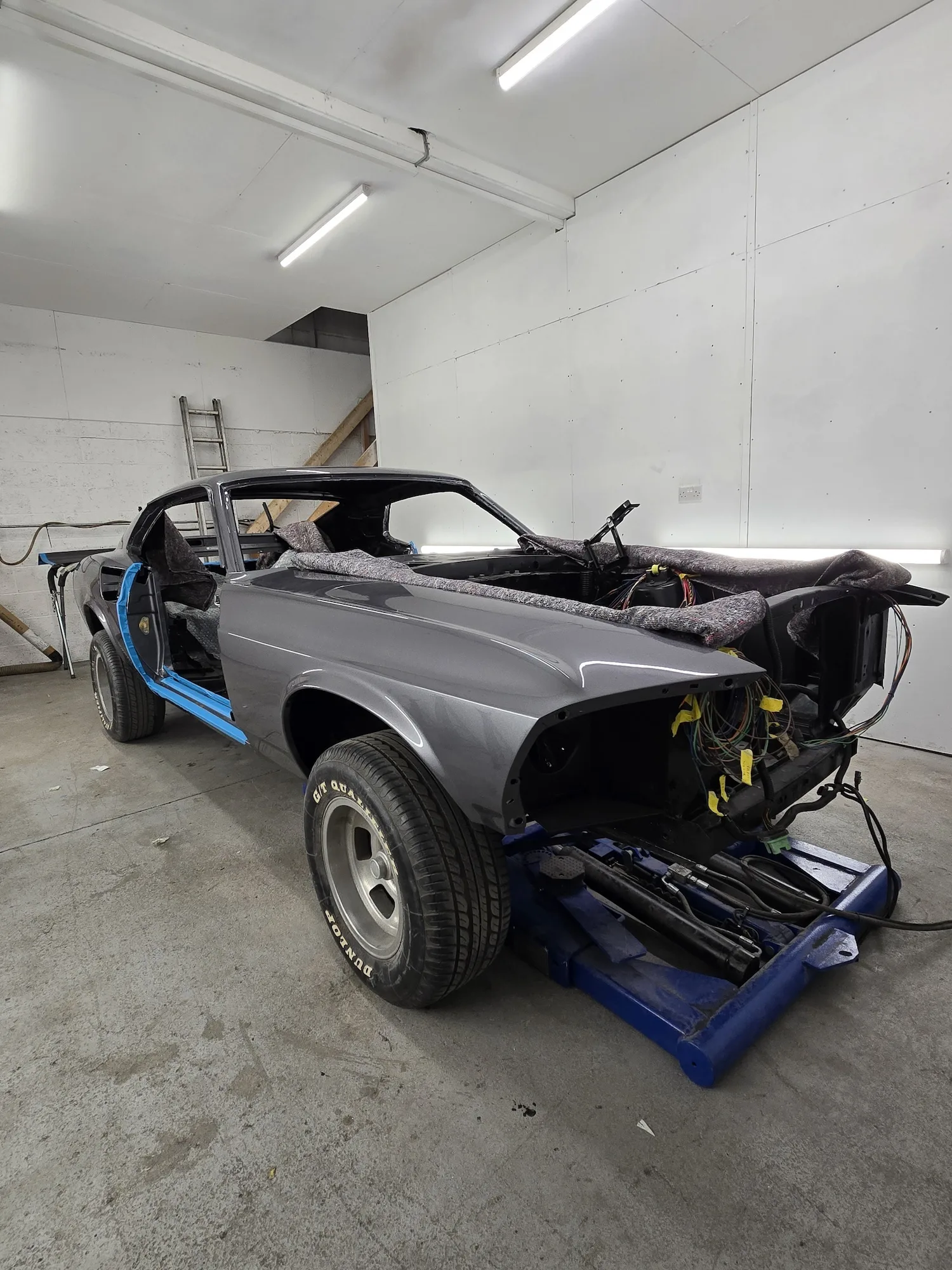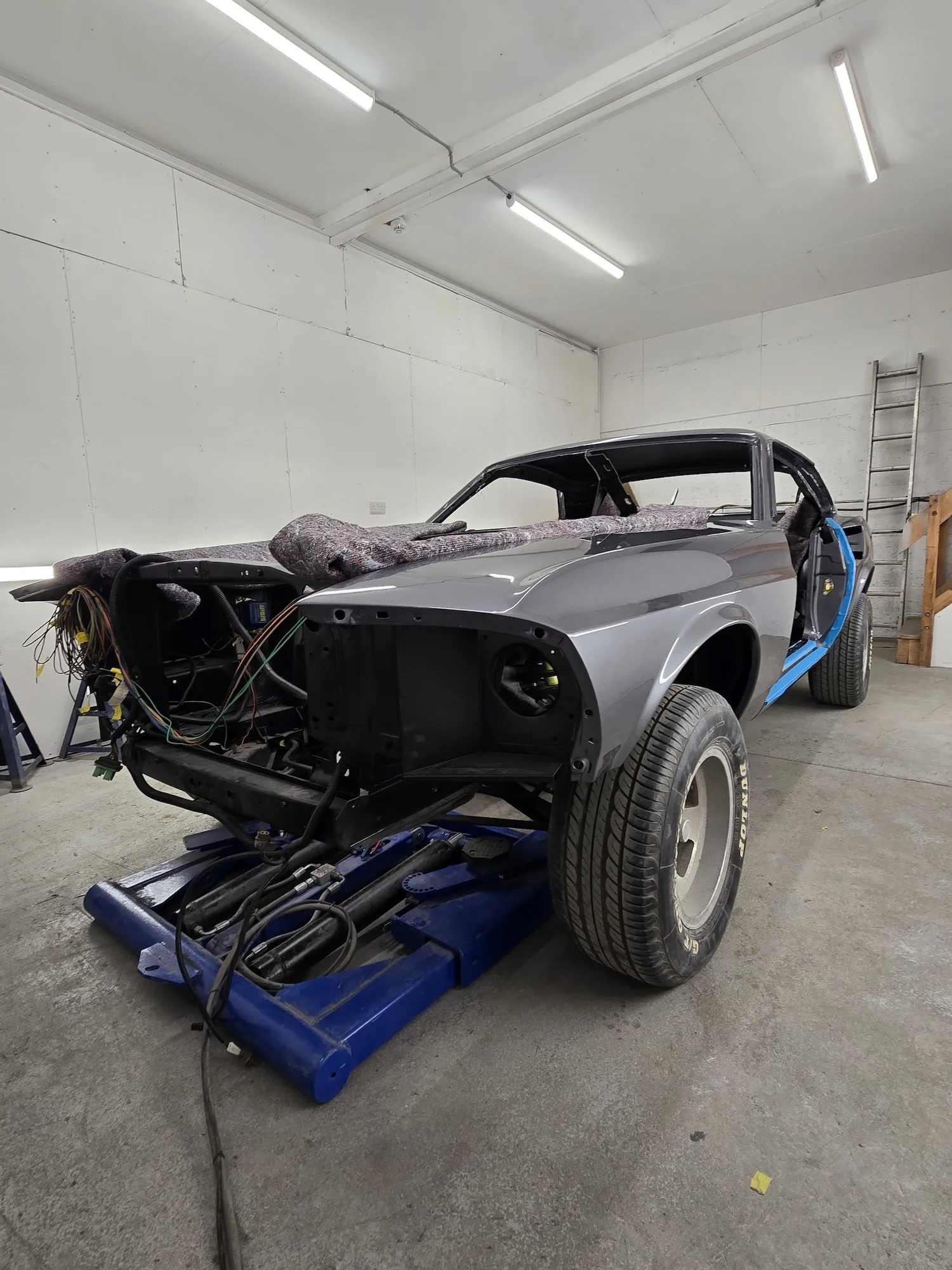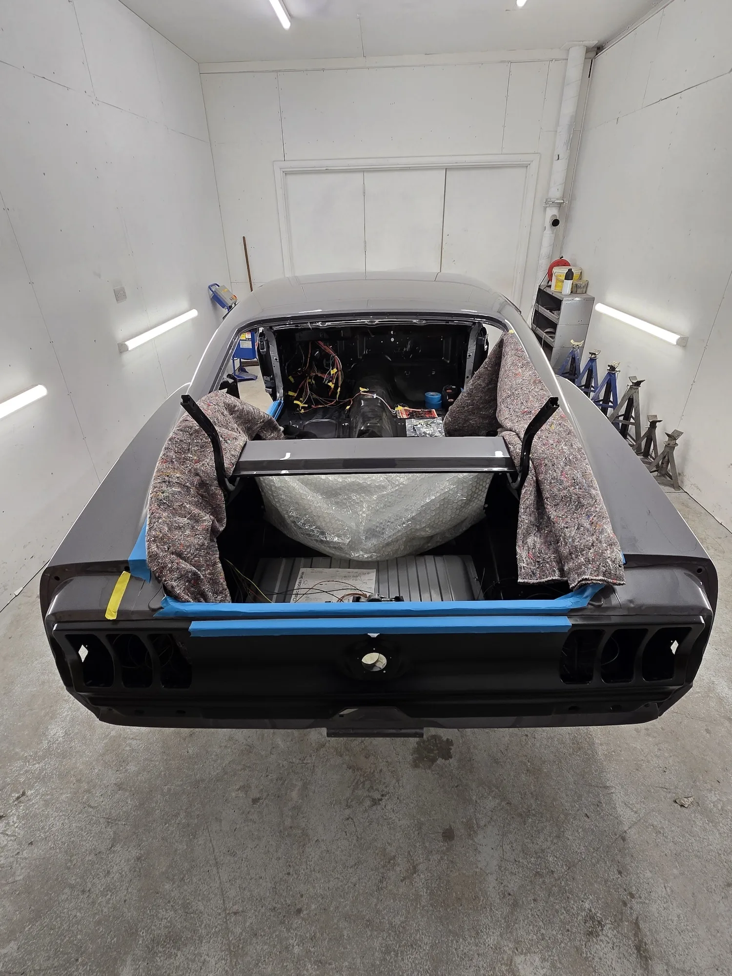 20th February 2026: The engine that the customer sourced is now in the car and in the process of being linked up. Wiring of the car continues, so the rear lights have been fitted, and front lights will be soon. Headliner kit is being assembled and will shortly be installed.