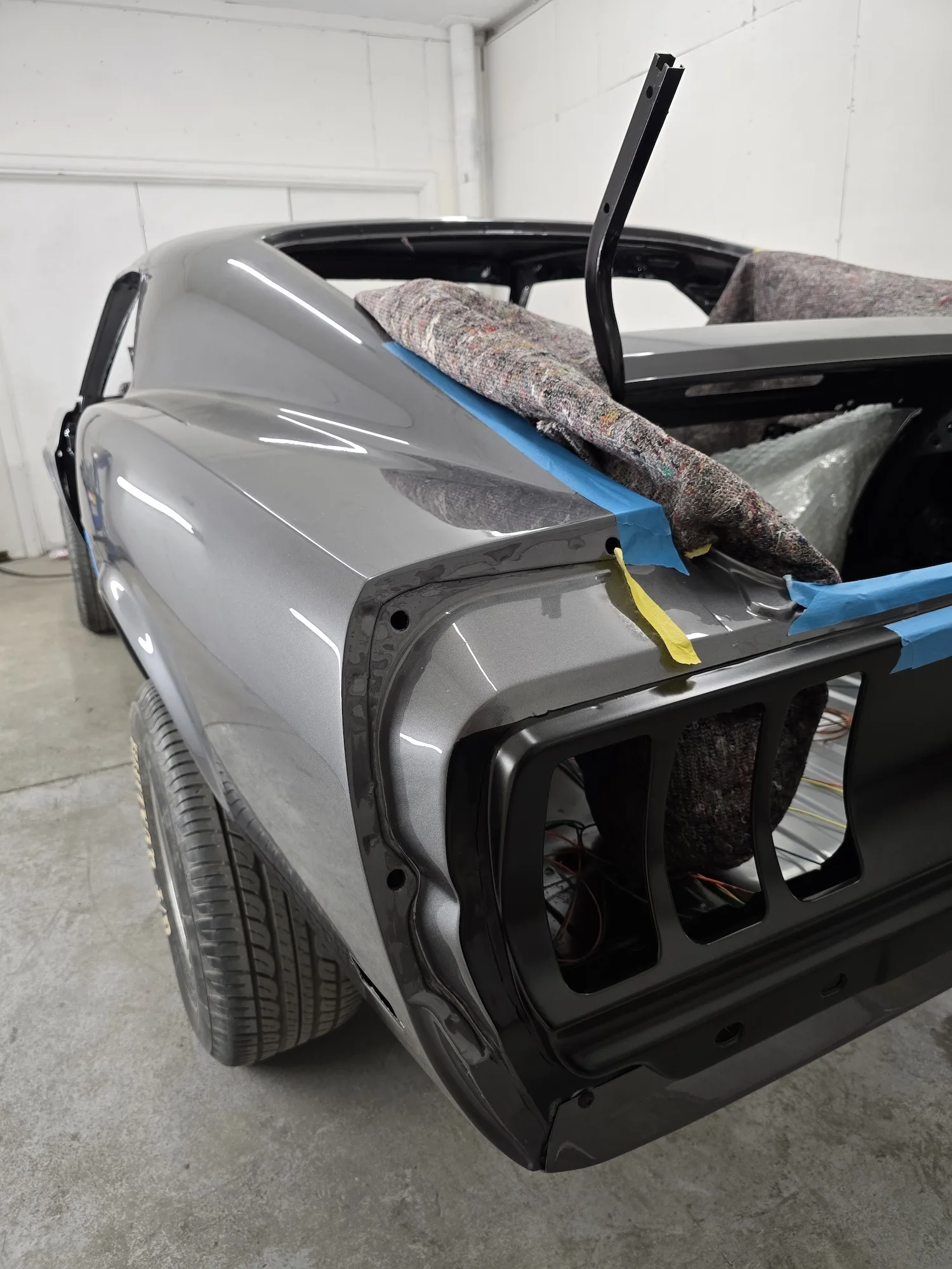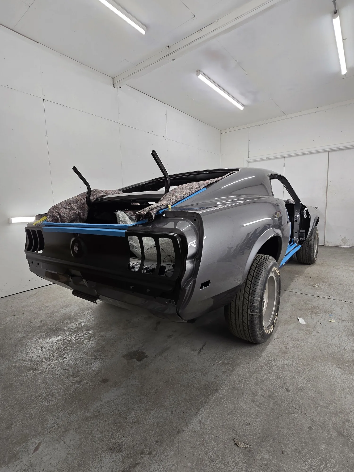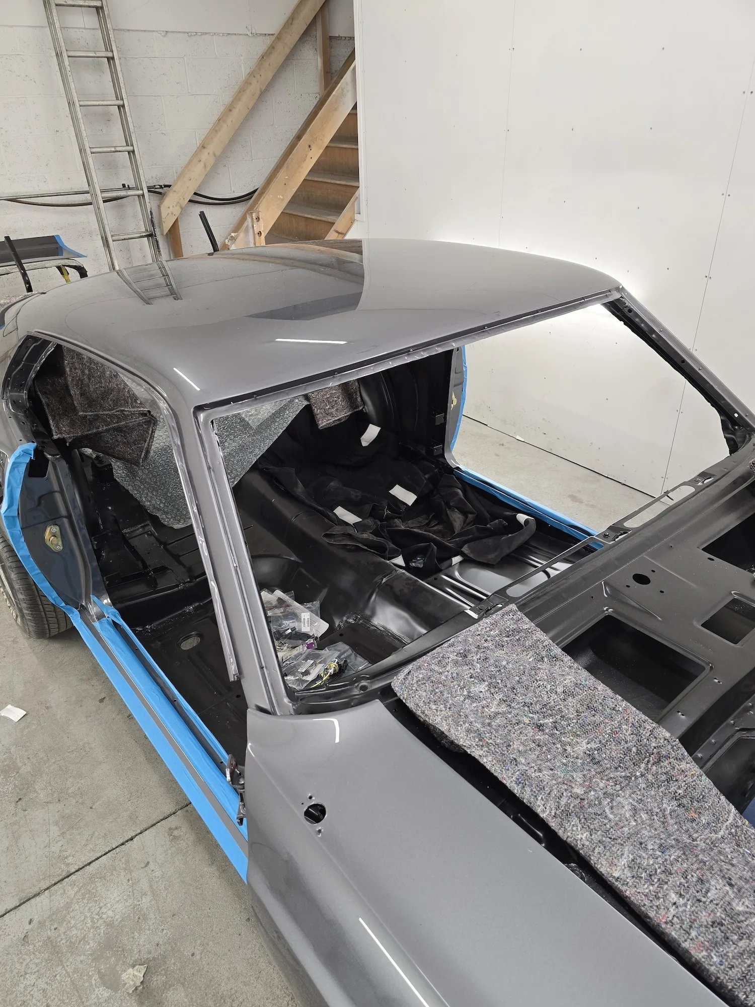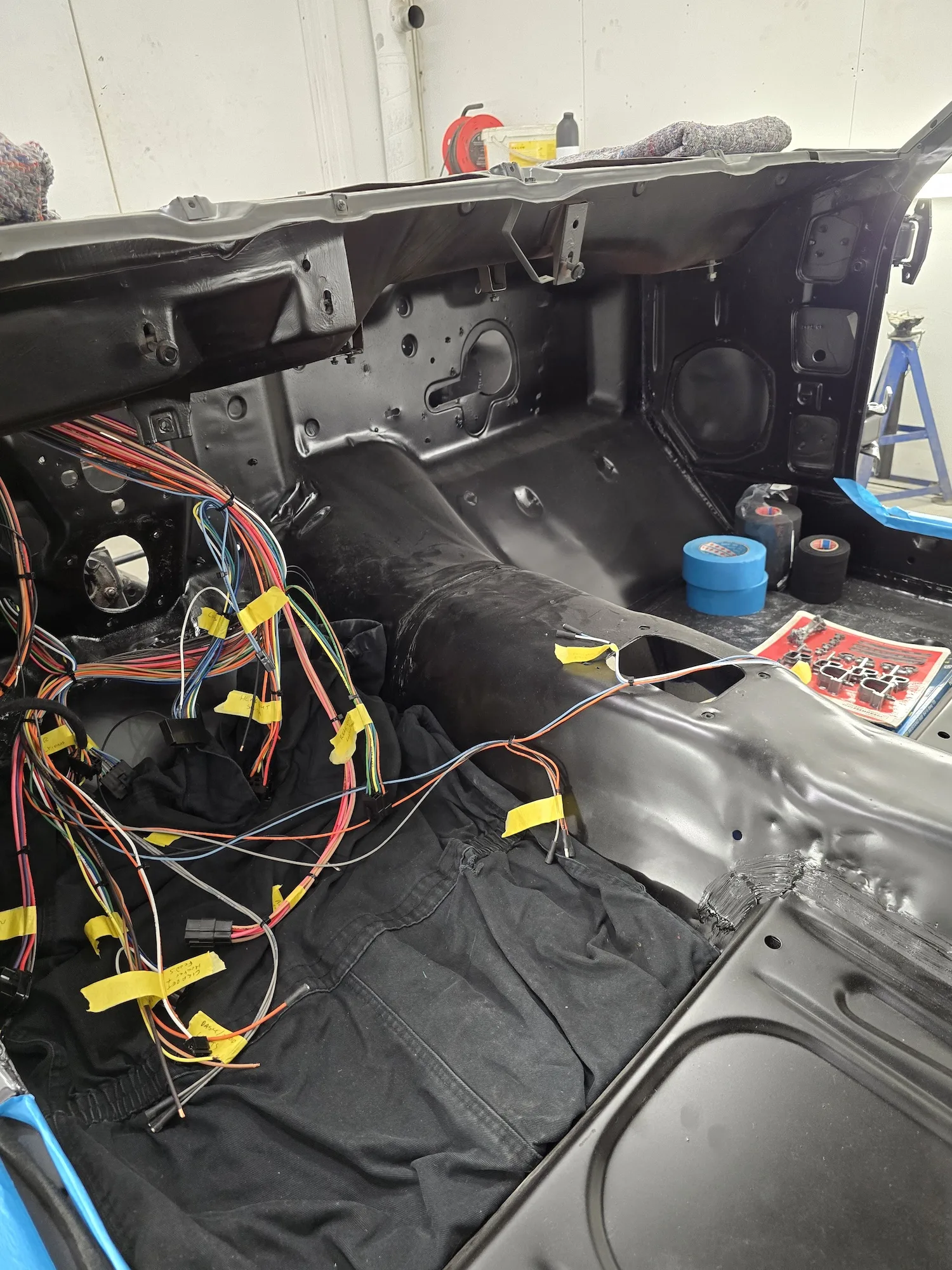 20th February 2026: The engine that the customer sourced is now in the car and in the process of being linked up. Wiring of the car continues, so the rear lights have been fitted, and front lights will be soon. Headliner kit is being assembled and will shortly be installed.