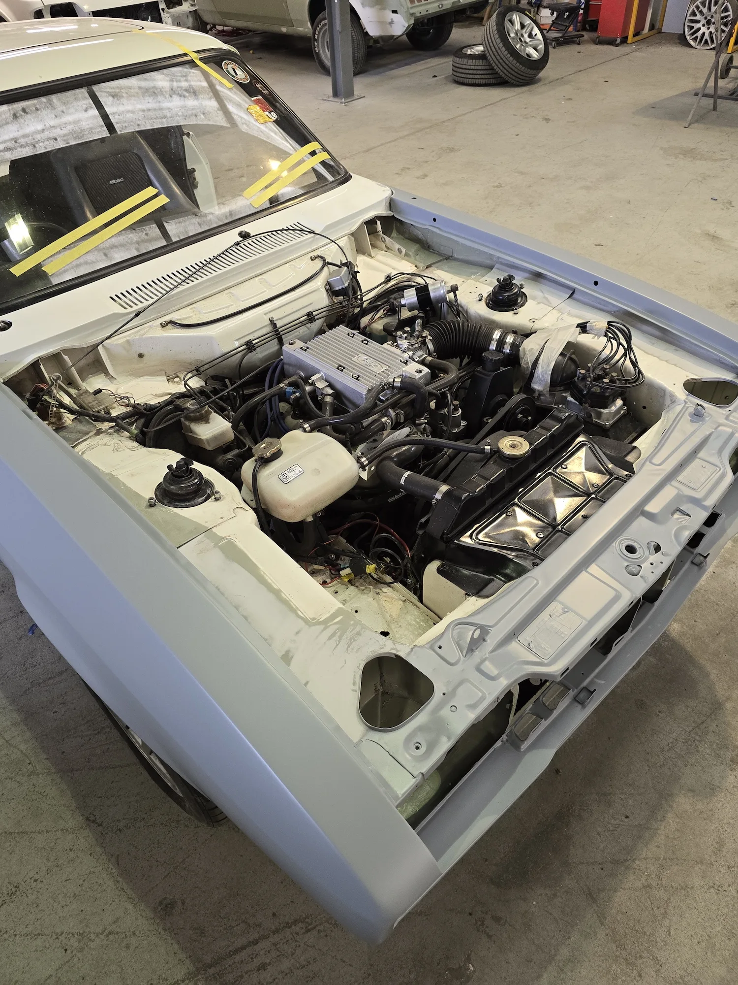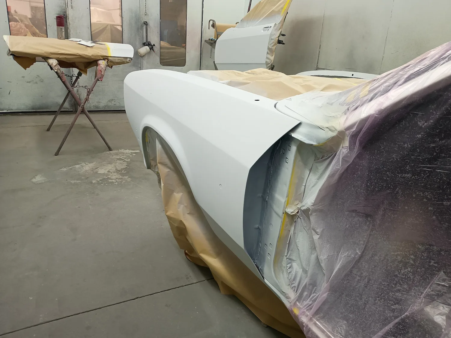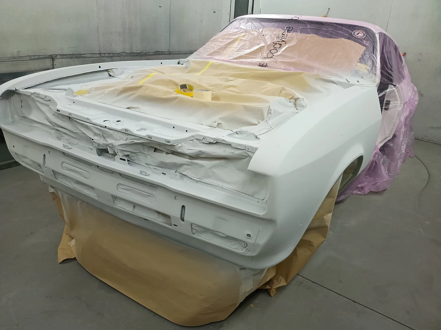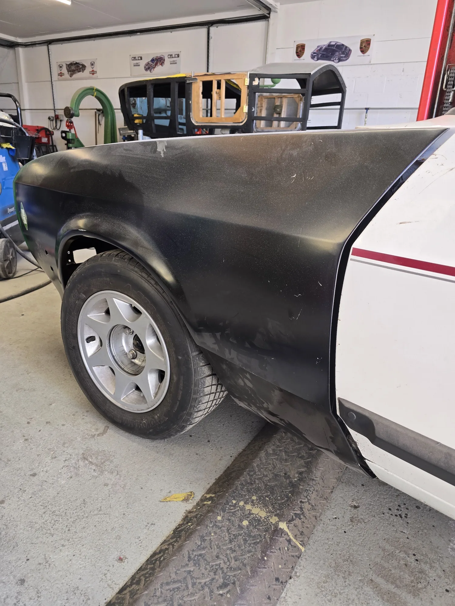 10th October 2025: The final coat of primer has been applied to the front end of the car, wings, and doors, so all are now ready for final paint.