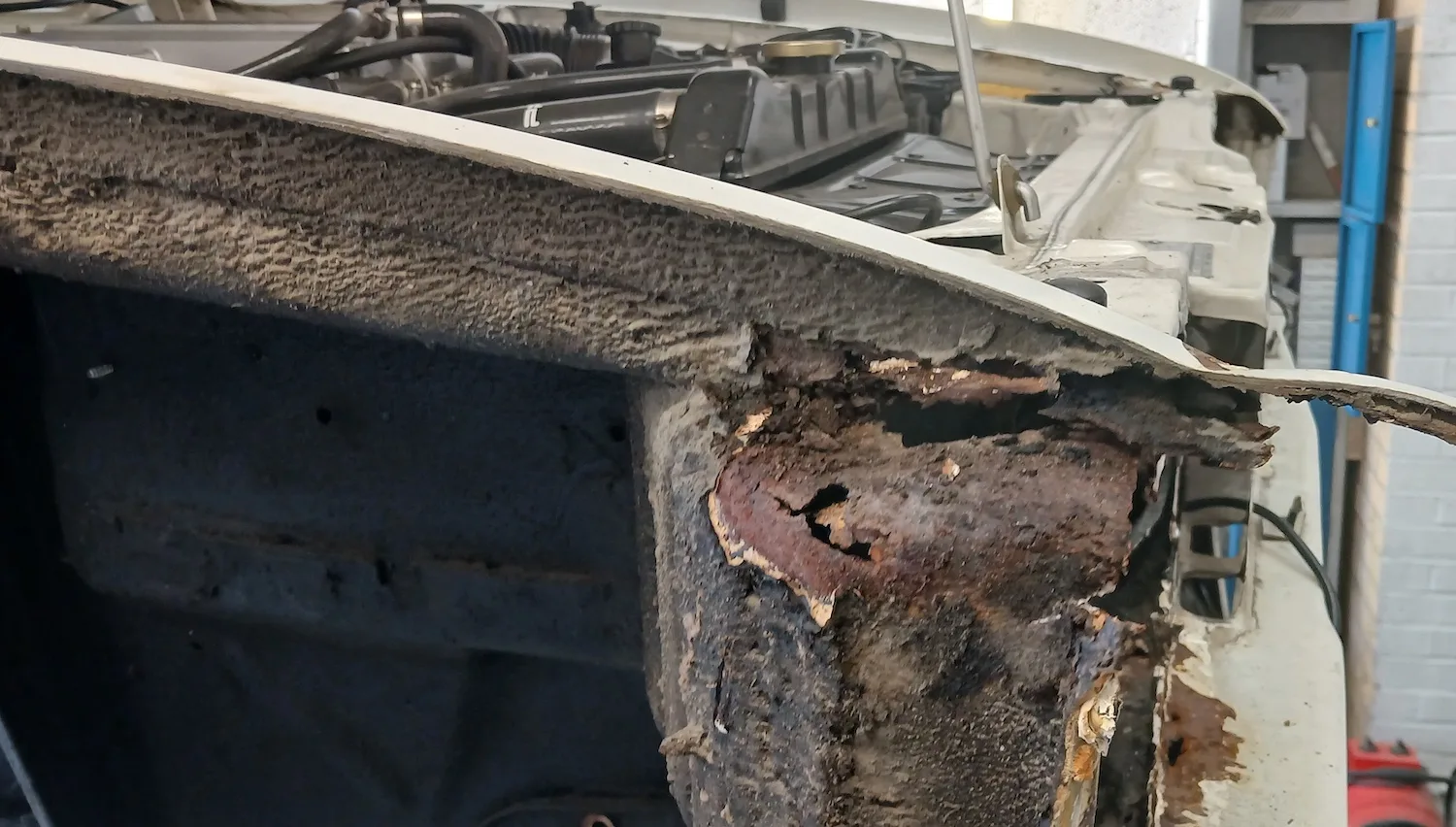 24th July 2025: Upon further inspection and removal of the front wings, substantially more rust was found which was concealed by sealer, filler and covered with fibre glass.
