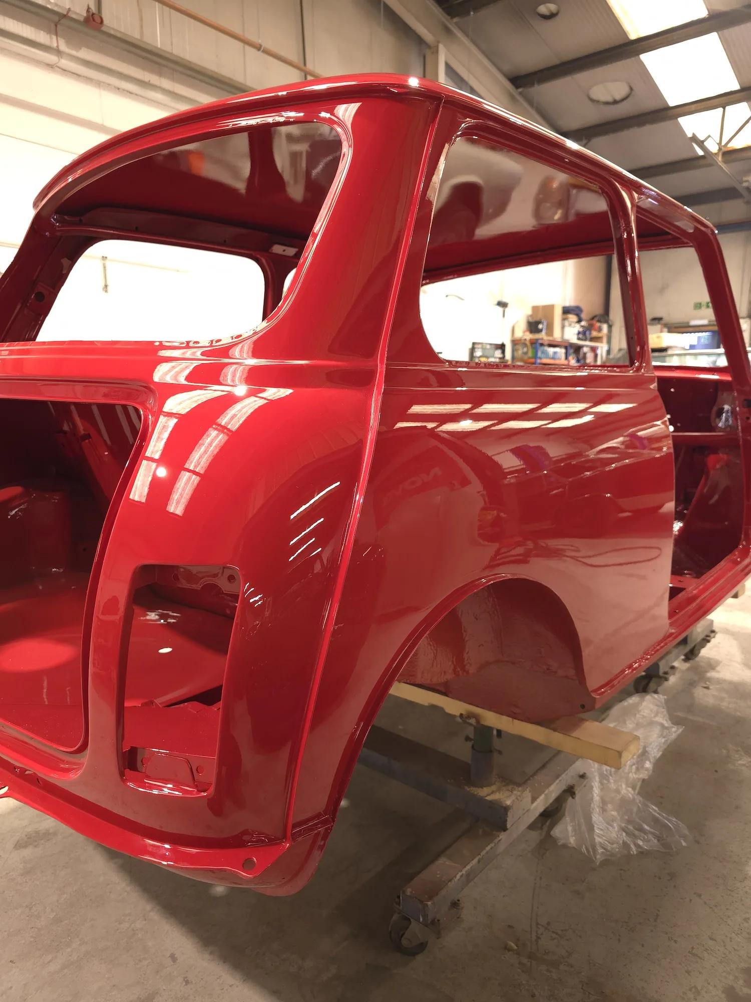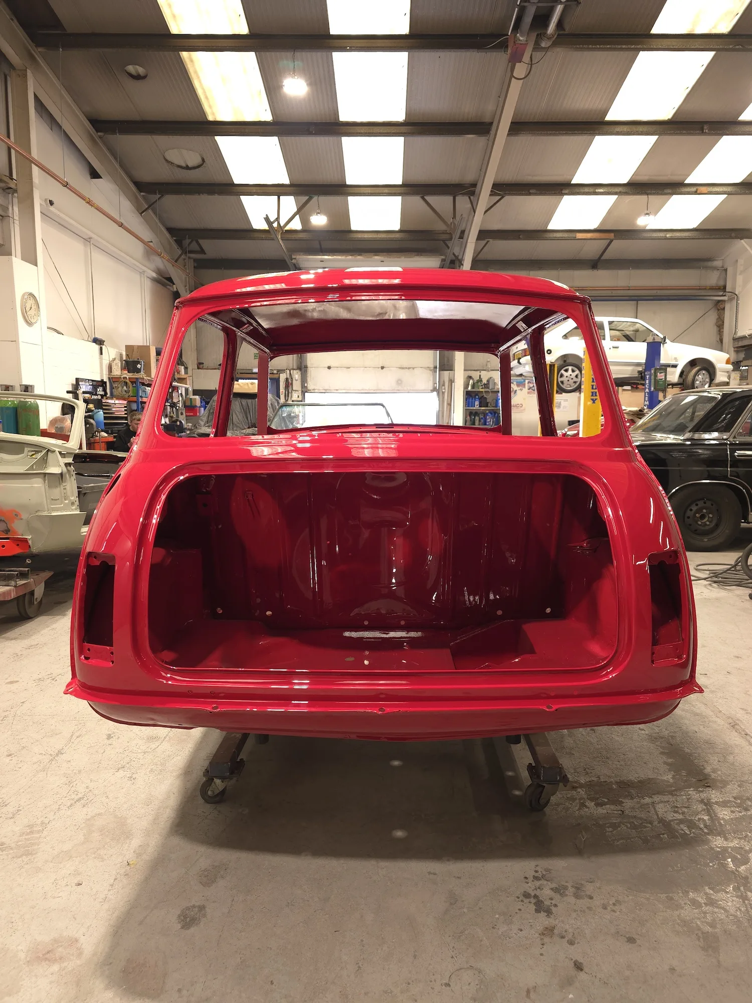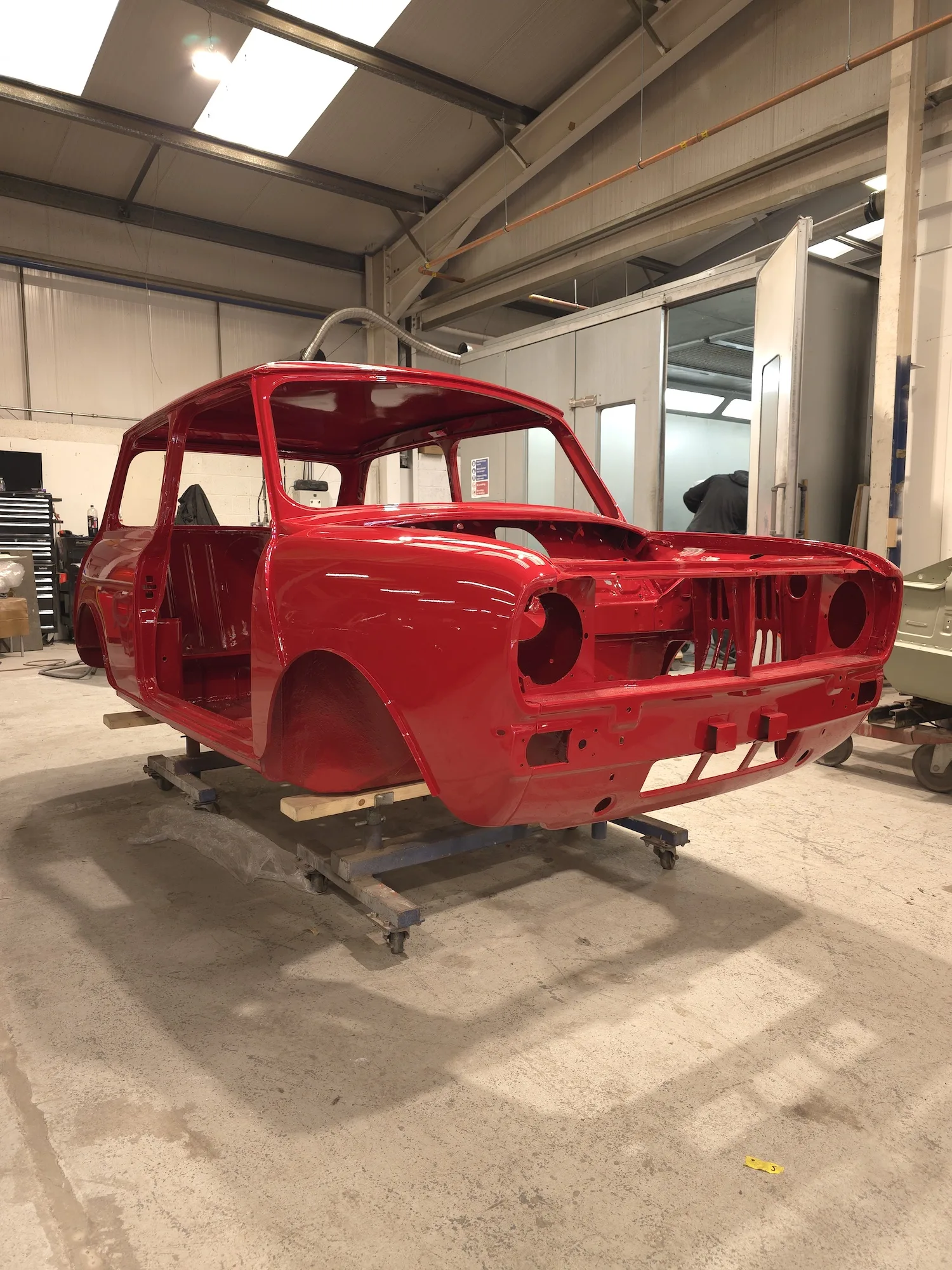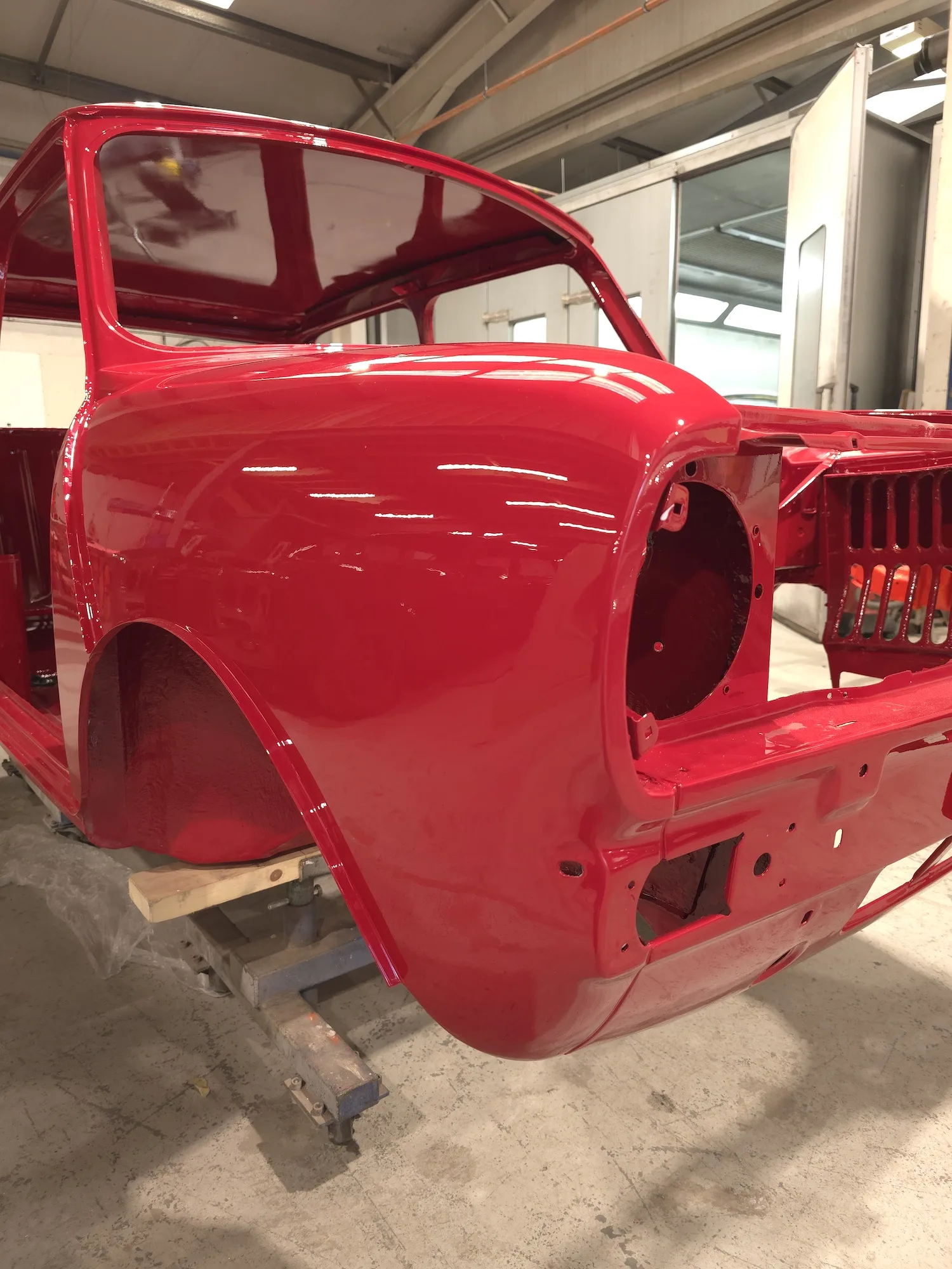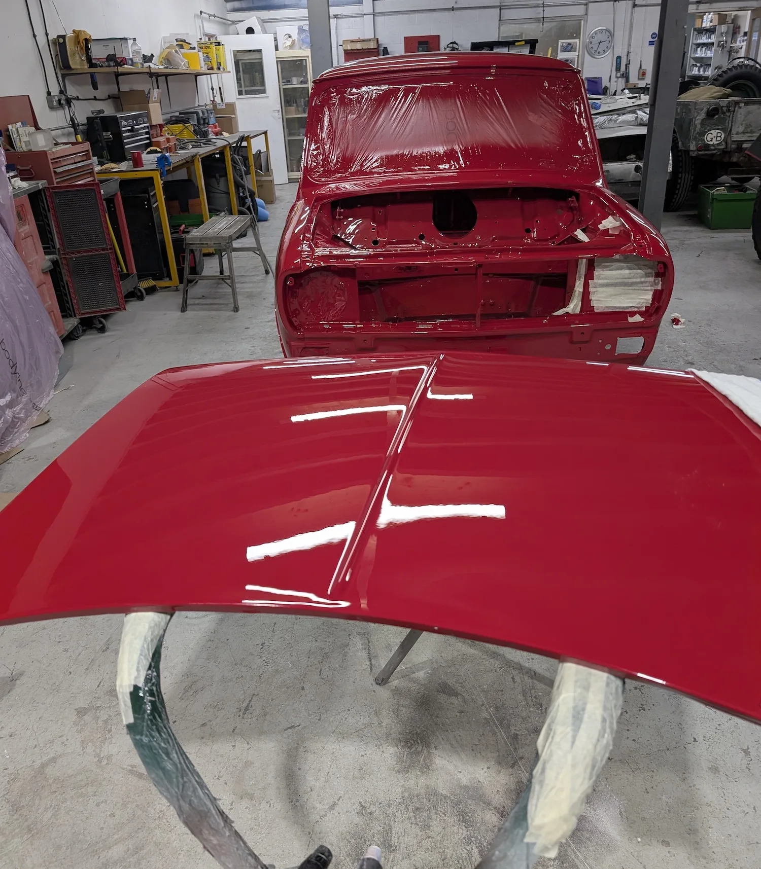 Paintwork on the body, doors and bonnet has been completed. Once the side doors, boot door and bonnet have been refitted the shell will then go back to the owner.