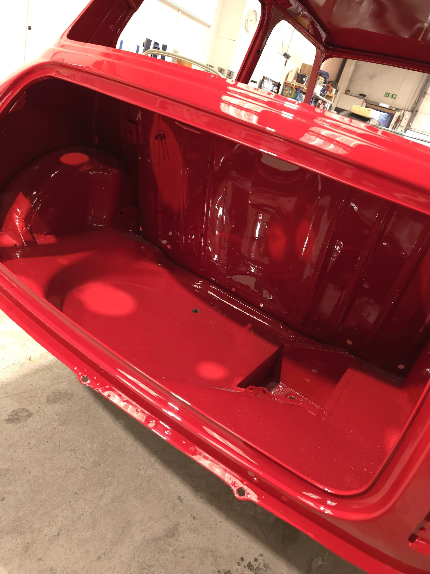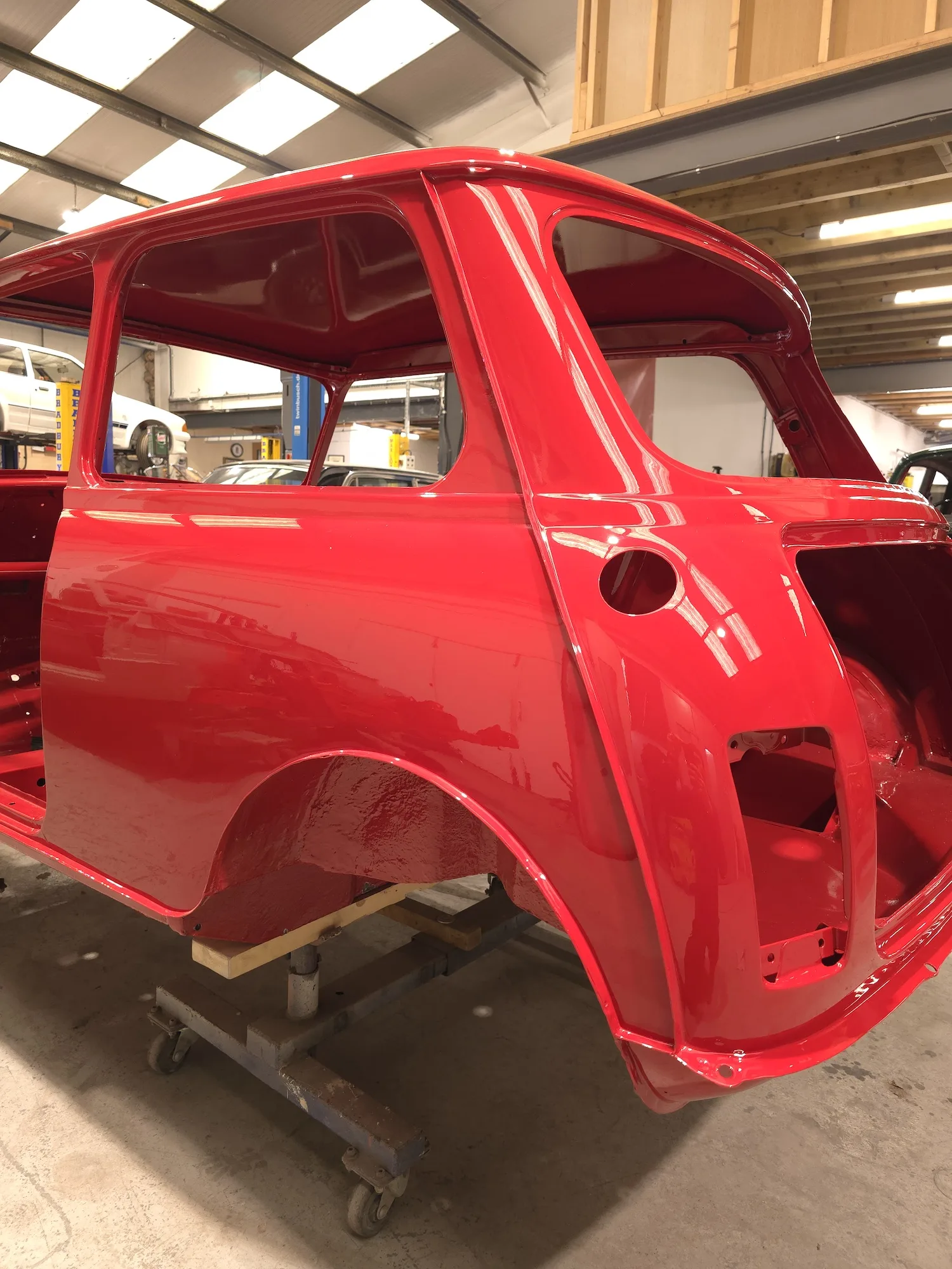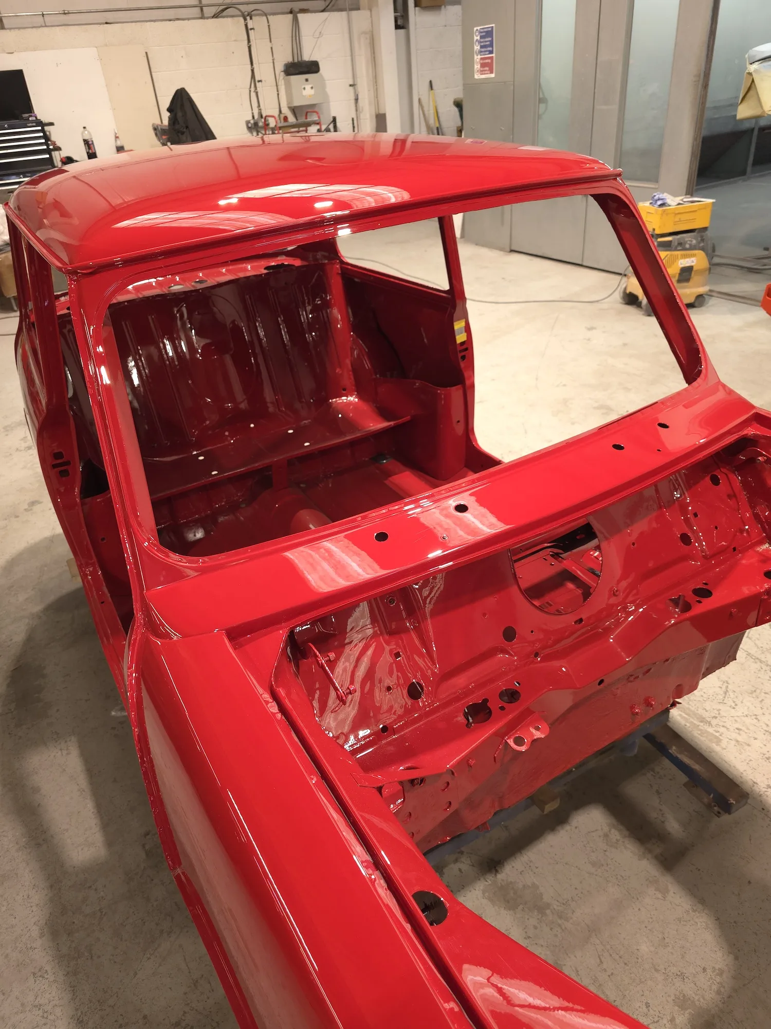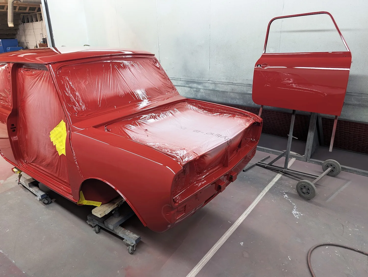 Paintwork on the body, doors and bonnet has been completed. Once the side doors, boot door and bonnet have been refitted the shell will then go back to the owner.