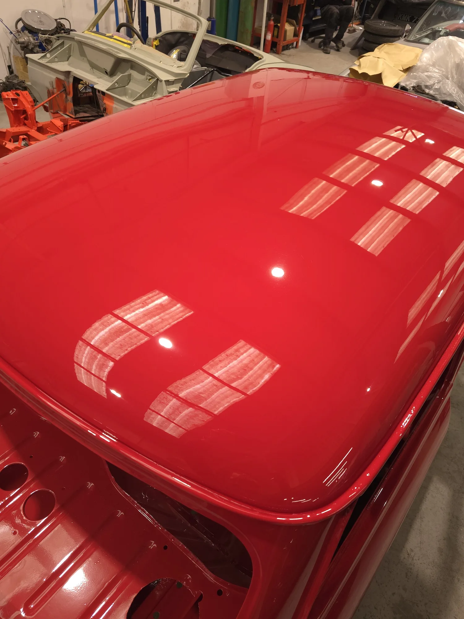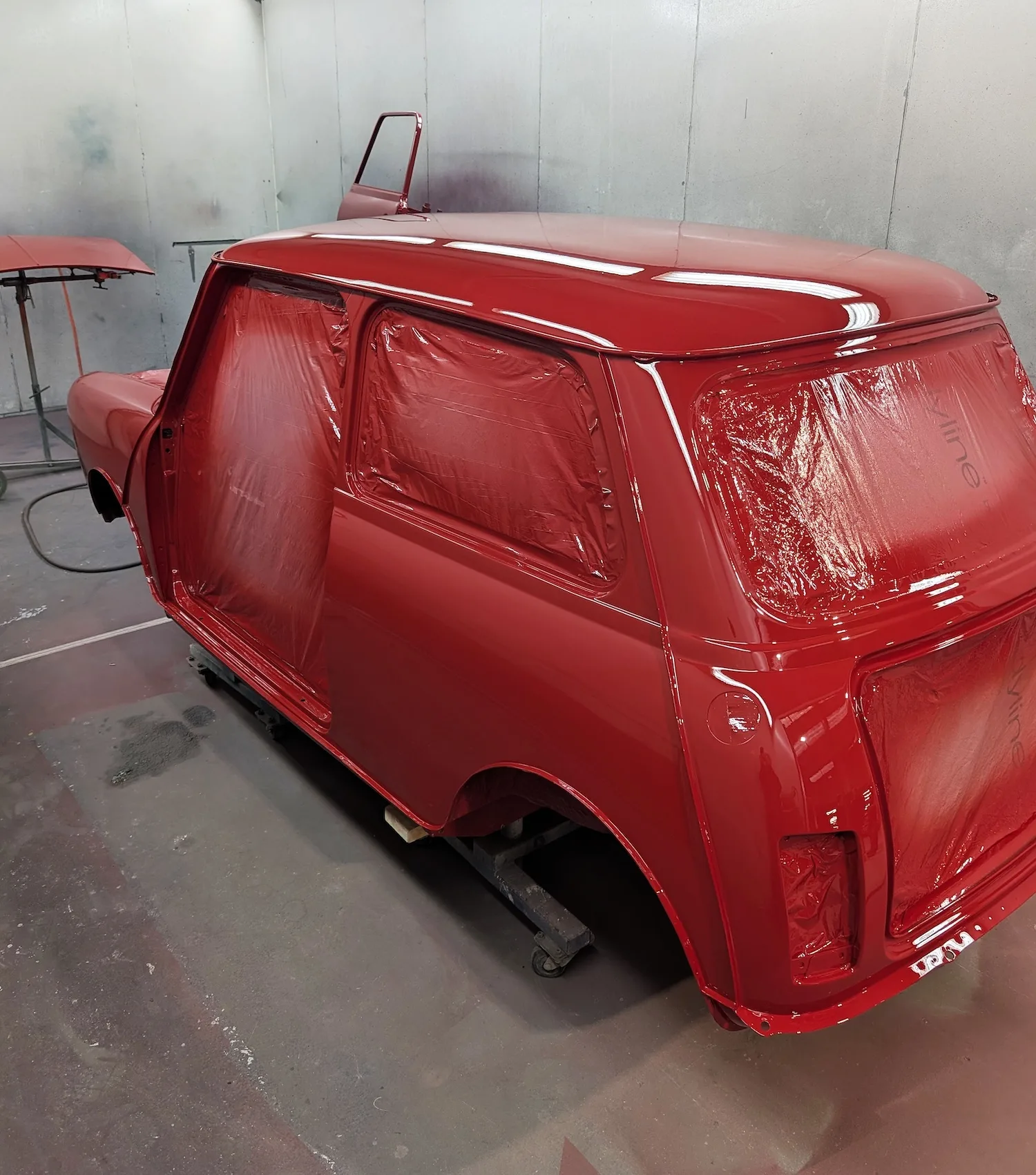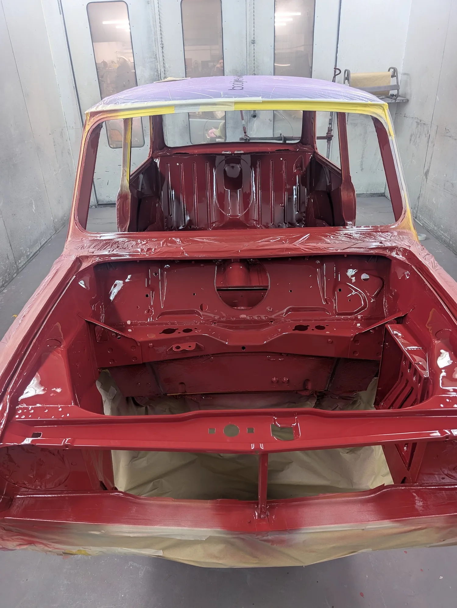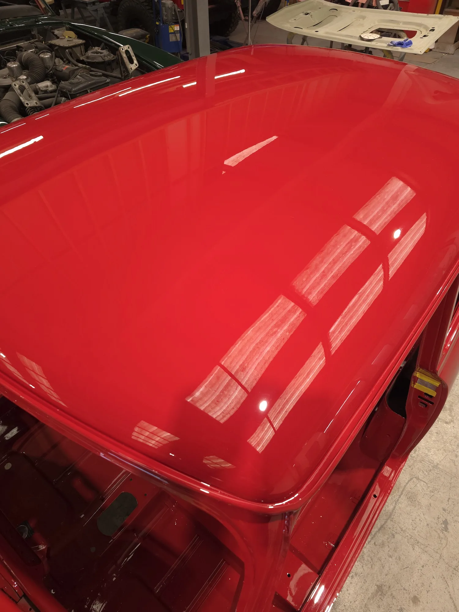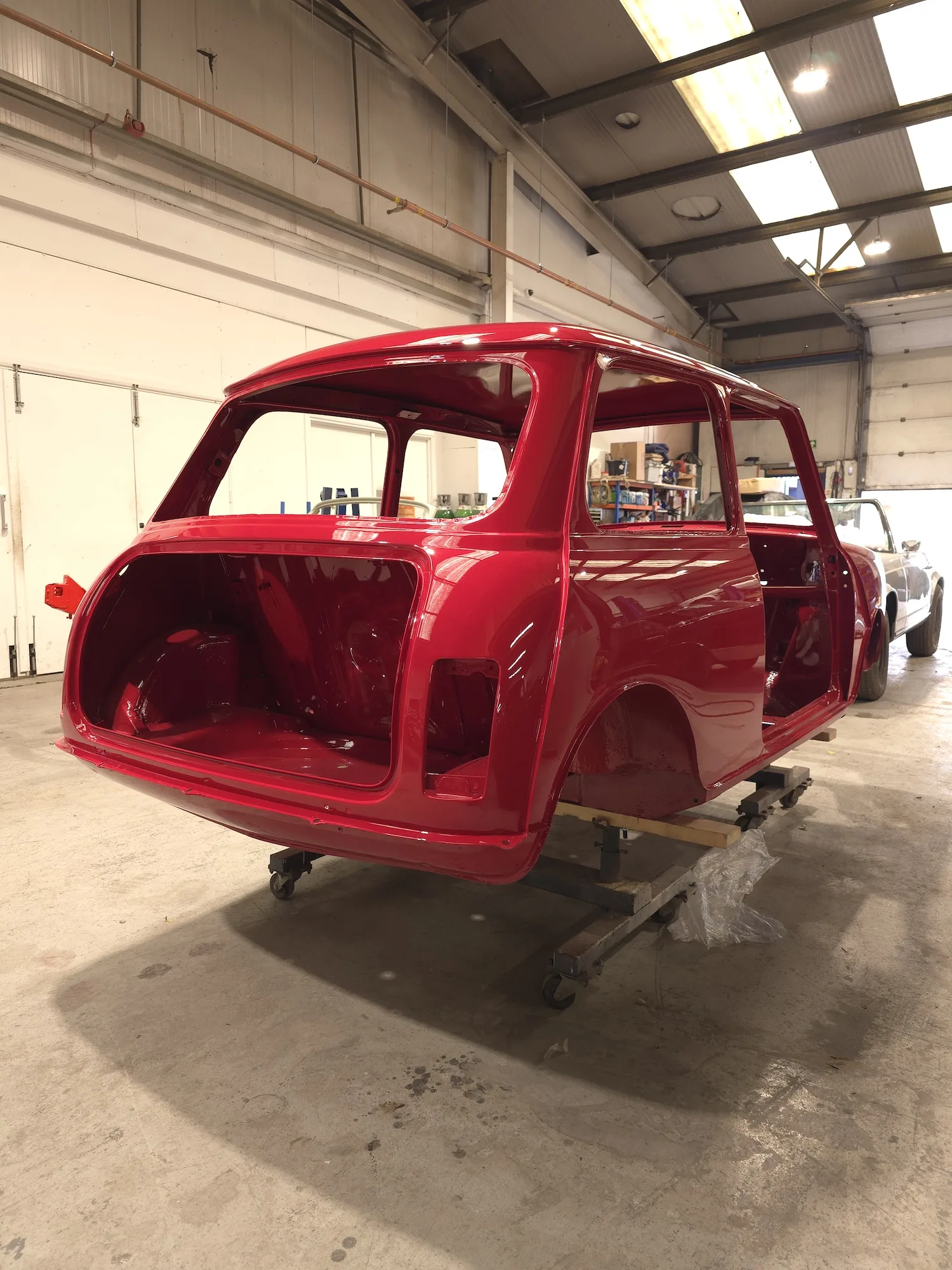 Paintwork on the body, doors and bonnet has been completed. Once the side doors, boot door and bonnet have been refitted the shell will then go back to the owner.