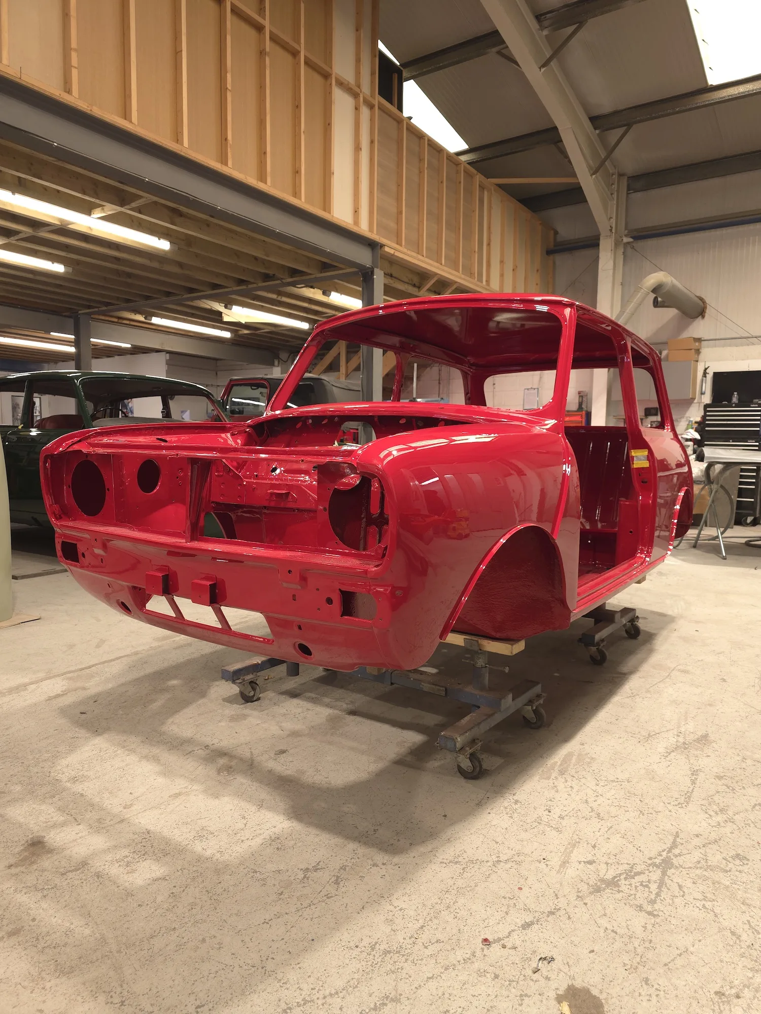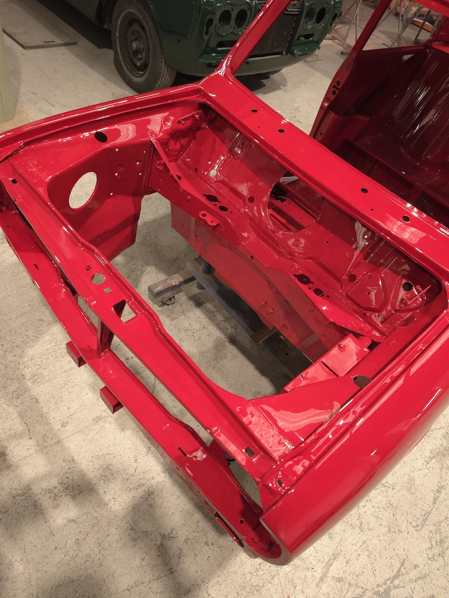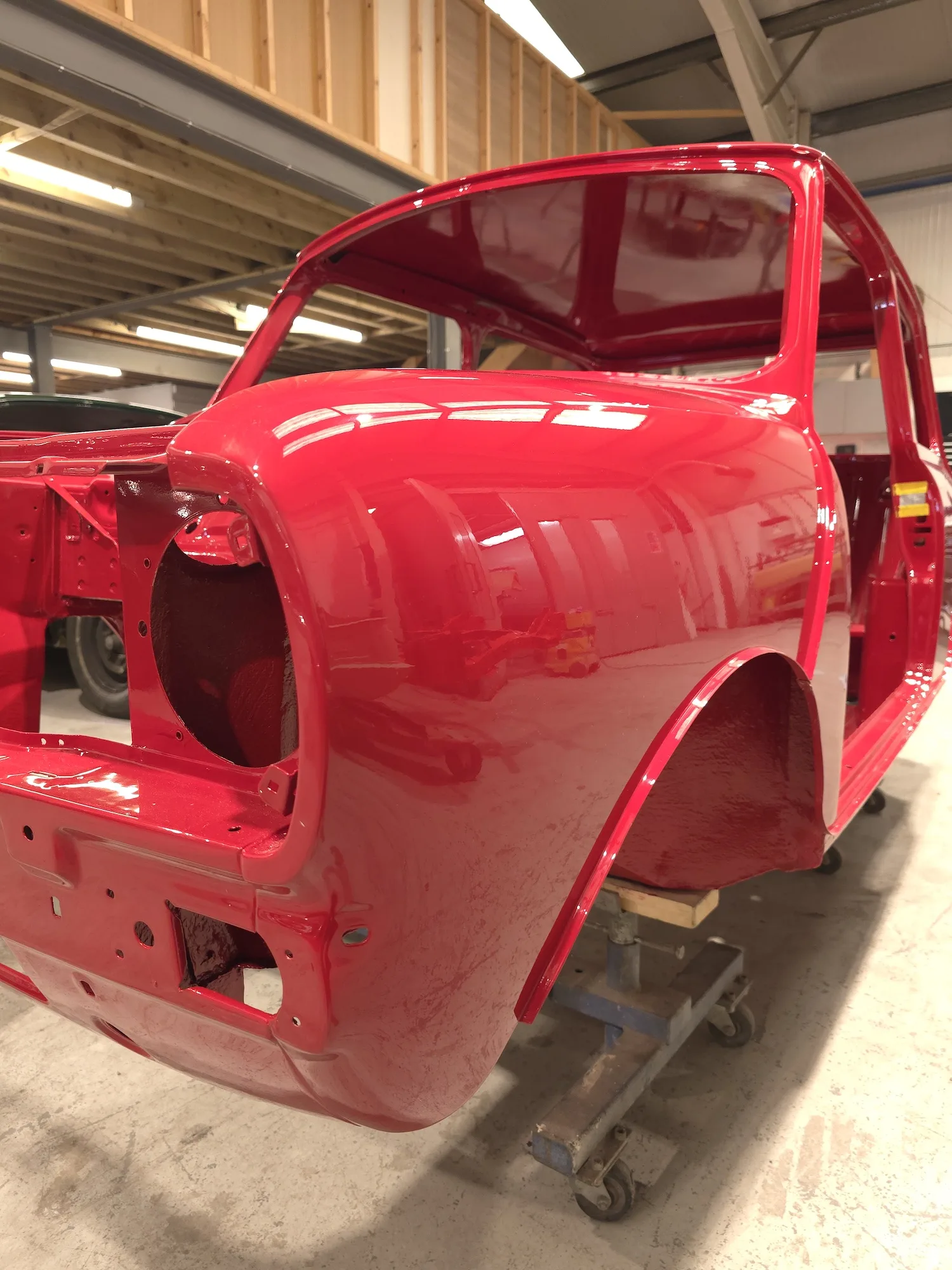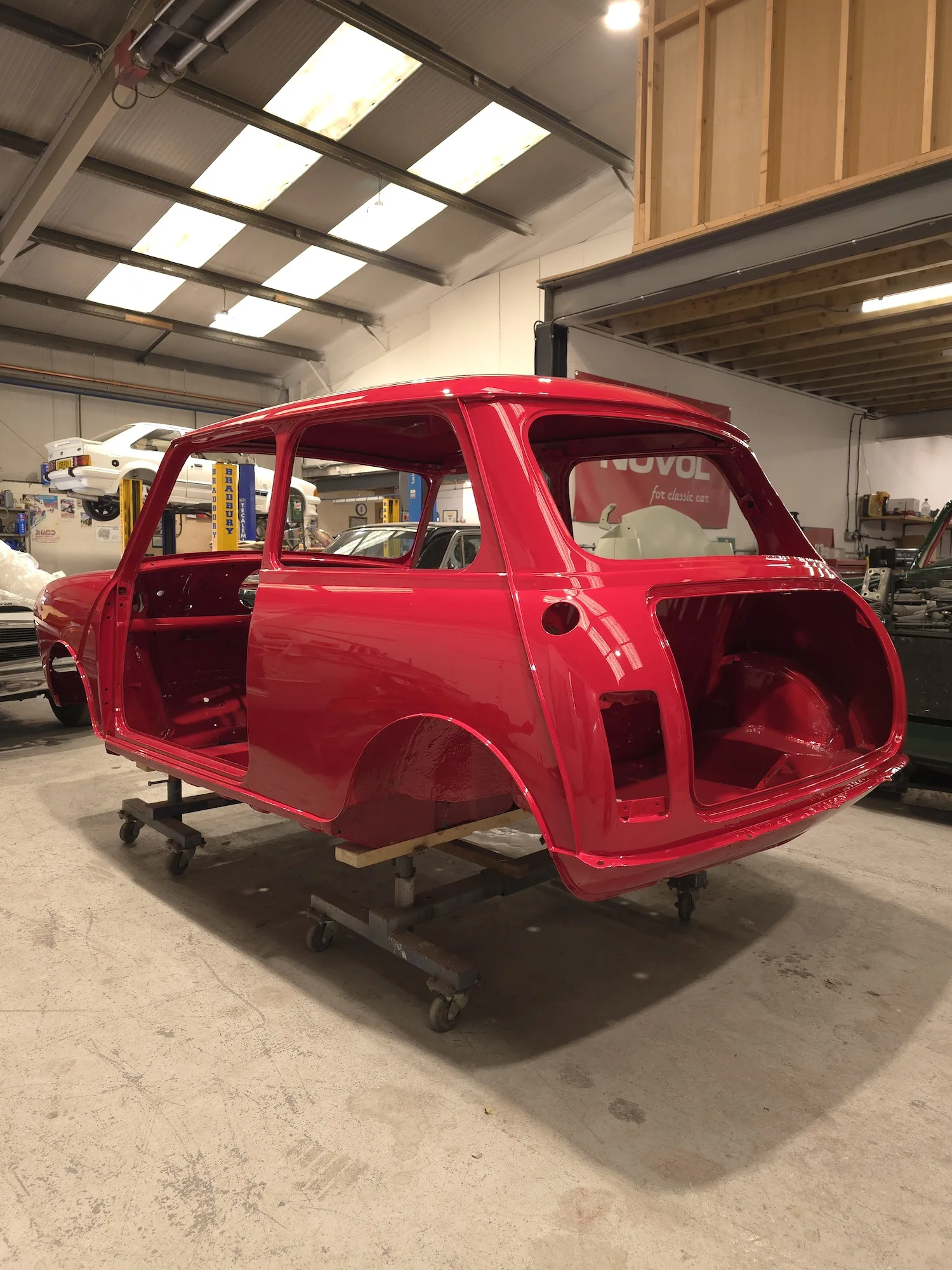 Paintwork on the body, doors and bonnet has been completed. Once the side doors, boot door and bonnet have been refitted the shell will then go back to the owner.