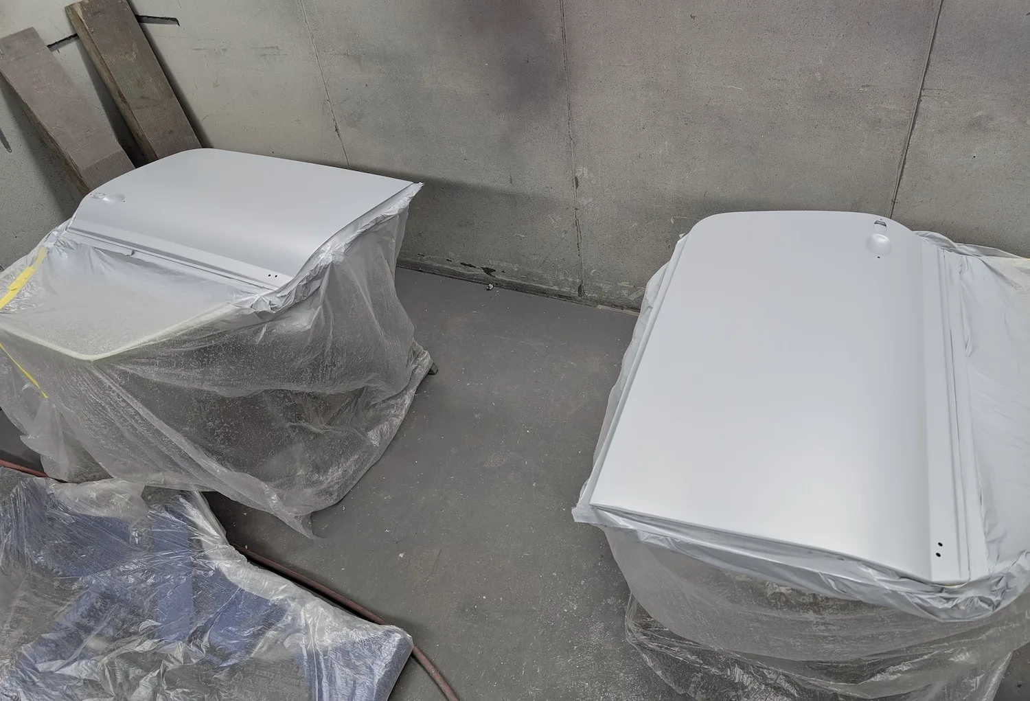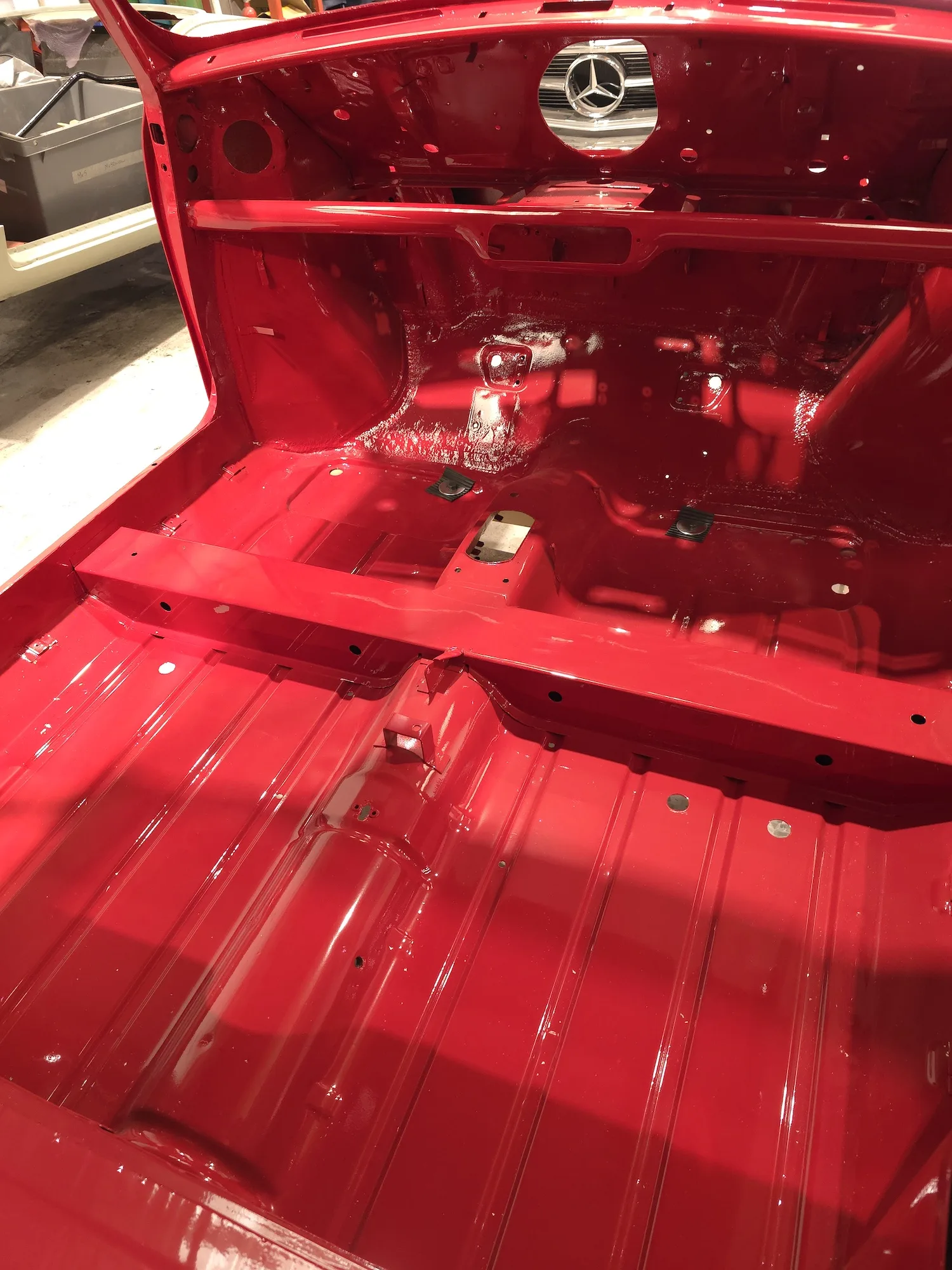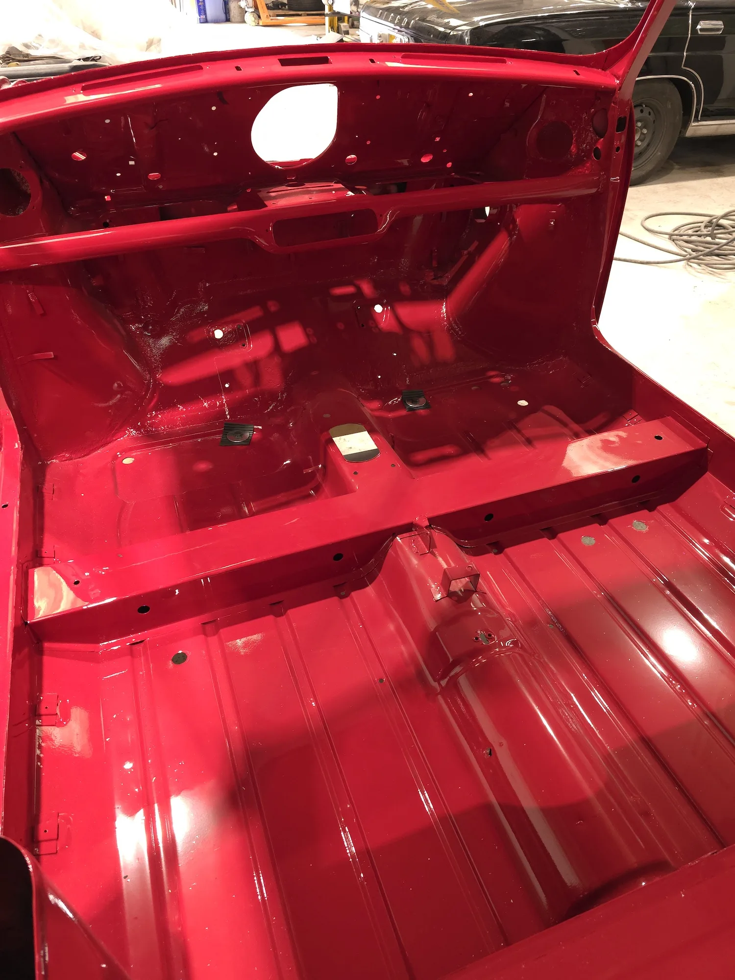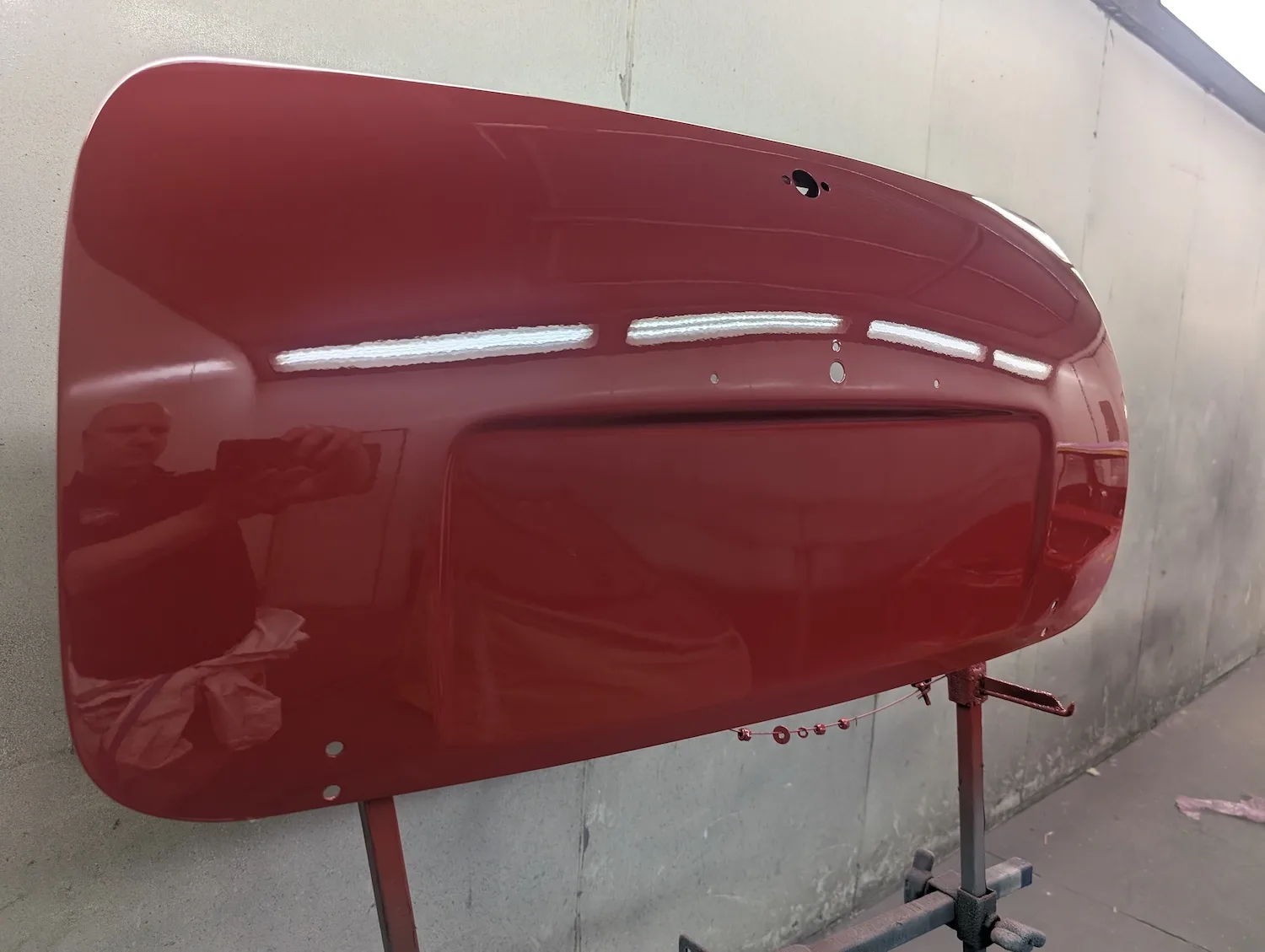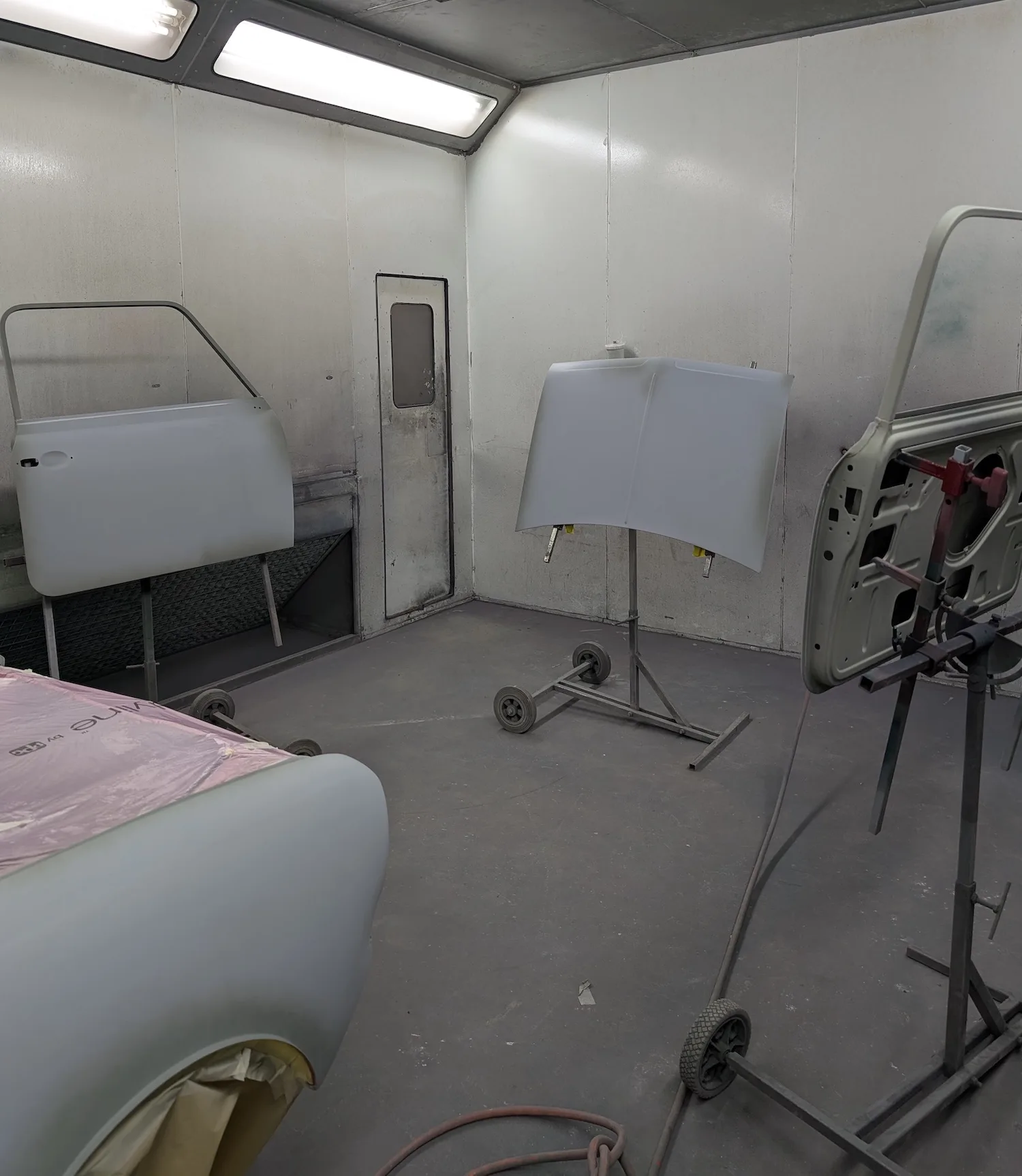 Paintwork on the body, doors and bonnet has been completed. Once the side doors, boot door and bonnet have been refitted the shell will then go back to the owner.
