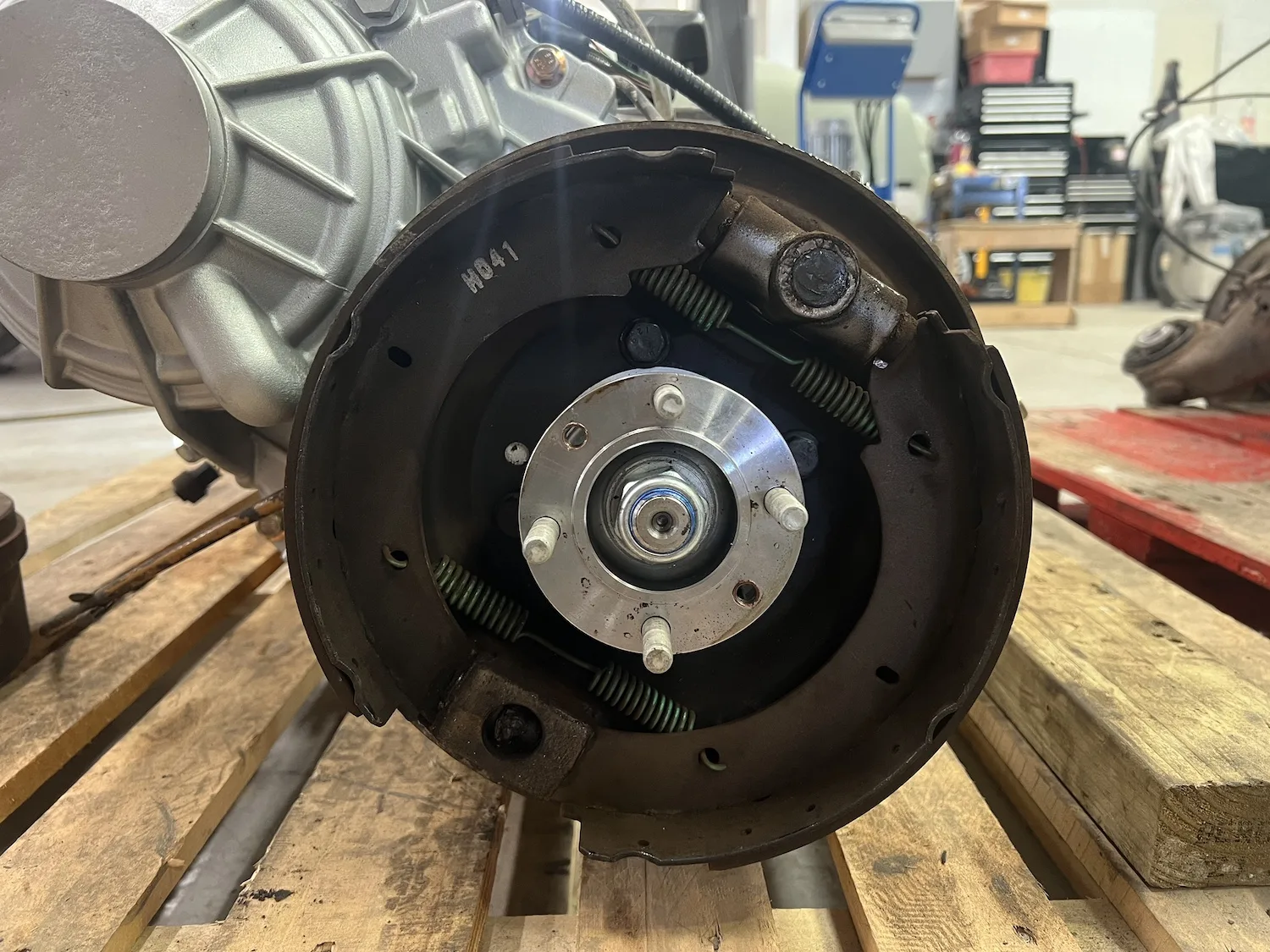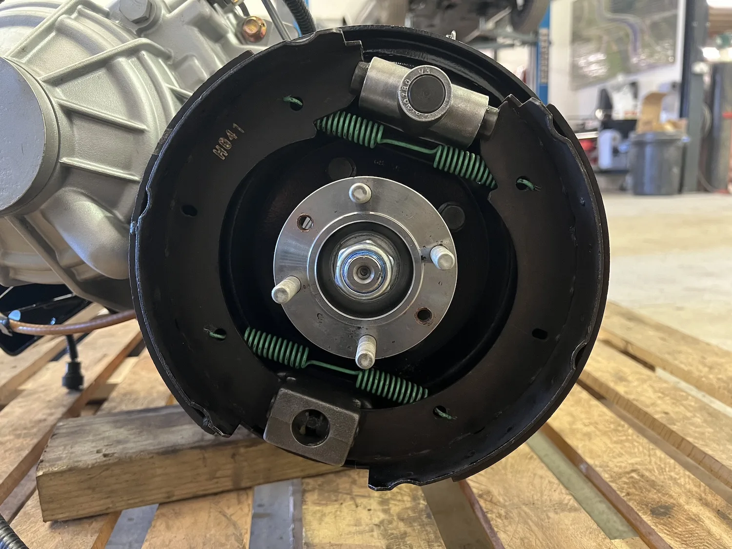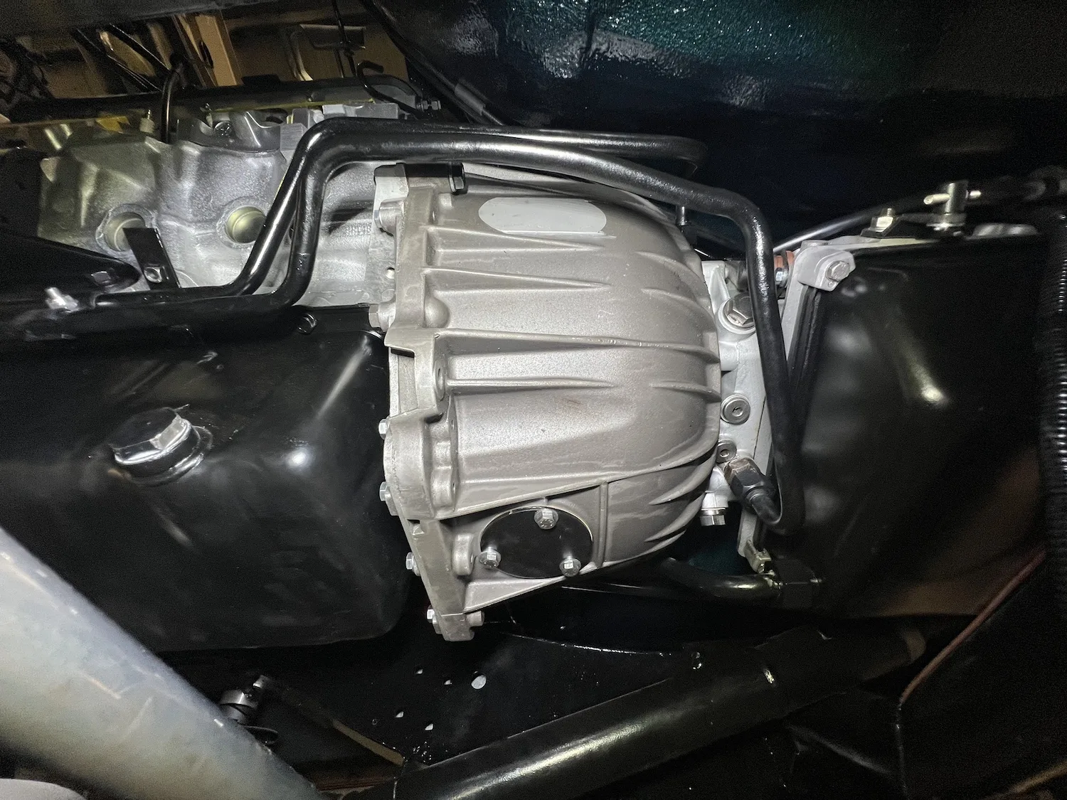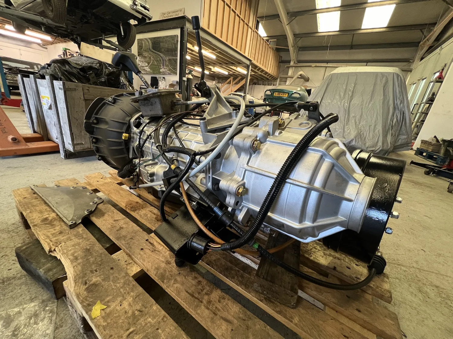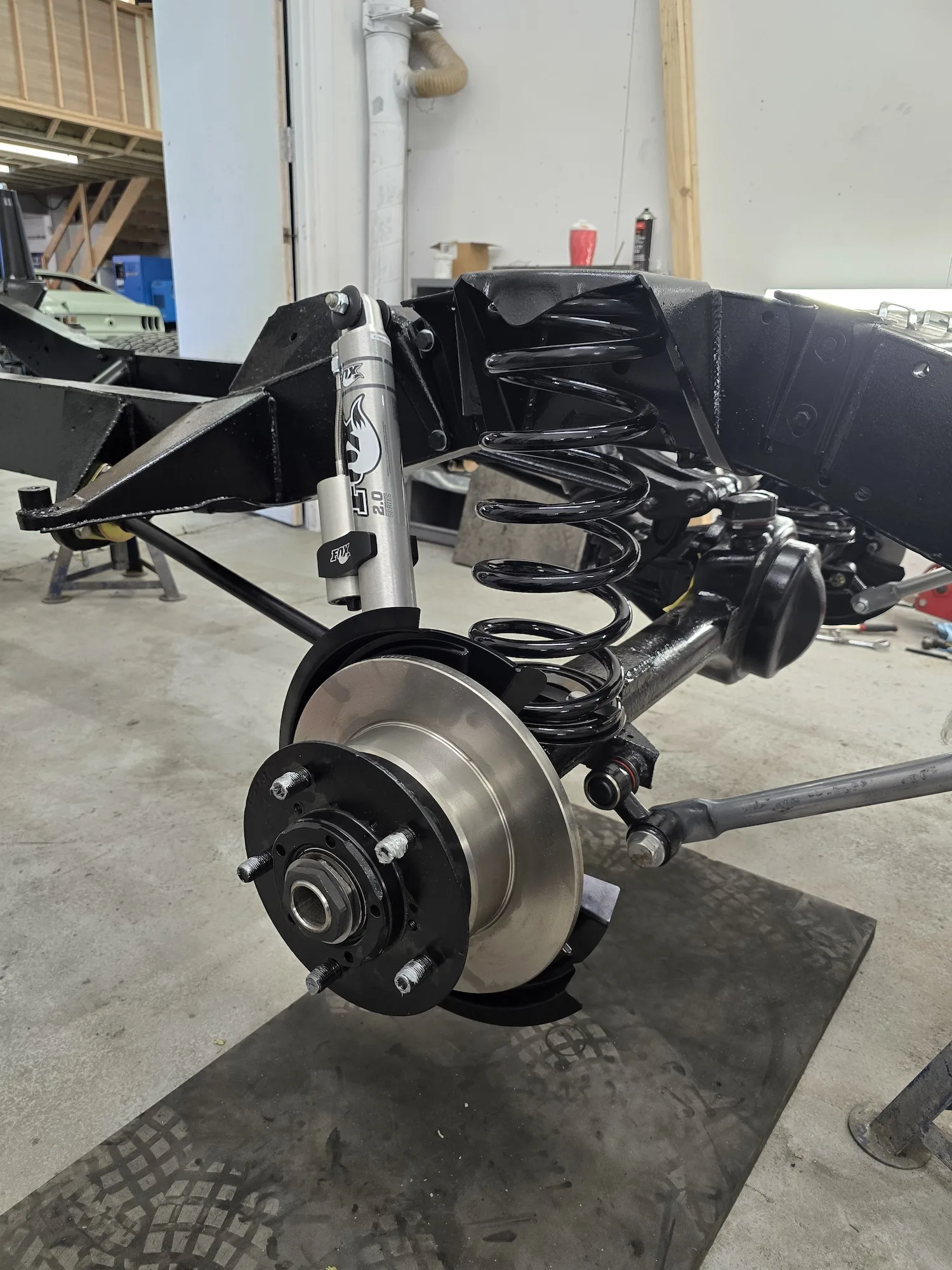 More parts have been fitted on the new chassis, including front and rear axles, new suspension, and brake discs. It will soon become a rolling chassis, and the body will be put on to check for correct door gaps.