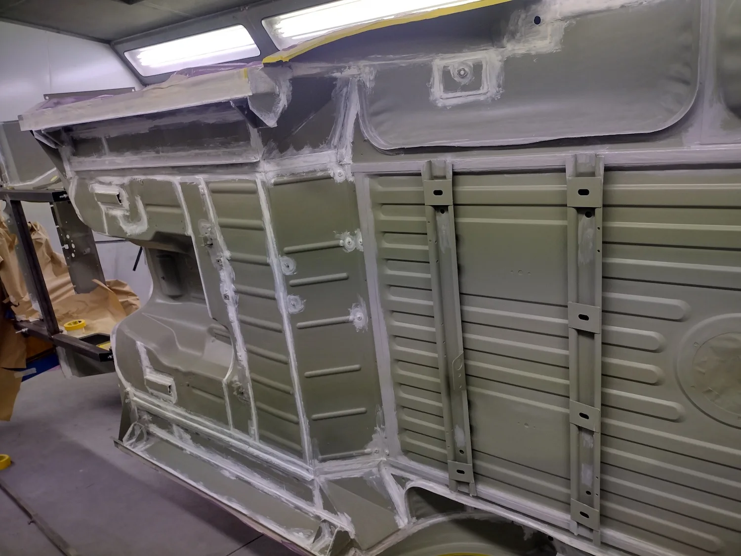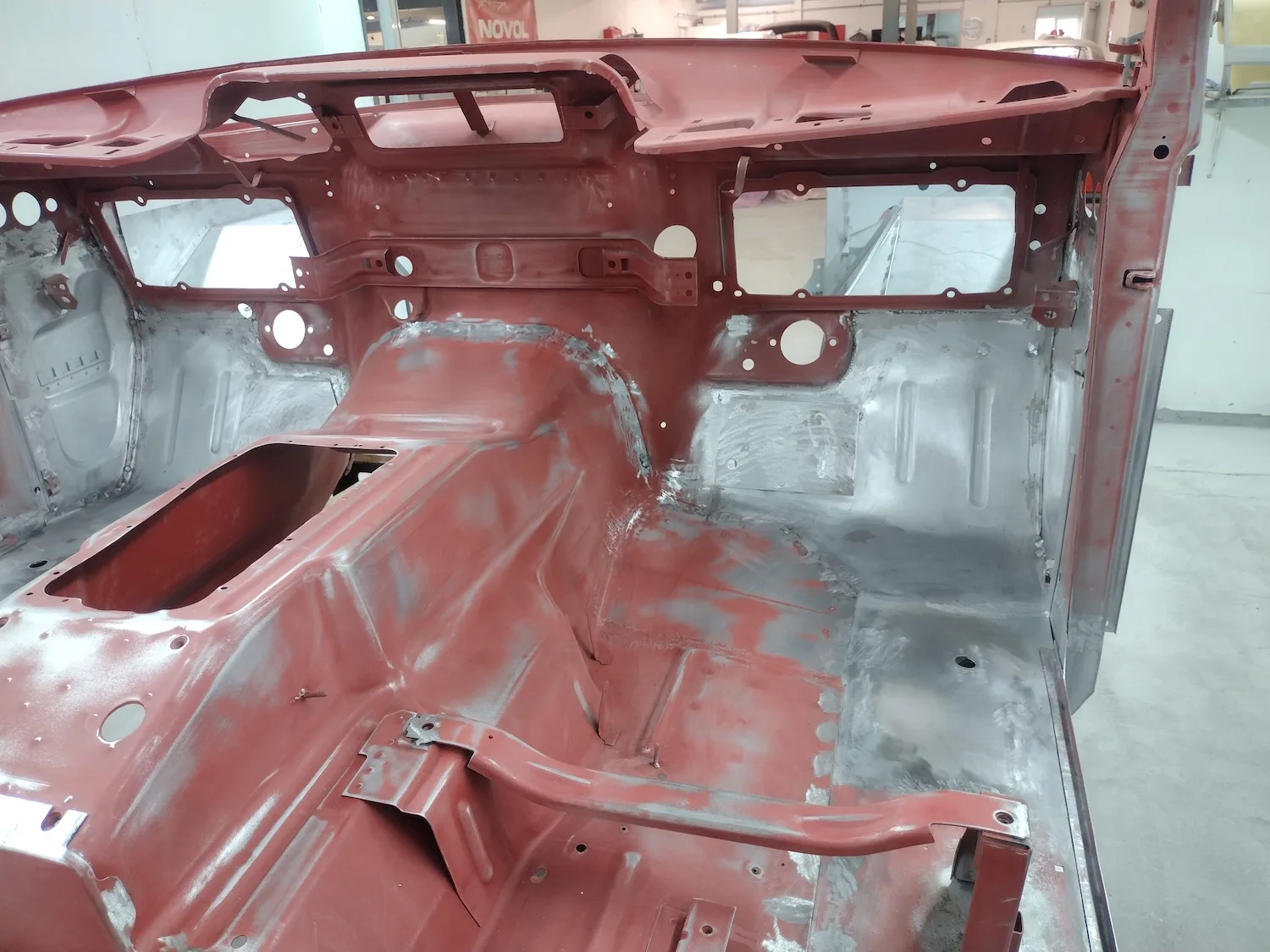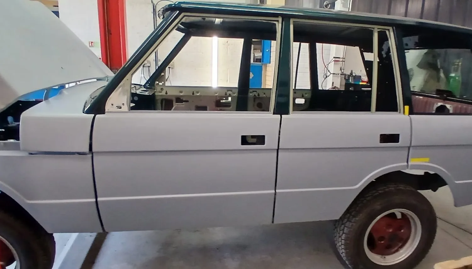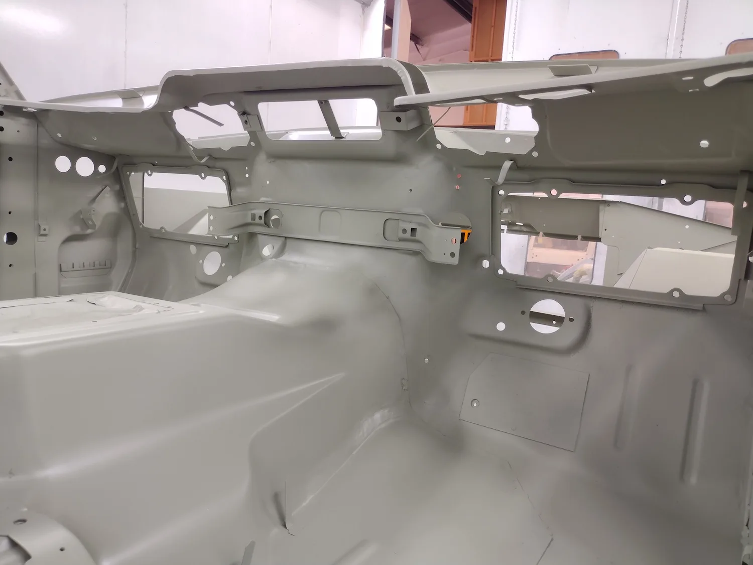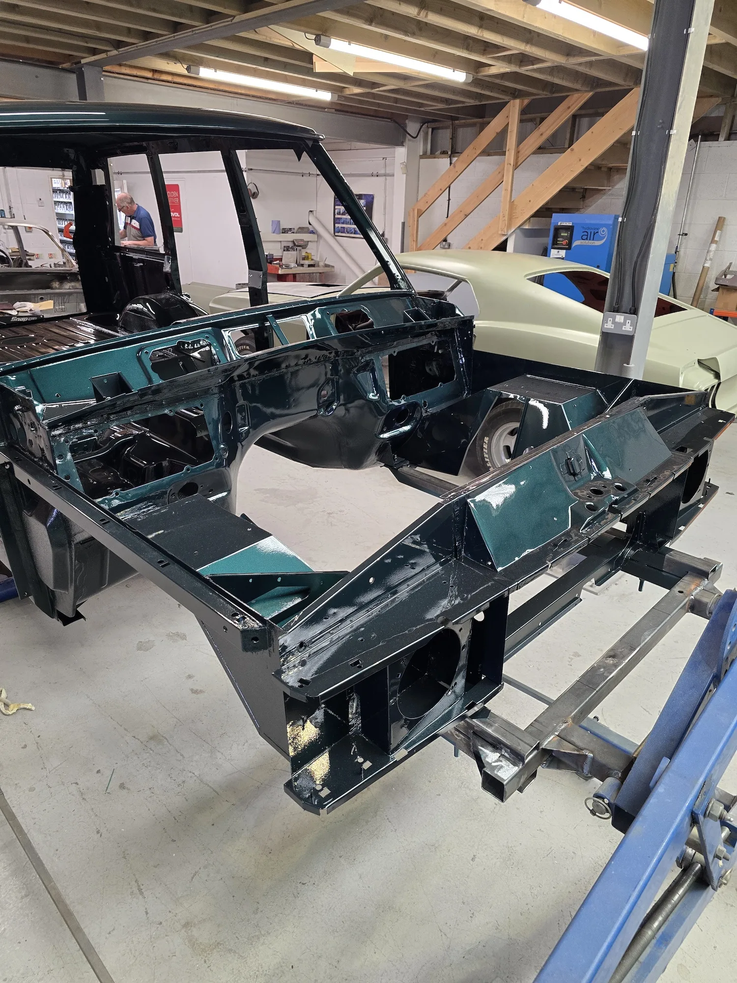 8th November 2024: The body has now been painted with primer after the first stage of prep has been carried out. The new chassis has arrived and has been painted with polycoat protect. The doors and panels have started to be stripped and prepped for paint.