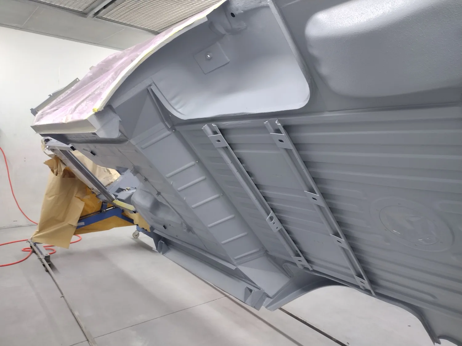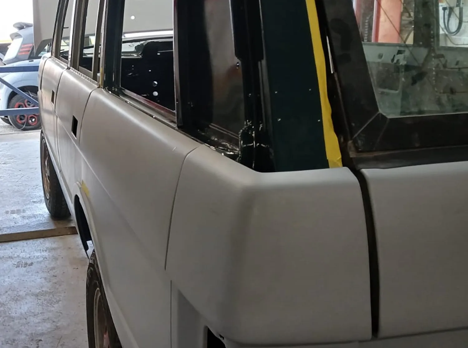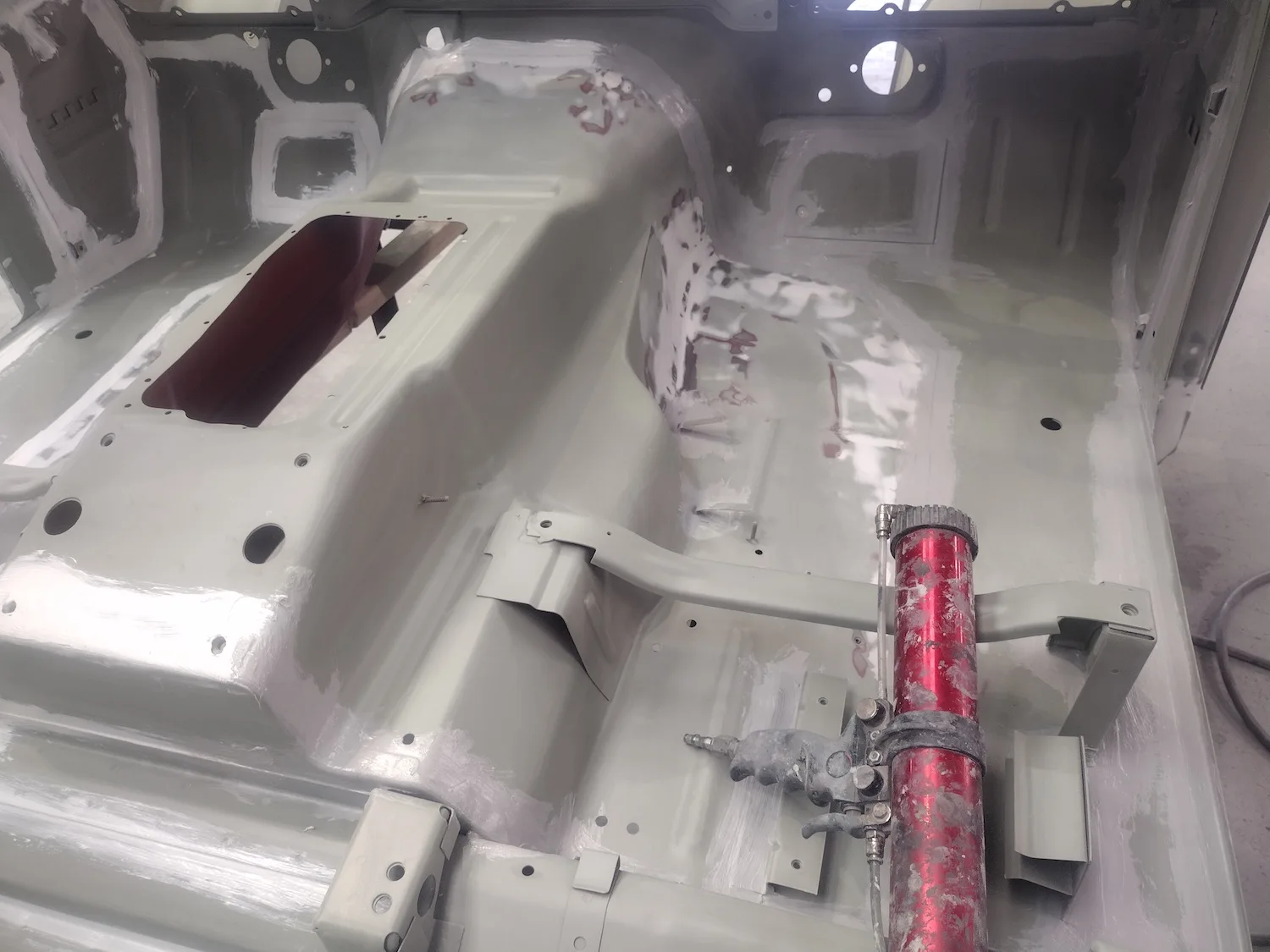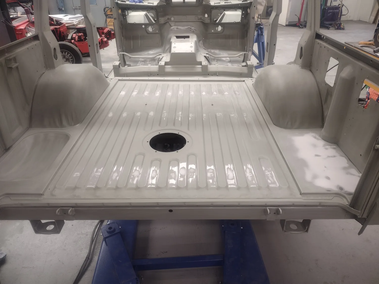 8th November 2024: The body has now been painted with primer after the first stage of prep has been carried out. The new chassis has arrived and has been painted with polycoat protect. The doors and panels have started to be stripped and prepped for paint.