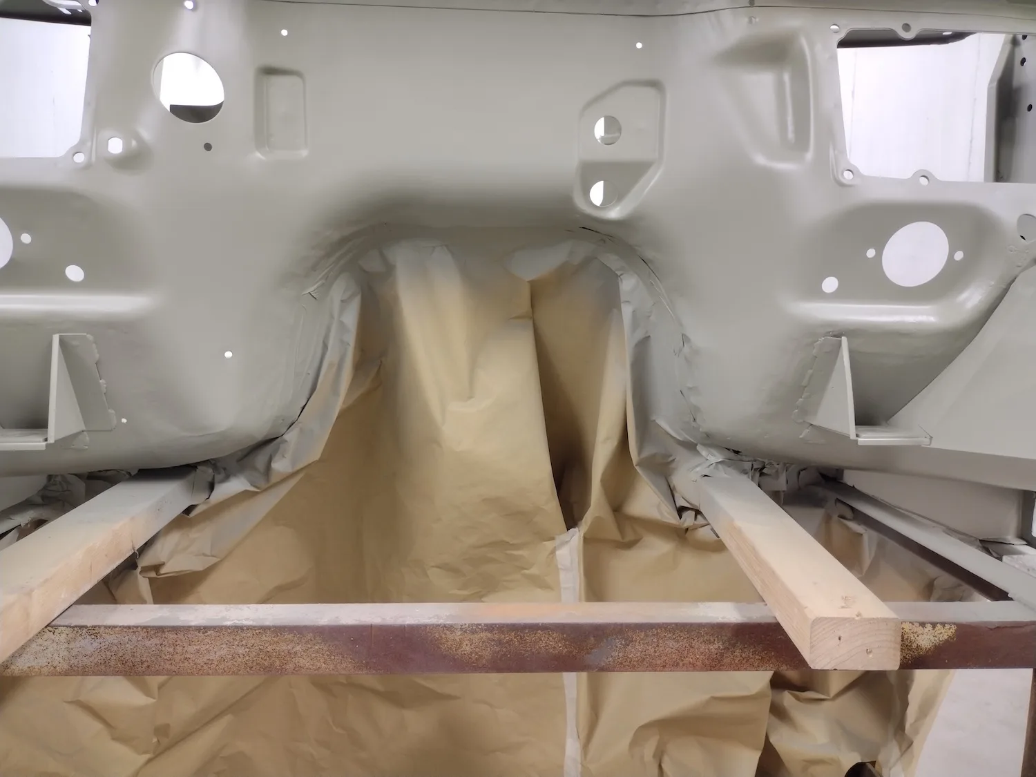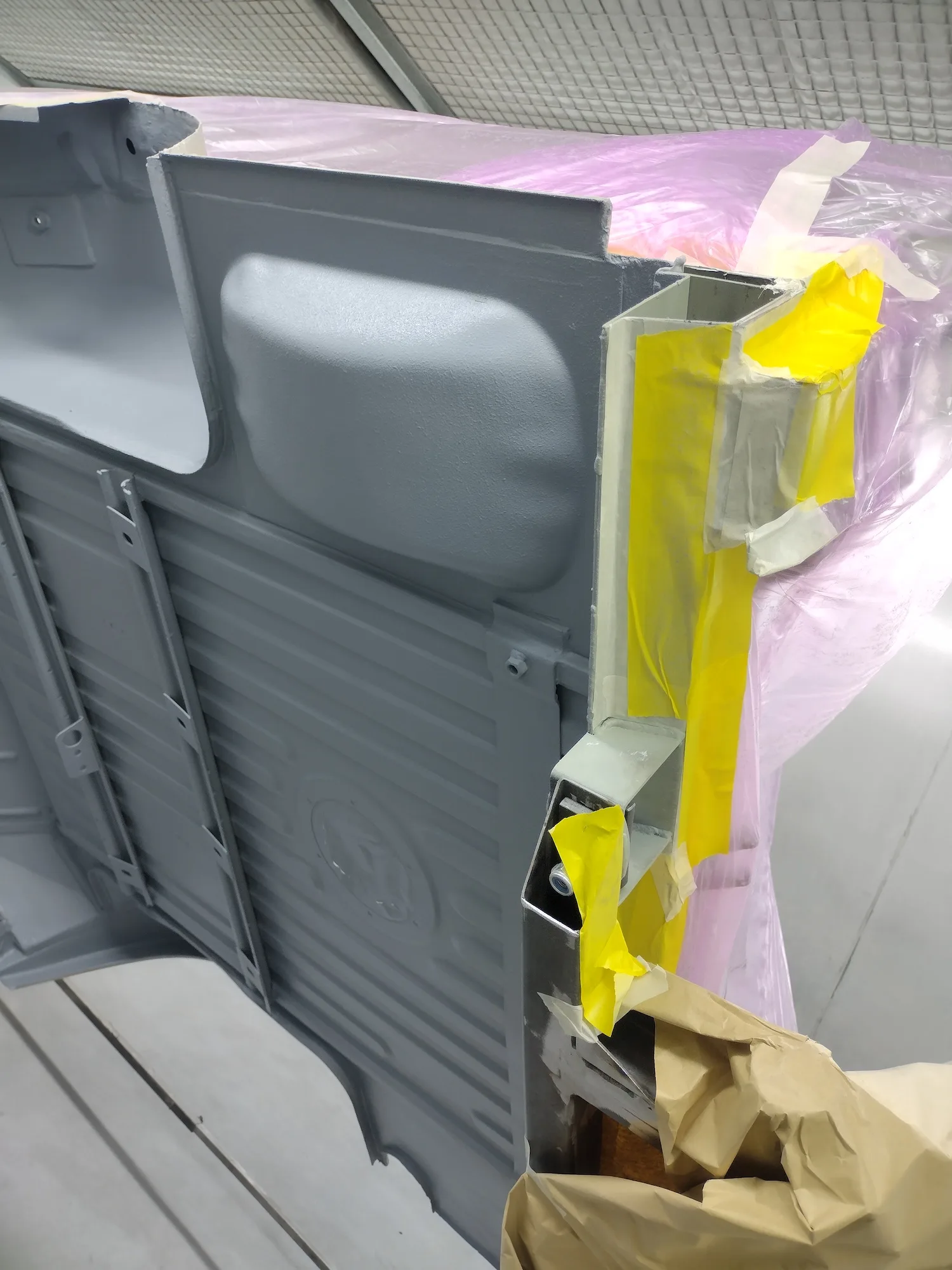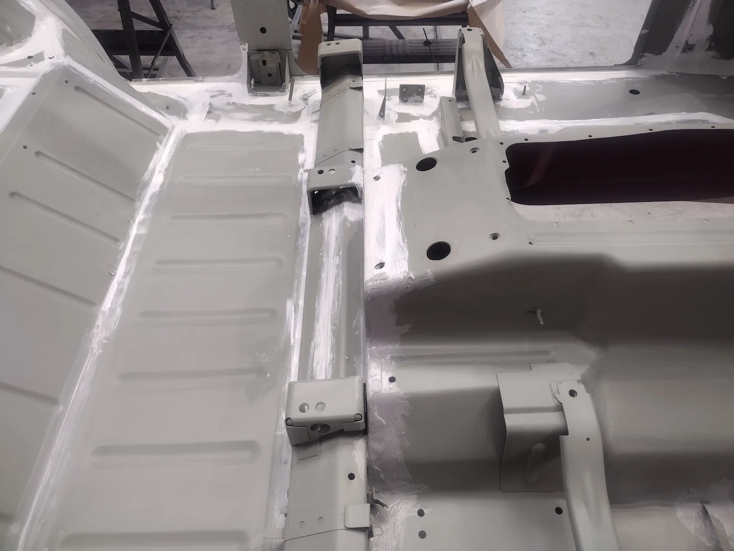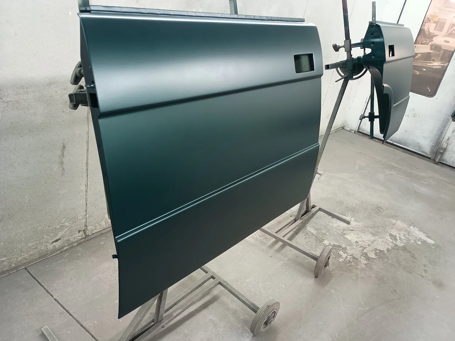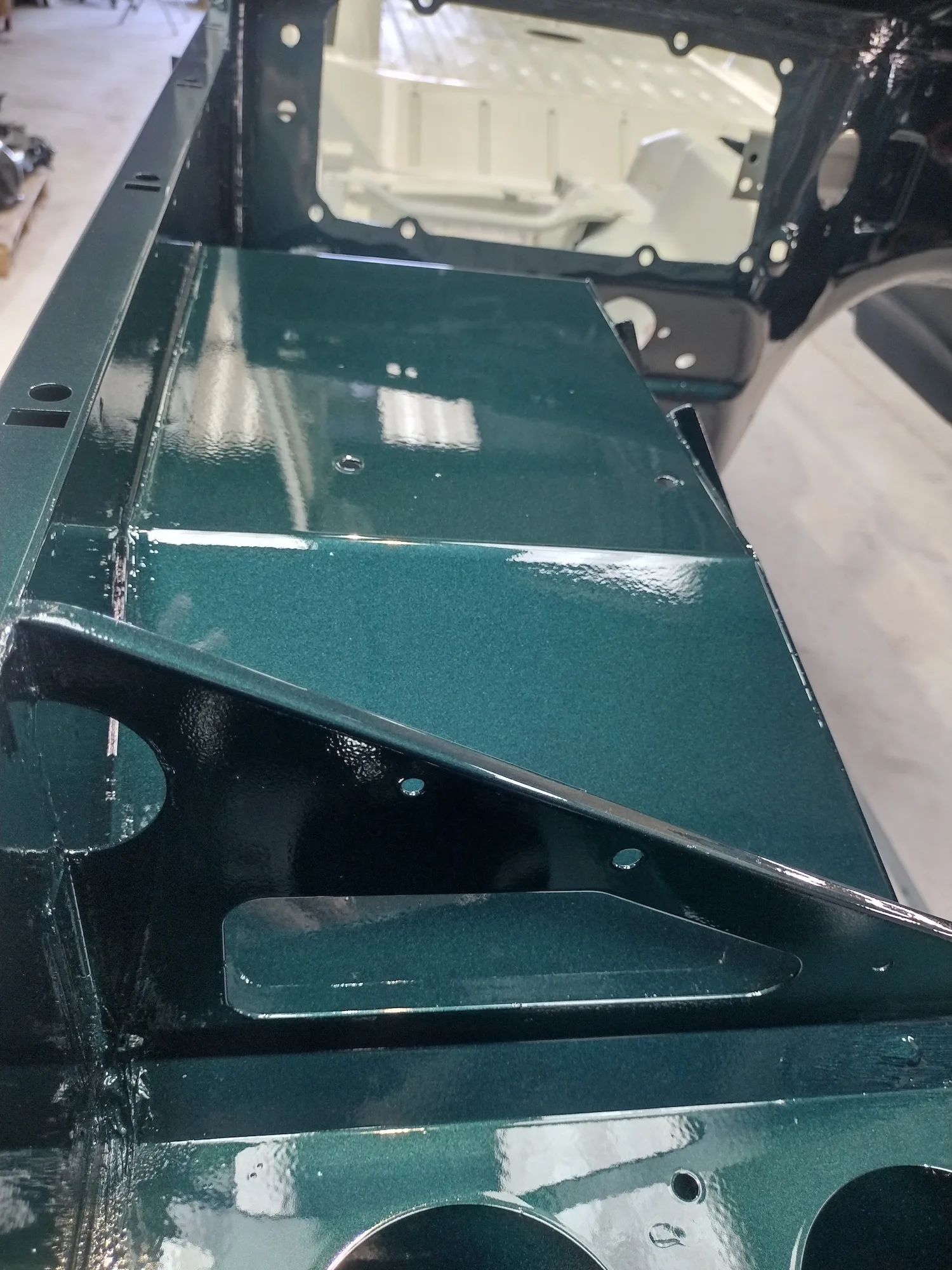 8th November 2024: The body has now been painted with primer after the first stage of prep has been carried out. The new chassis has arrived and has been painted with polycoat protect. The doors and panels have started to be stripped and prepped for paint.