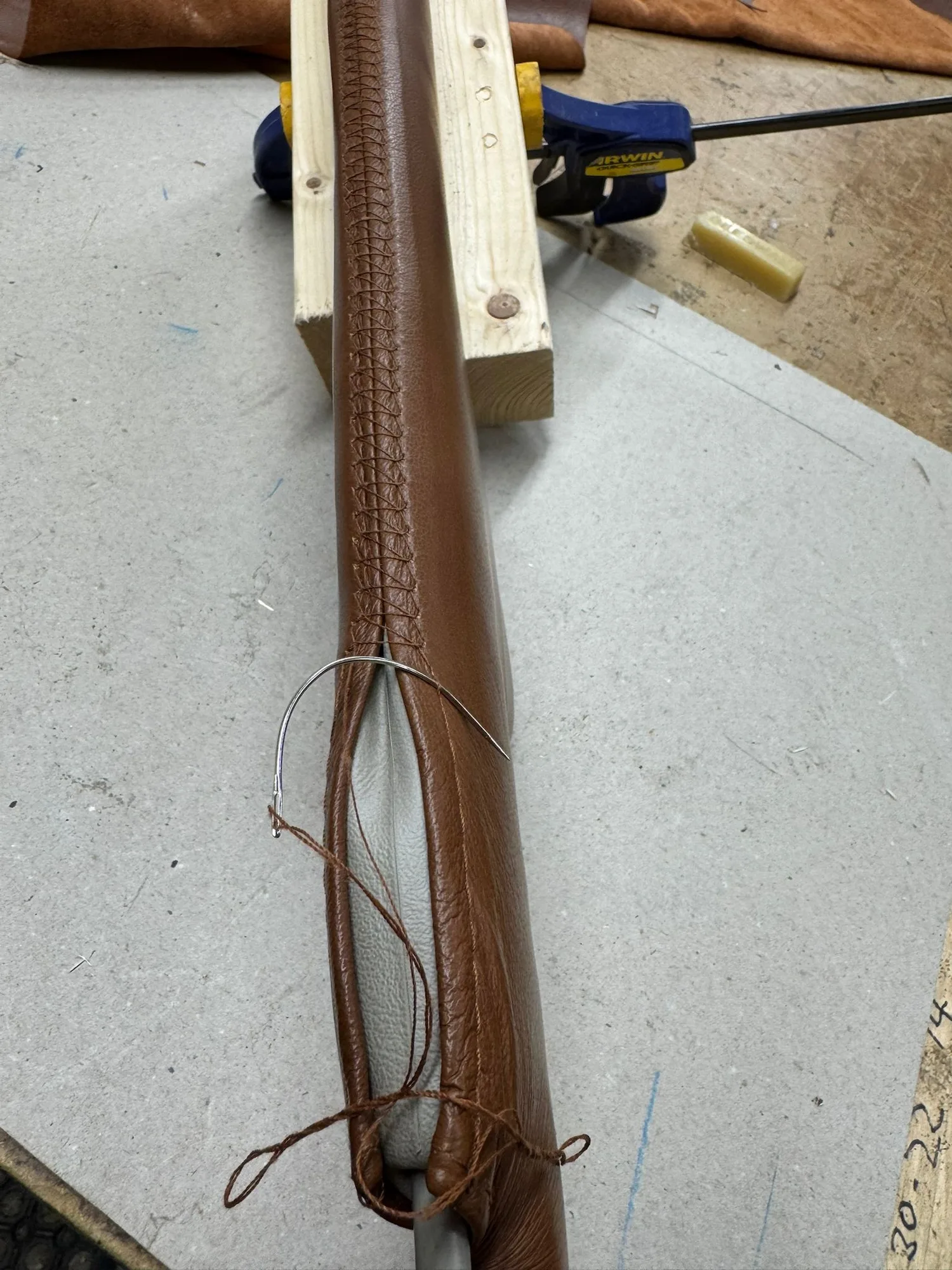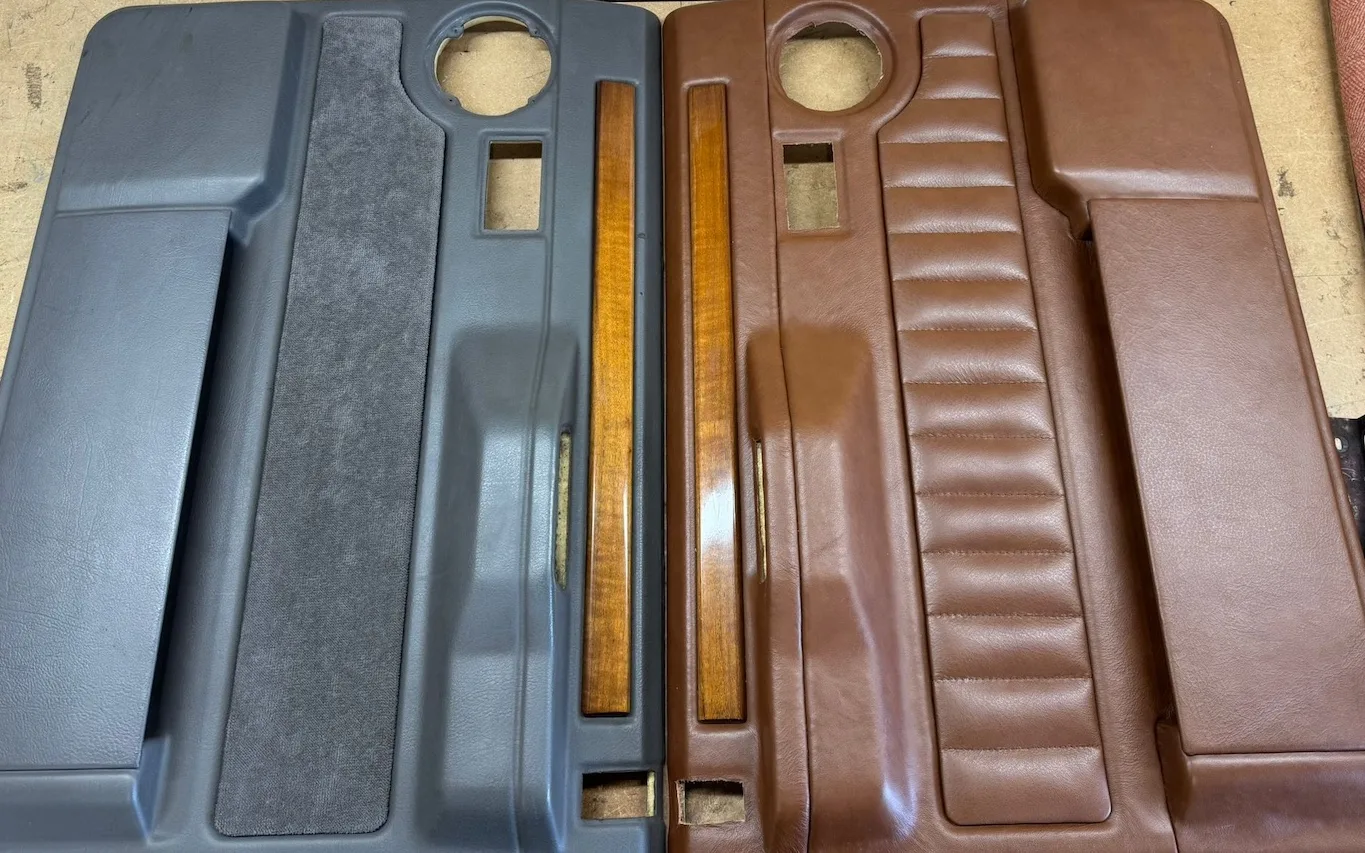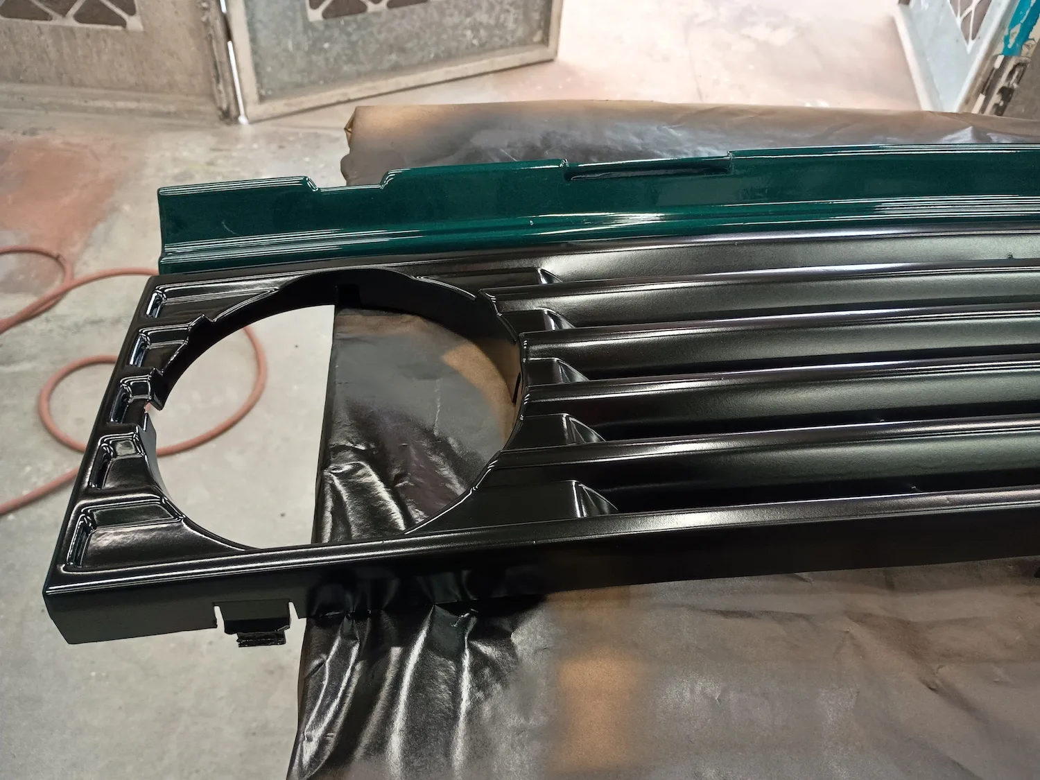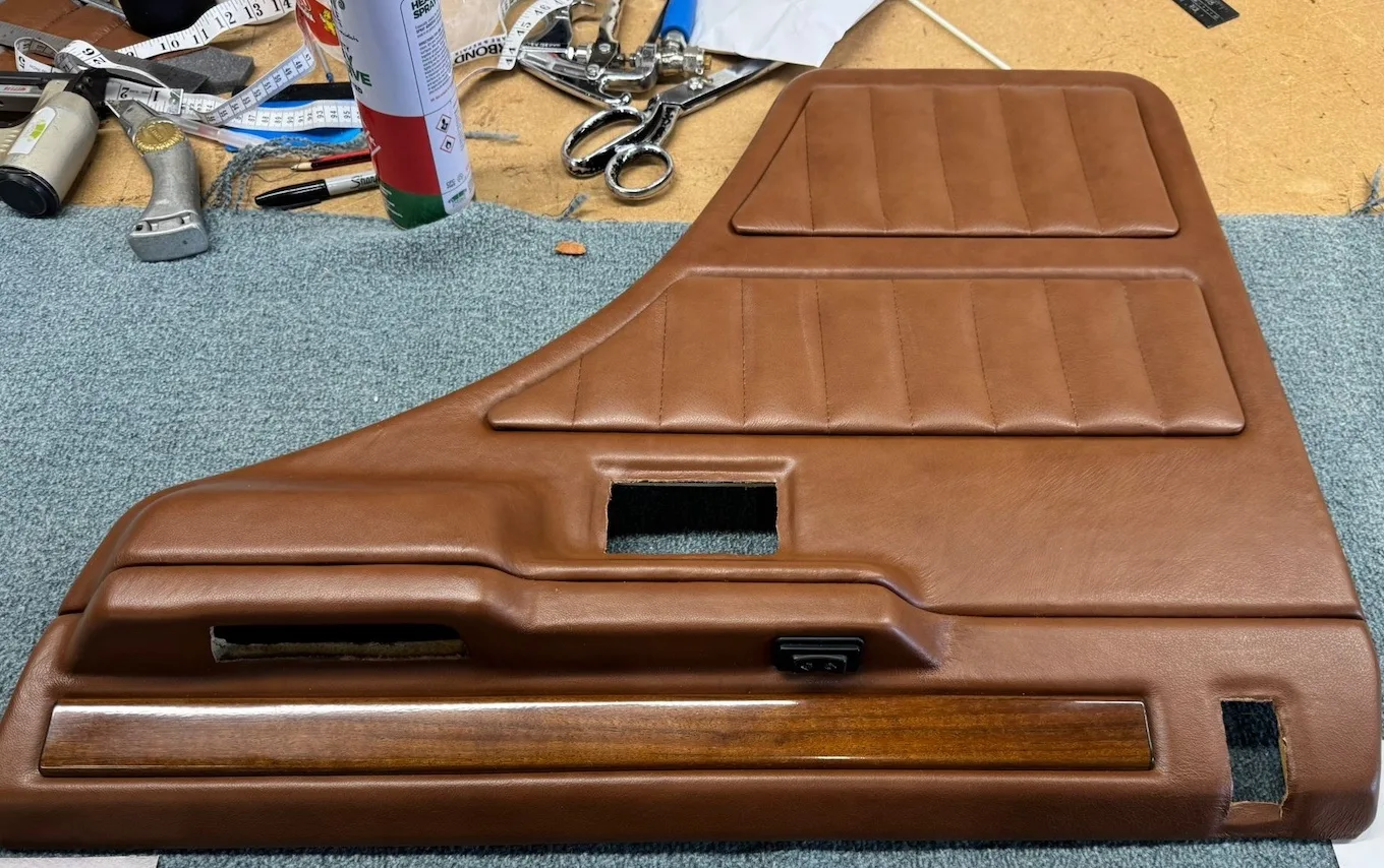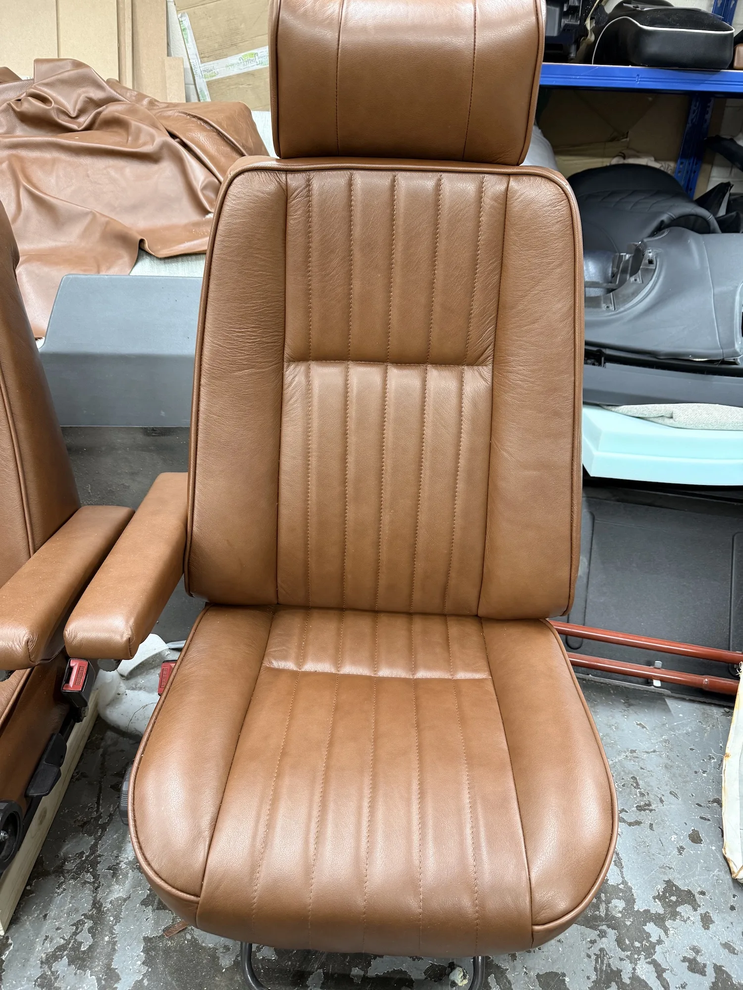 7th November 2025: Panels painted in Matt black, bumpers rear door grille and lower front valance. Green painted on doors, wings, bonnet, grille, and scuttle/wiper panel. Sneak peek of the seats which have been reupholstered in tan leather.