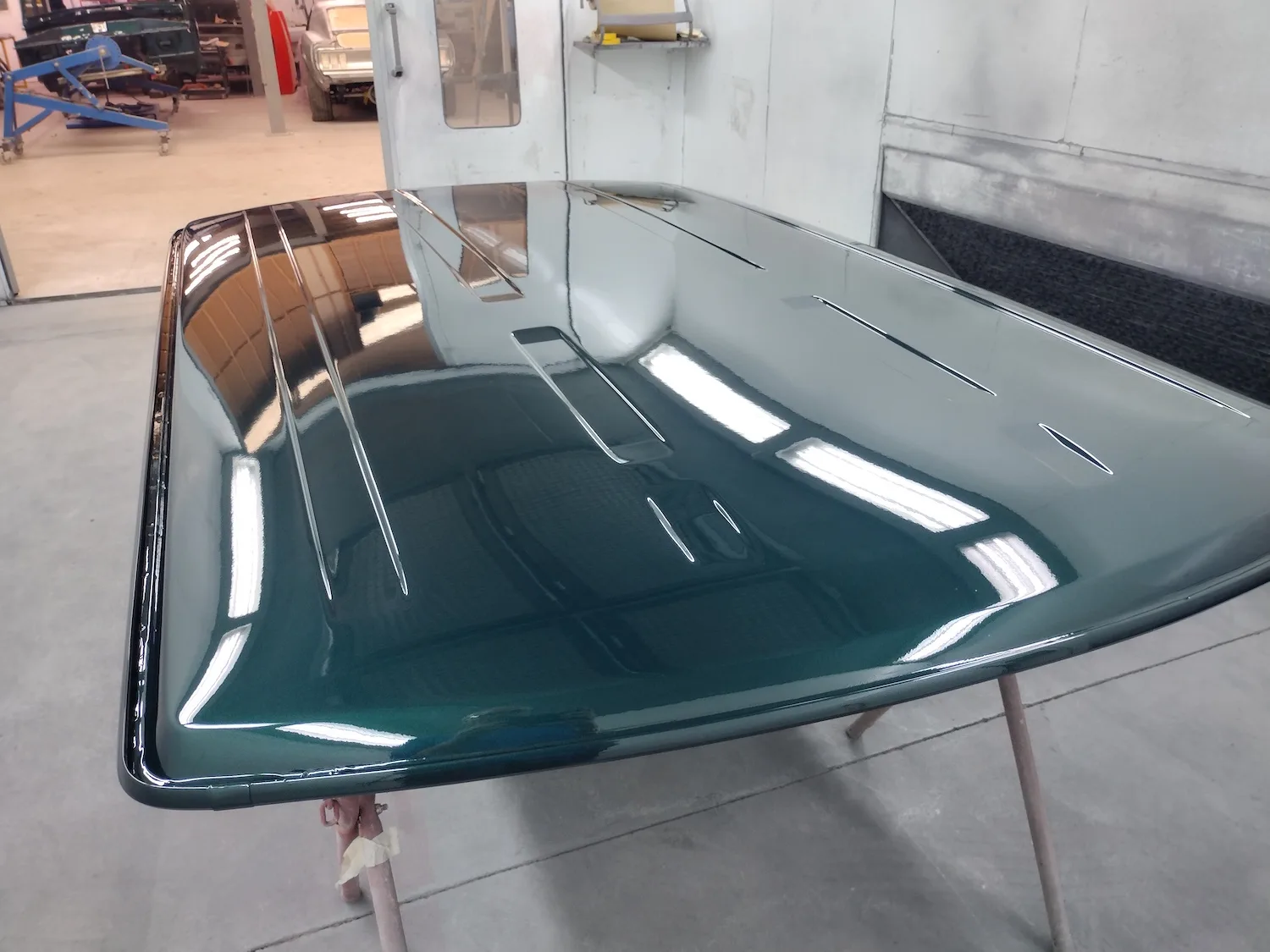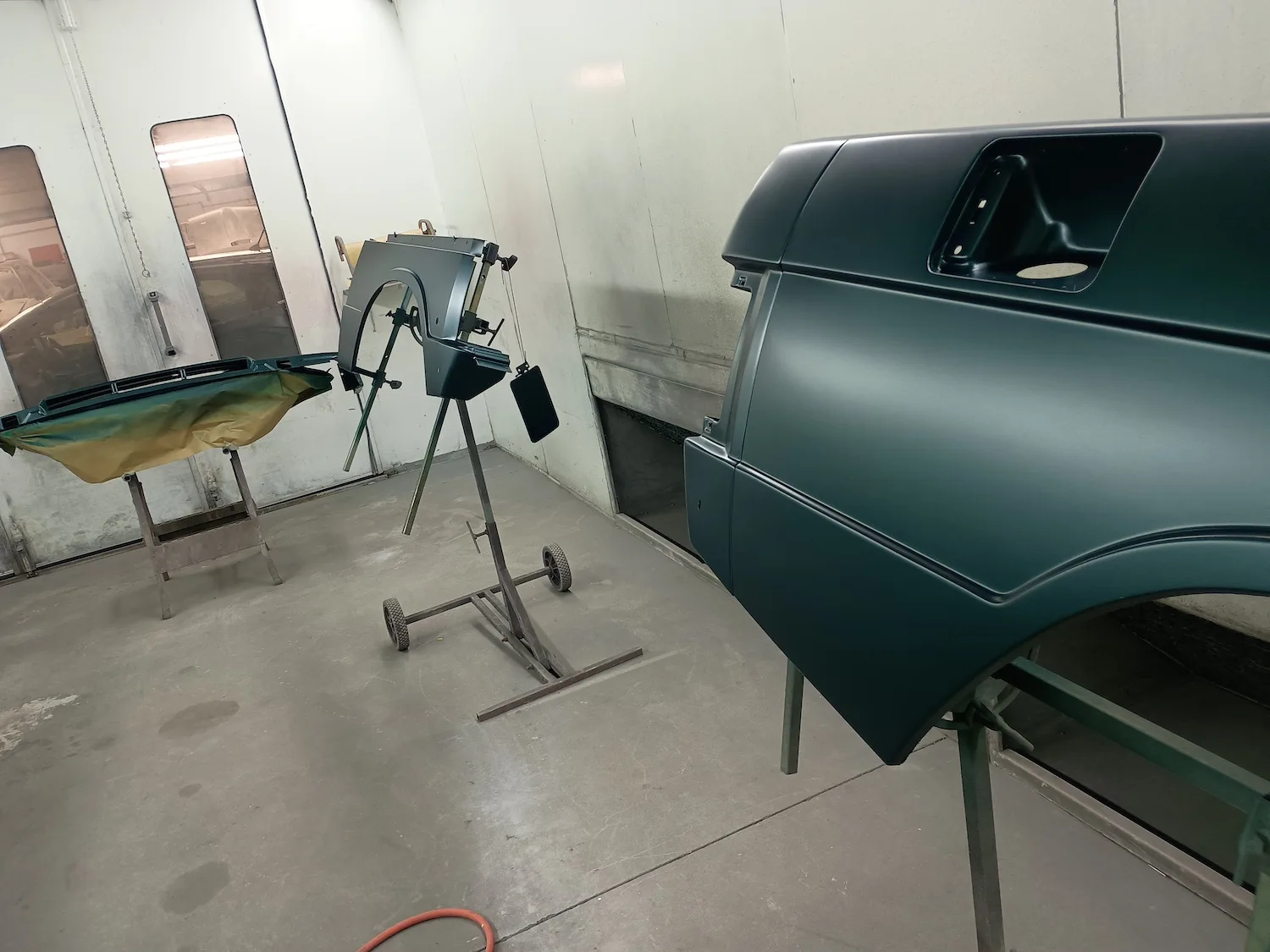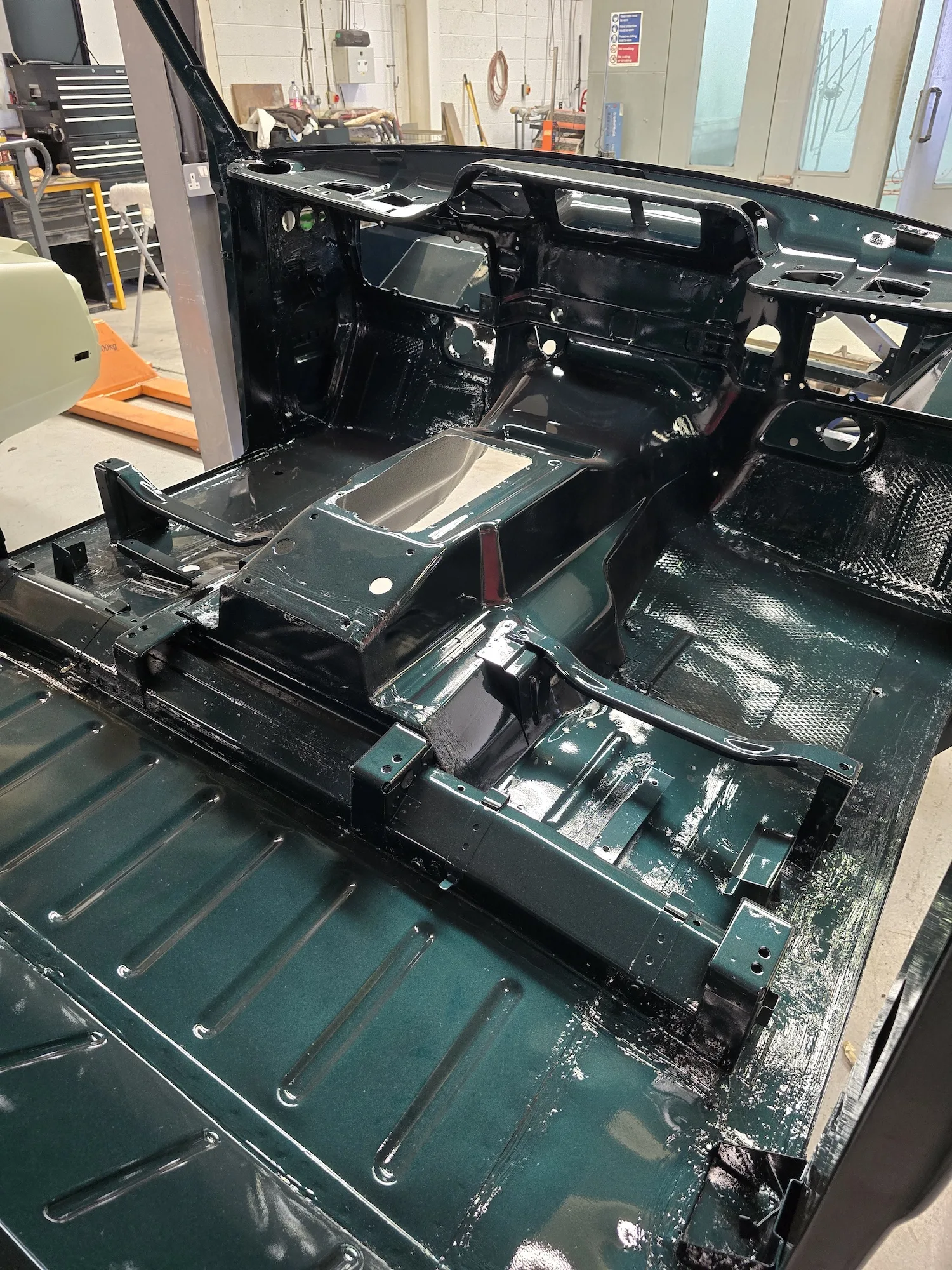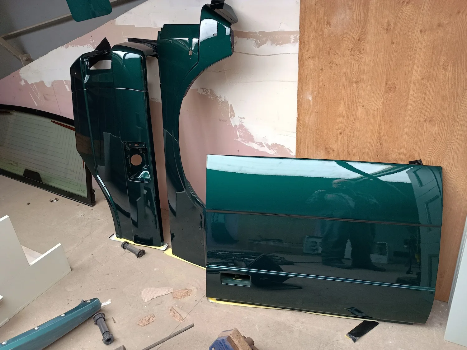 15th August 2025: The main interior and exterior bodywork prep and primer have been completed. A final coat of paint in British racing has now been applied. The bonnet and doors have been prepped and primed, so they will also be painted and then fitted soon.