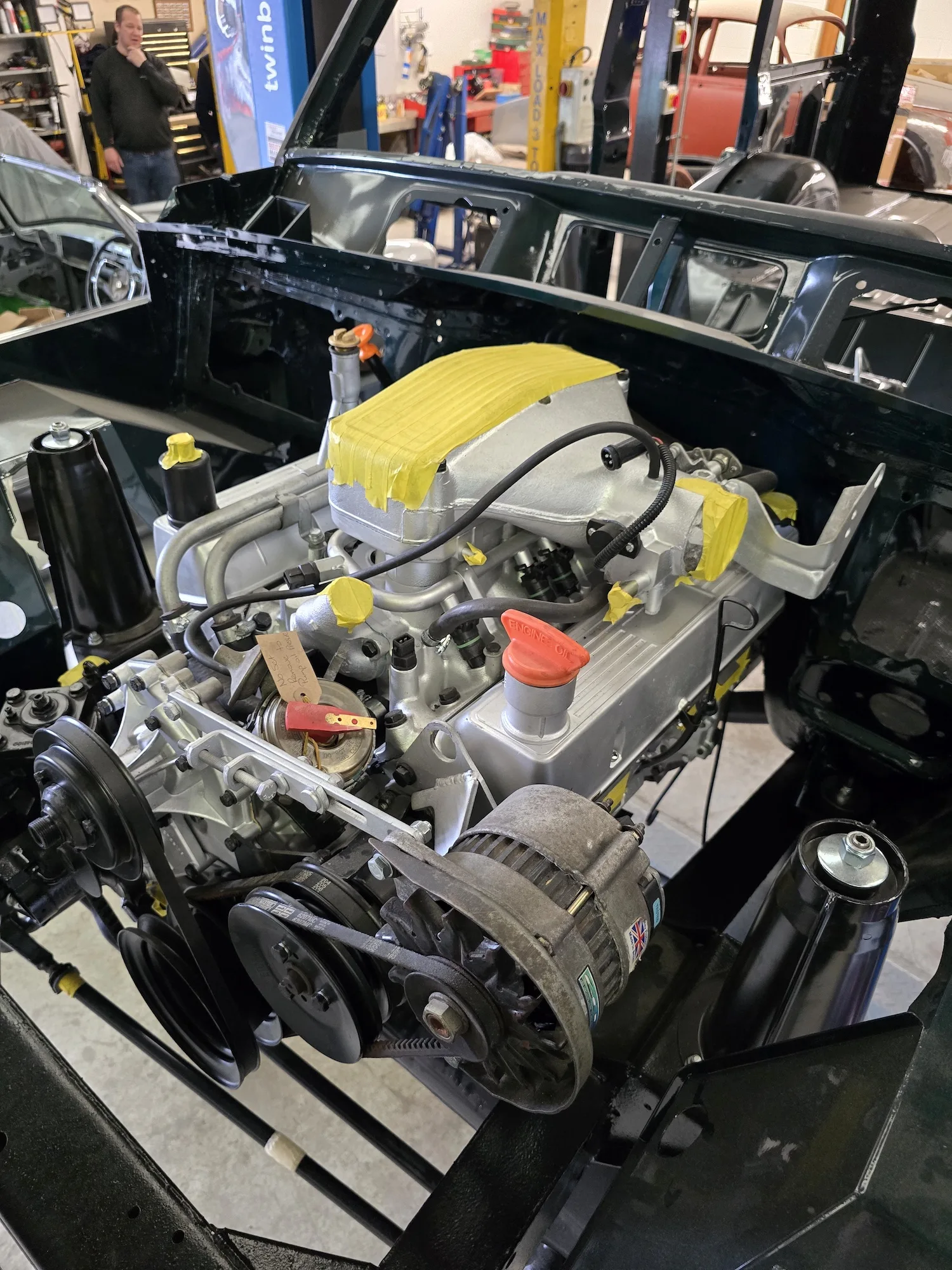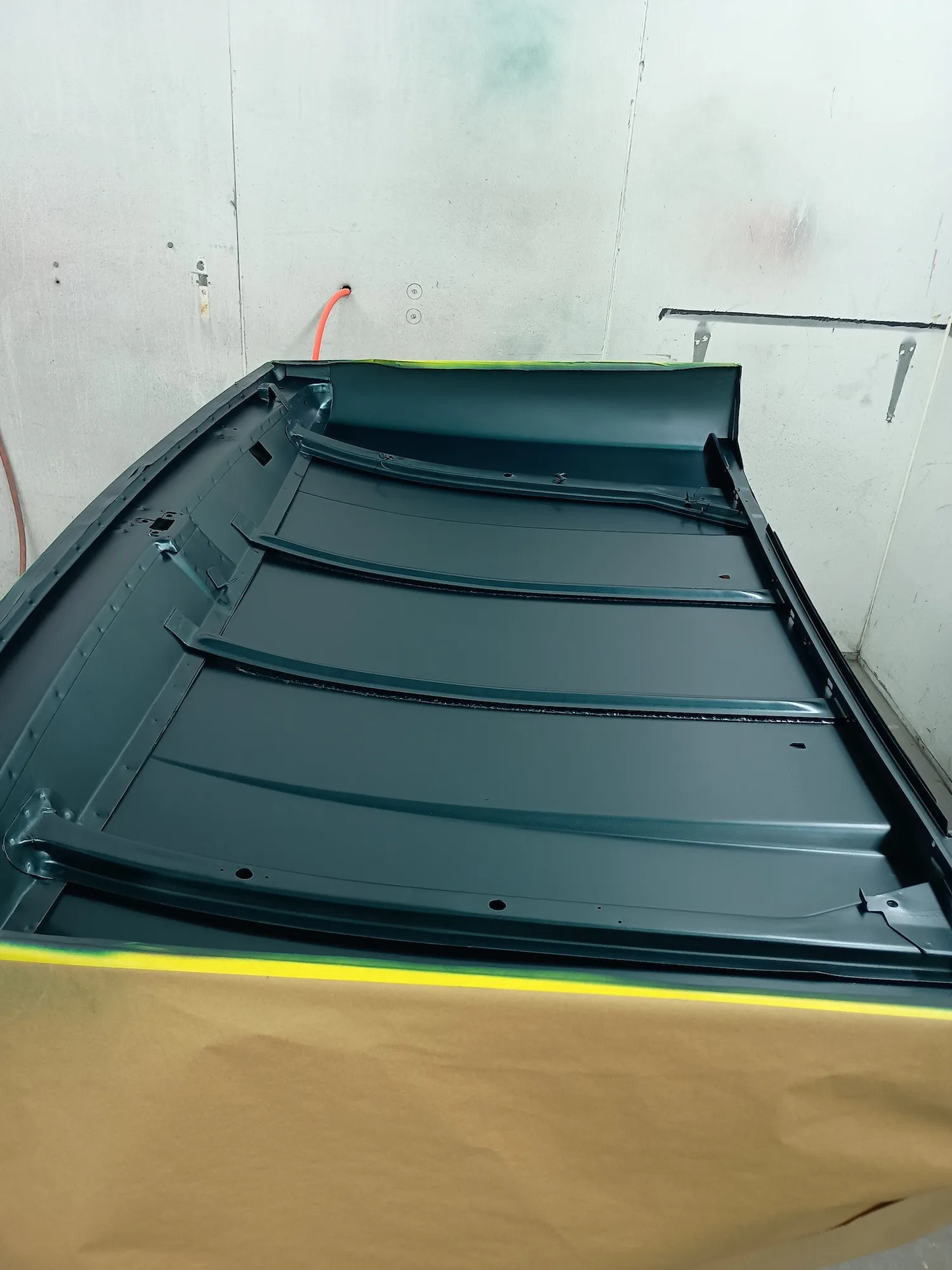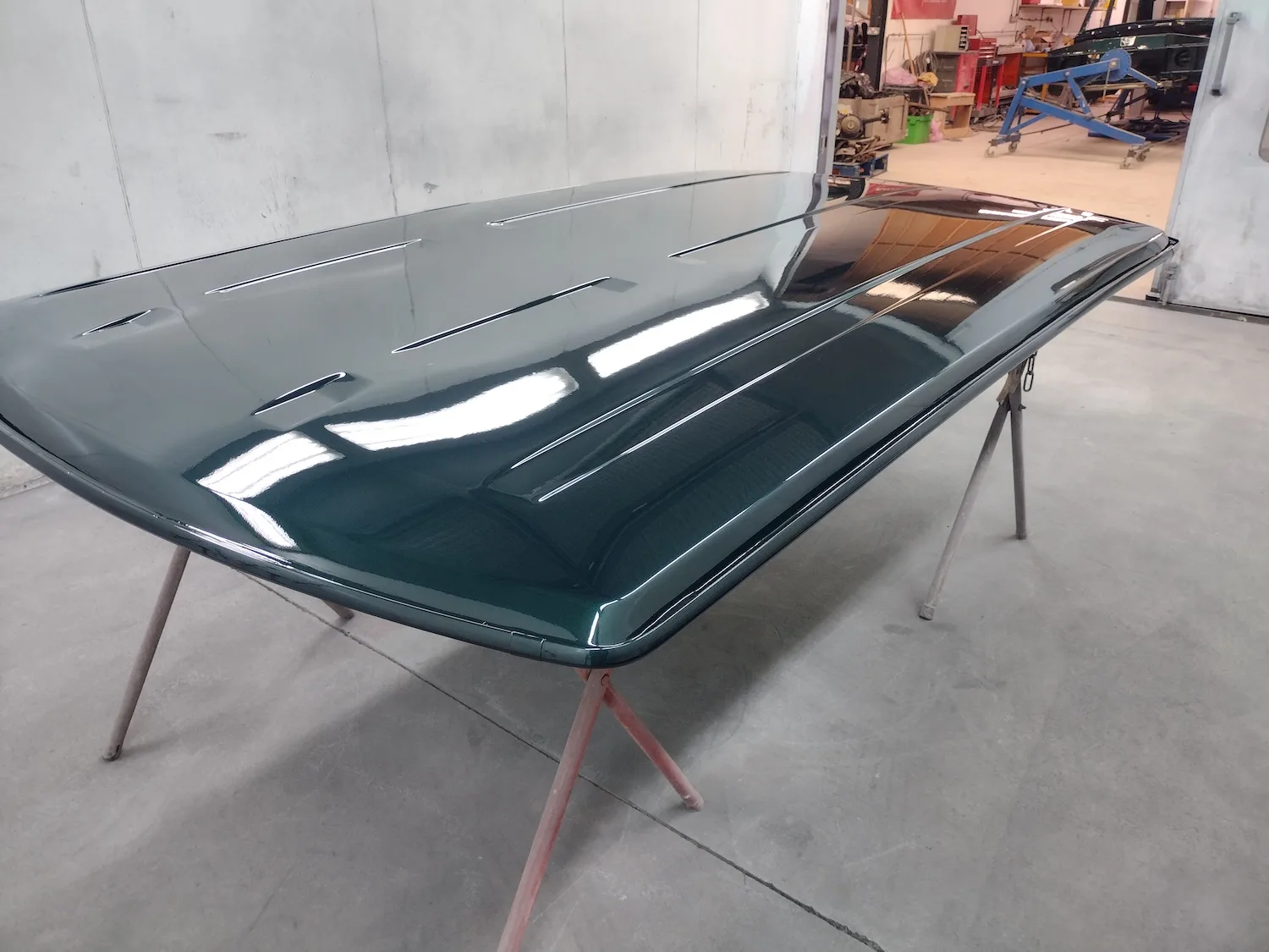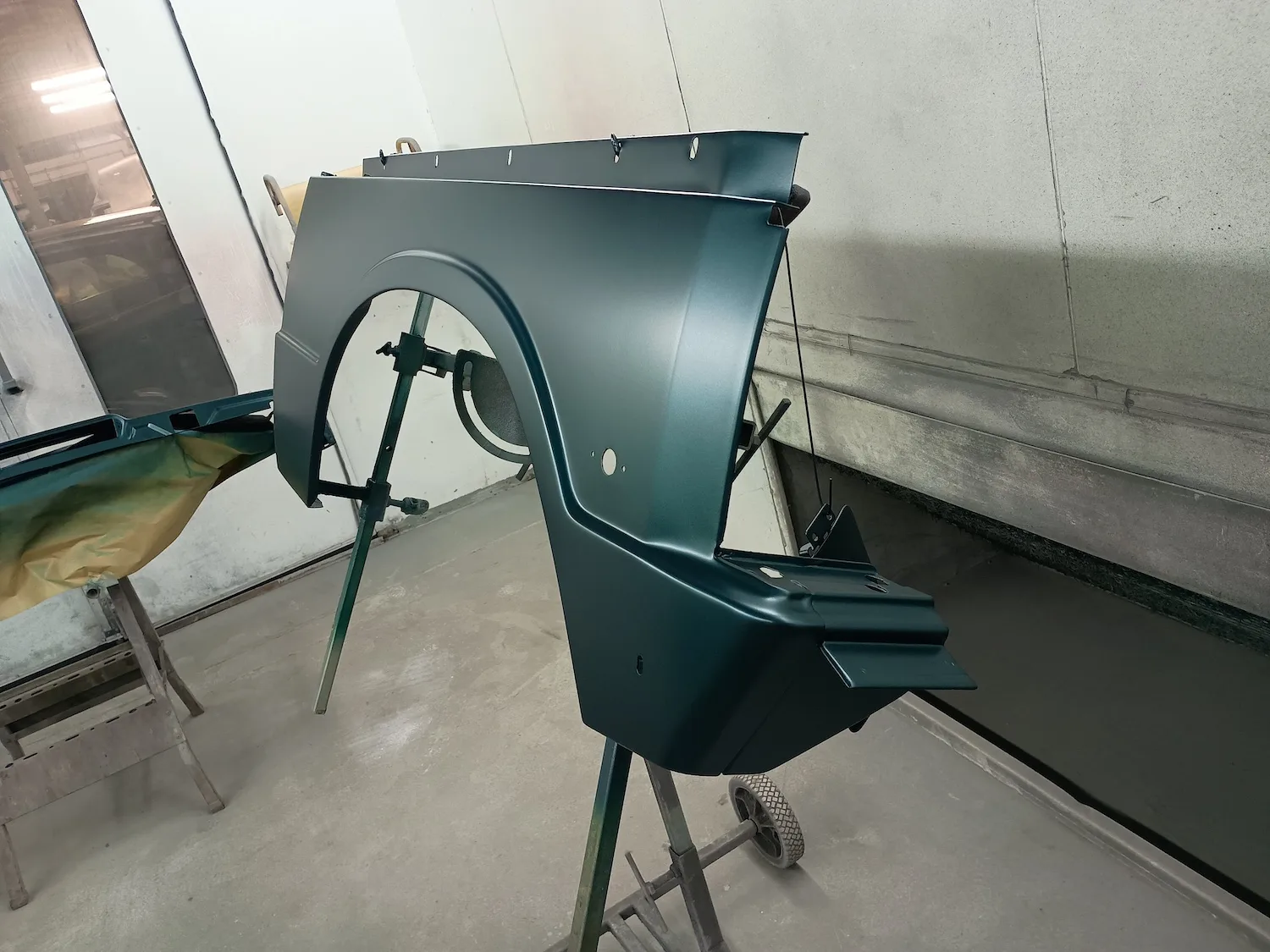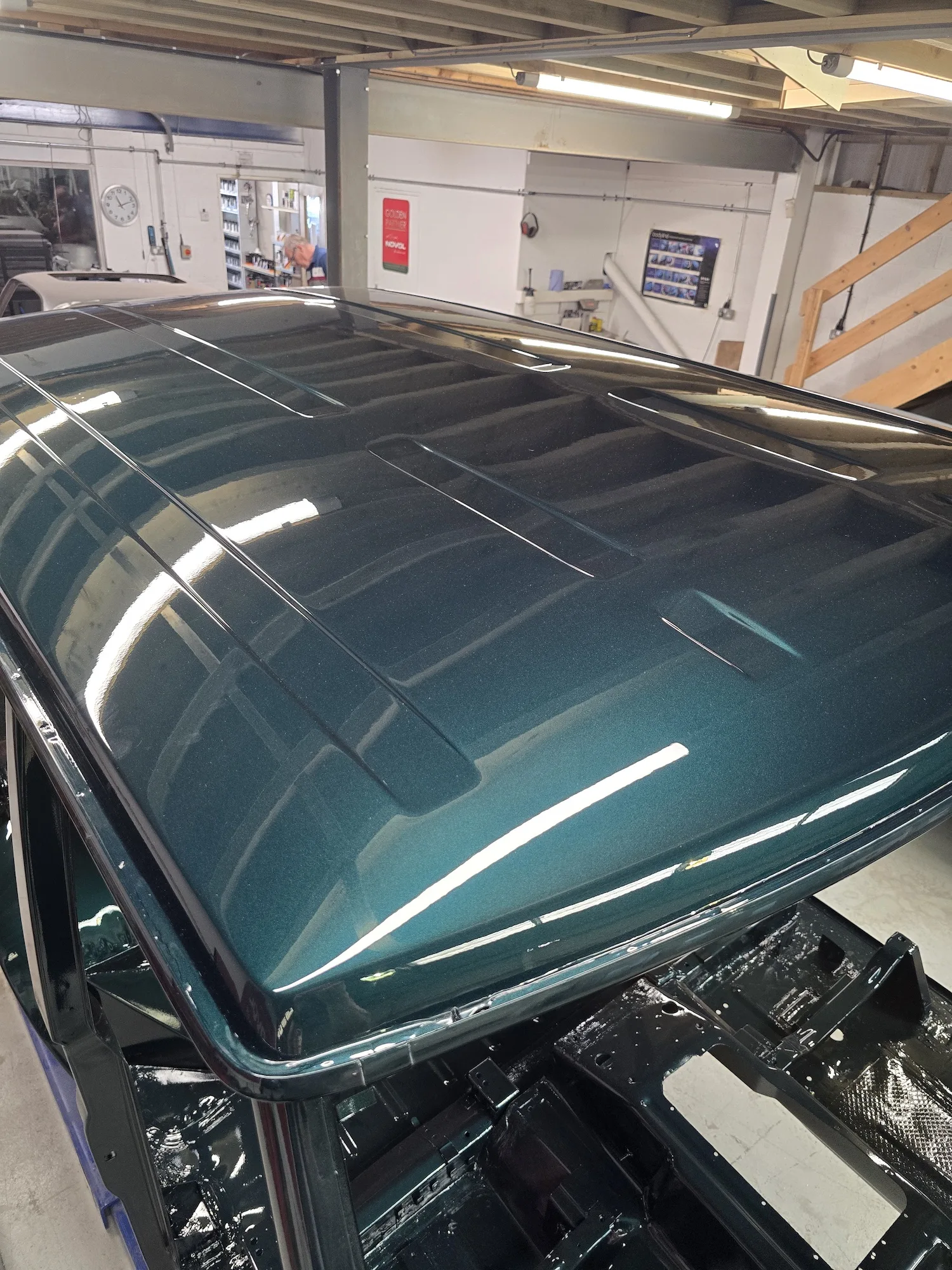 15th August 2025: The main interior and exterior bodywork prep and primer have been completed. A final coat of paint in British racing has now been applied. The bonnet and doors have been prepped and primed, so they will also be painted and then fitted soon.