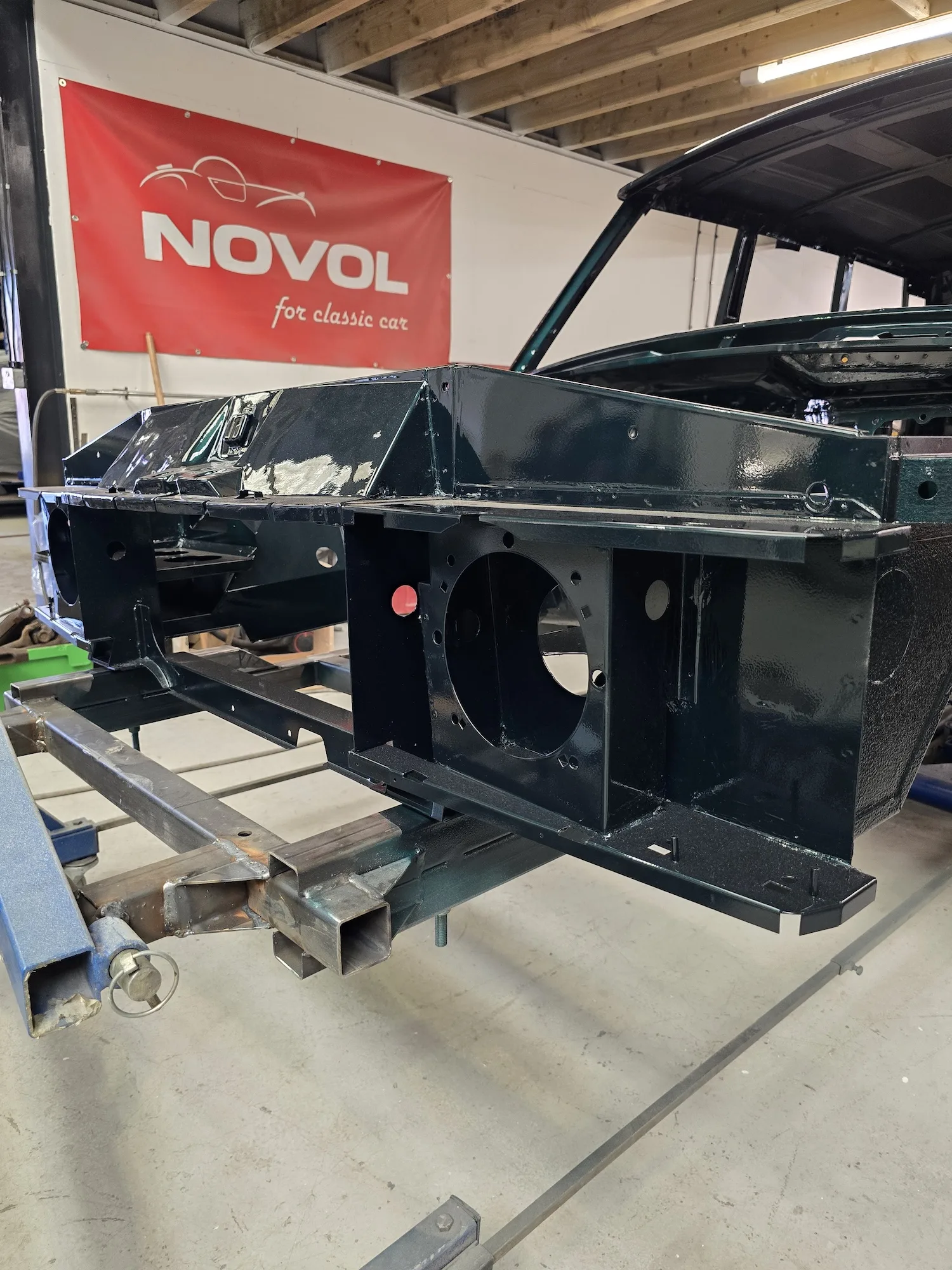 4th December 2024: The chassis and body alignment have been completed. The front end has been cut away to test the new front clip fitting. The front end has also been mocked up before everything is fitted permanently.