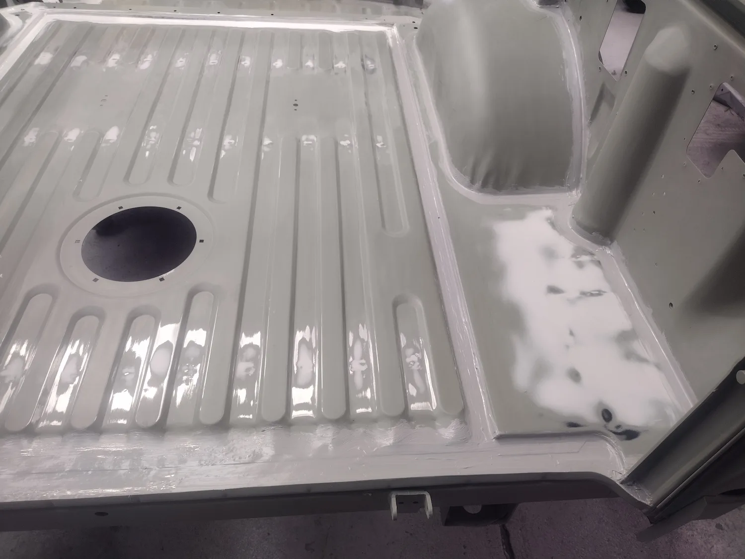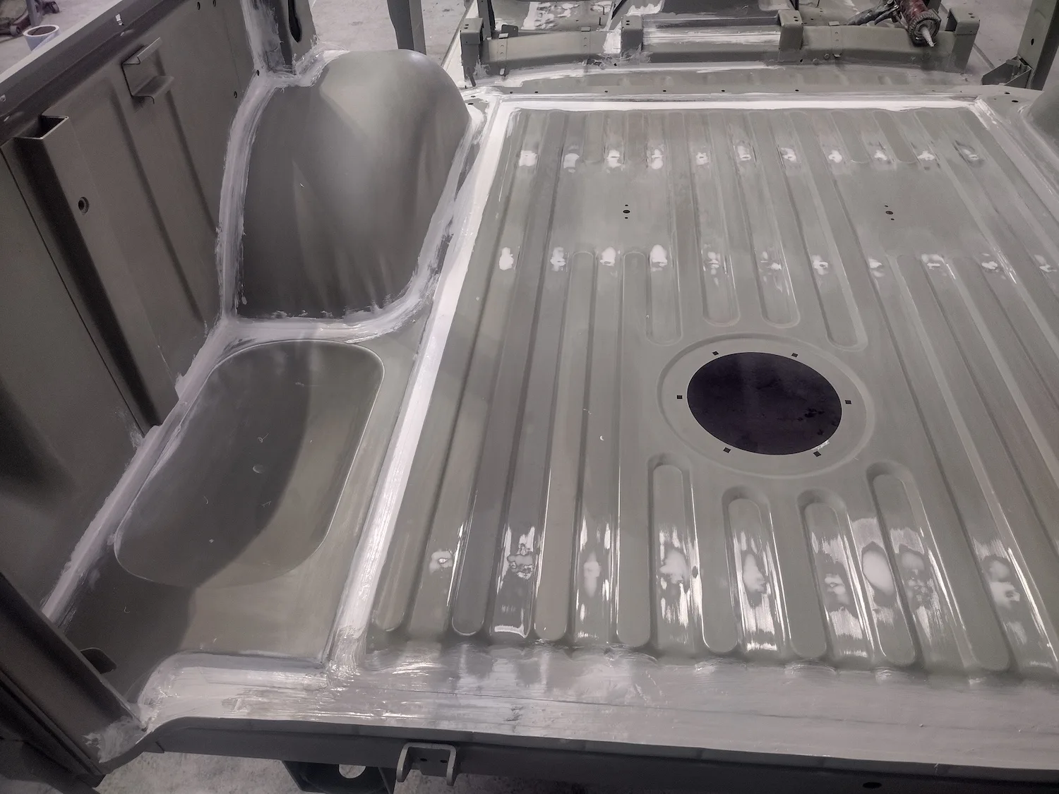 17th July 2025: Body preparation has started, mask and Epoxy coating on body inside and out. Polycoat paint has beeen applied to the chassis brackets and other parts. Filler work has been started, as well as sealing joints and panels. Roof prepped for primer. Axles and suspension components have been dry ice blasted, corroded brackets have been replaced and have been polycoated in black to match chassis.