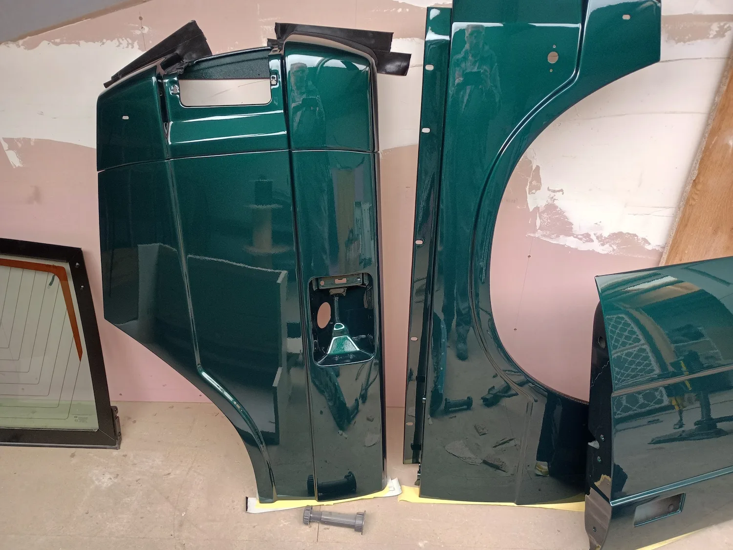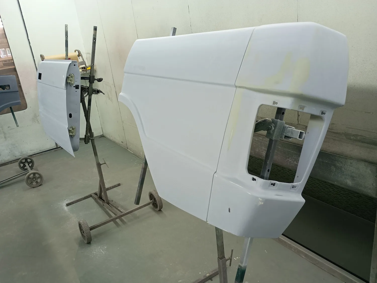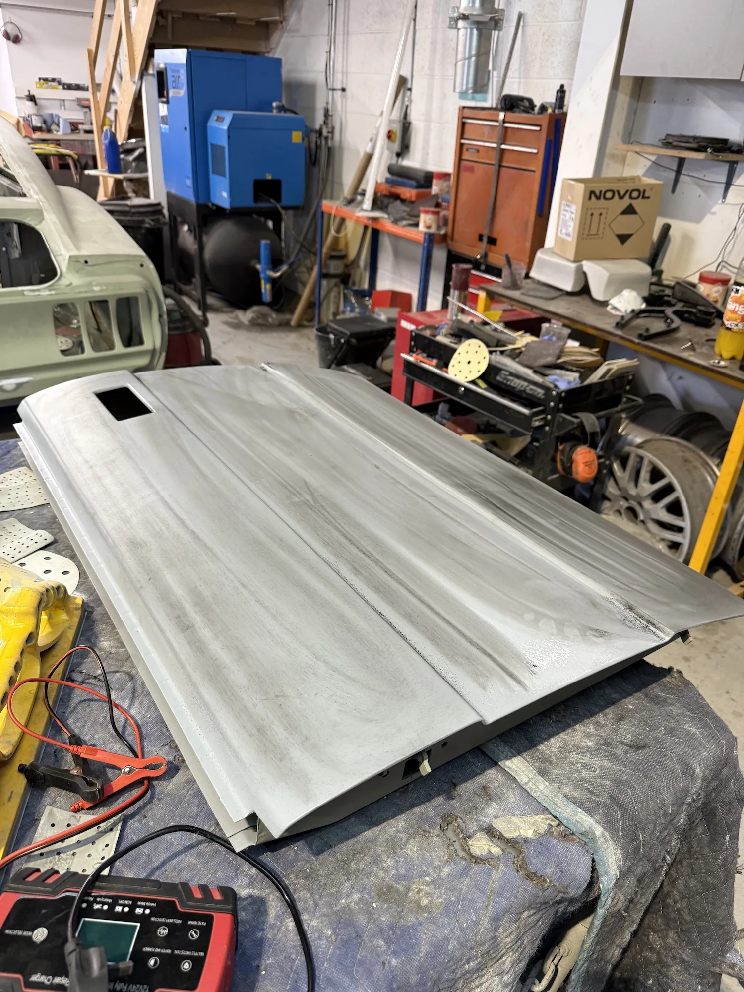 4th September 2025: Panels all test fitted. Door window frames prepped and epoxy coated. Roof and door primed, base and clear coated. Radiator grille and chin skirt plastics primed.