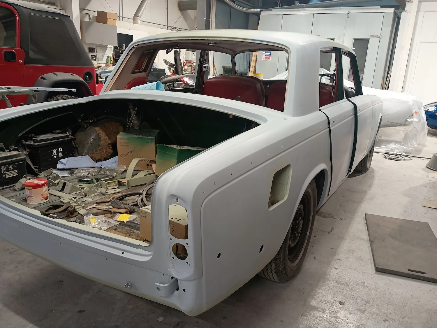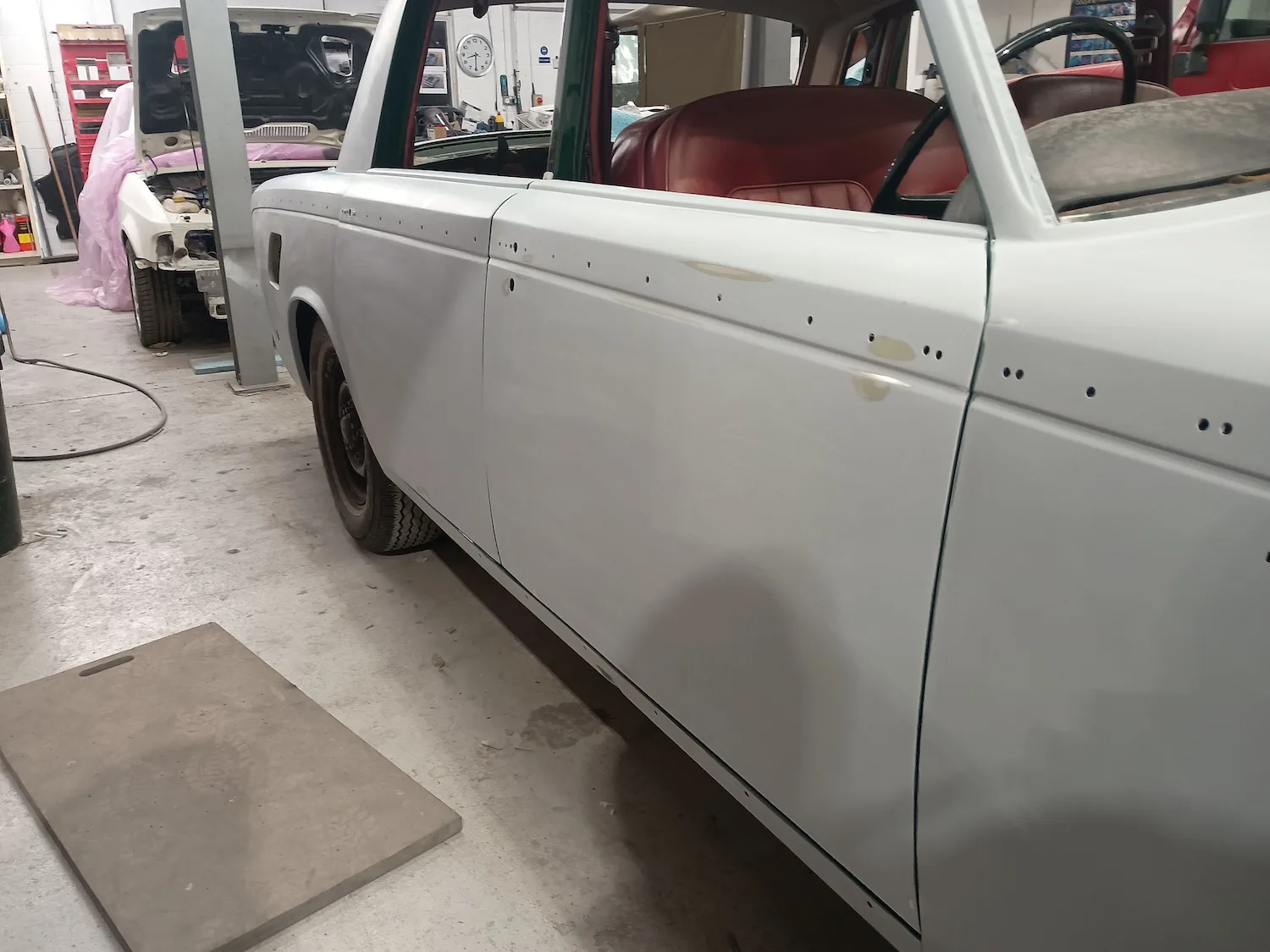 28th November 2025: Fabrication repairs have been completed and now the car is with the body shop for filler work and epoxy primer on the main body, doors and bonnet.
